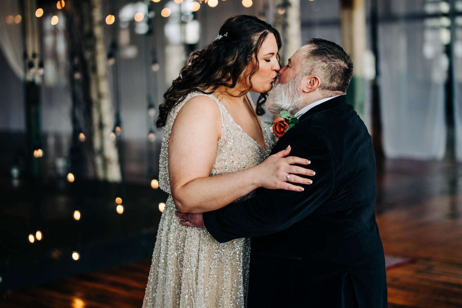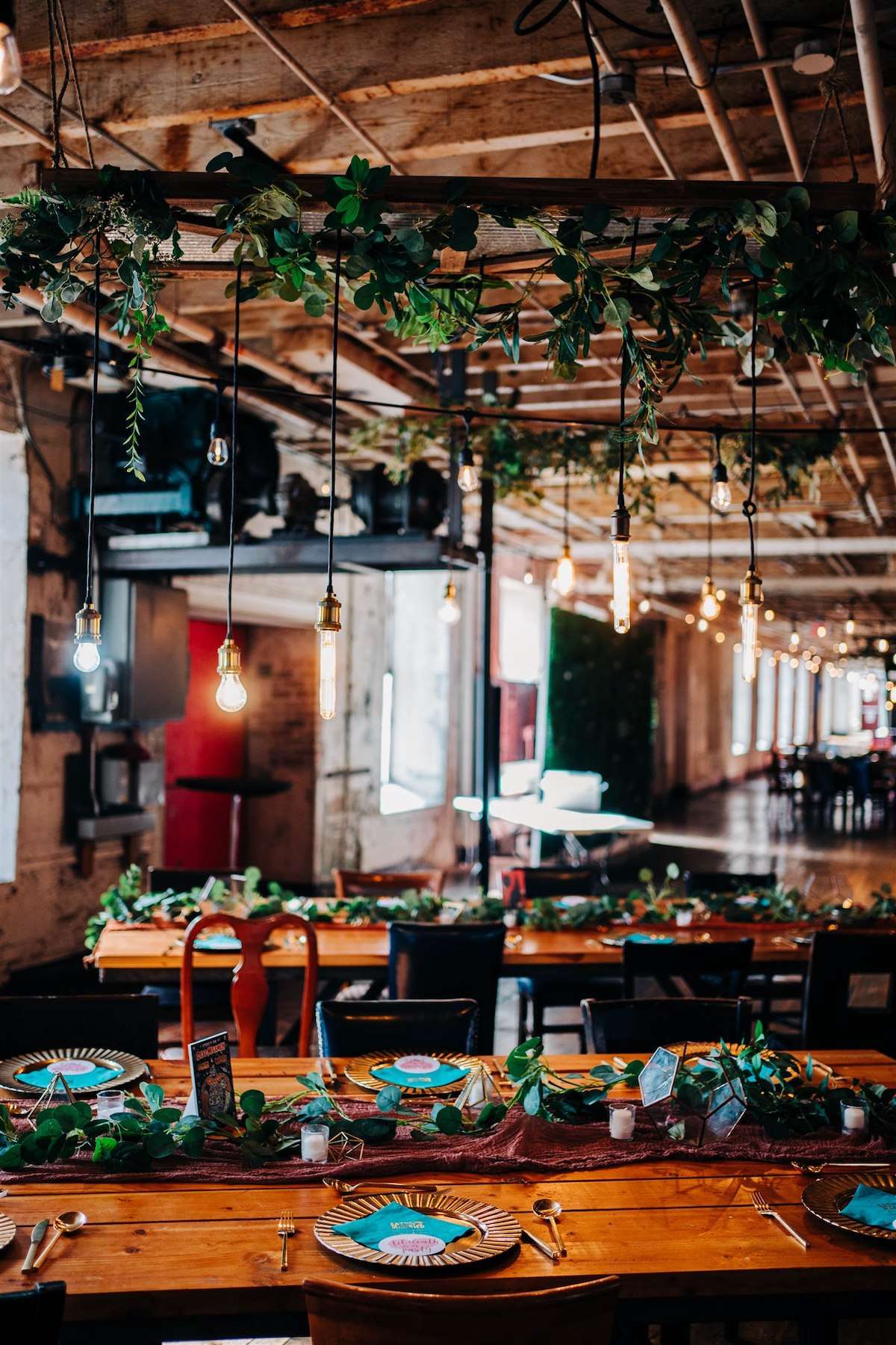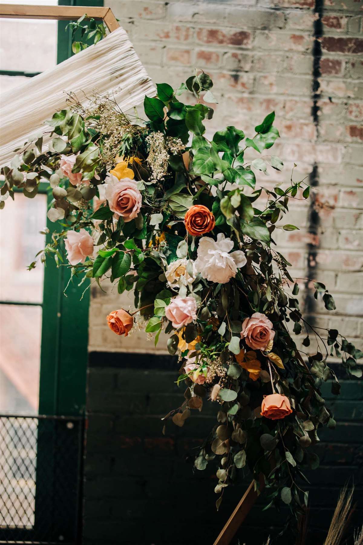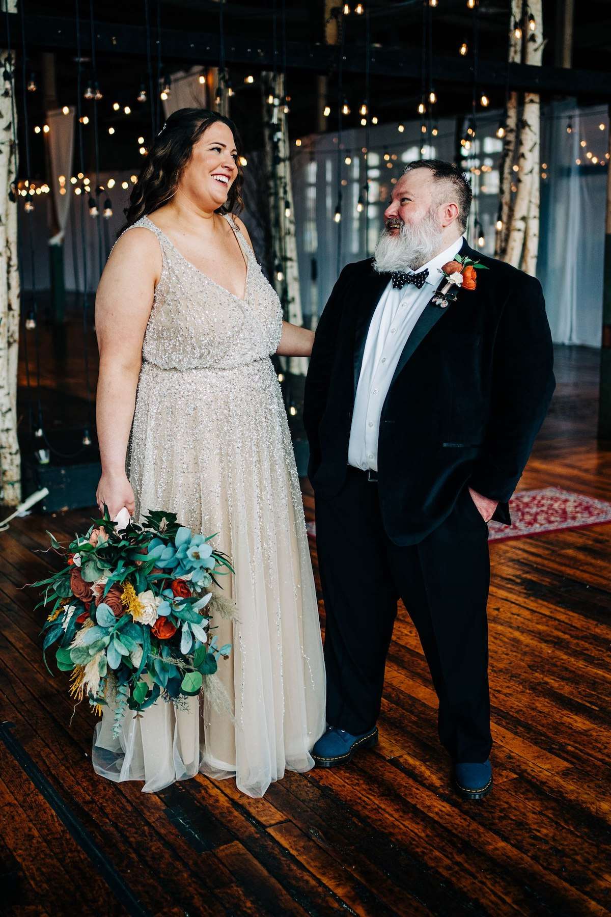 They chose the Art Factory as their venue, a historic factory loft space in New Jersey about 12 miles from New York City. A popular location for weddings and events, it also hosts film crews, as the couple found out, “While outside taking photos we noticed two scantily clad women with a videographer… turns out that a music video was being filmed right around the corner from where we were taking photos!” There are also swings throughout the Art Factory, and Ellen told us, “Dan loved creating his own Miley Cyrus Wrecking Ball moment and claims that was his favourite part of the day!”