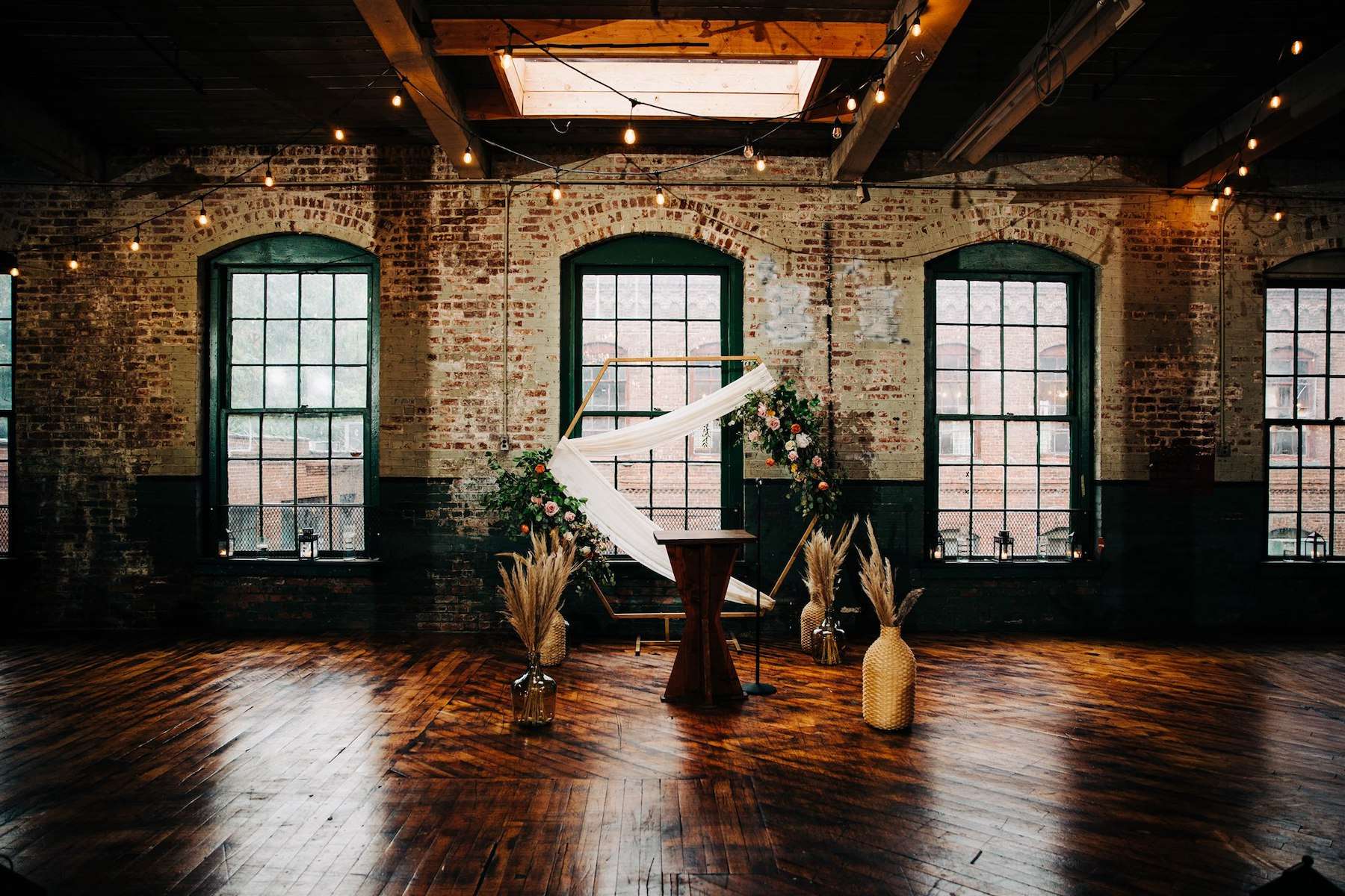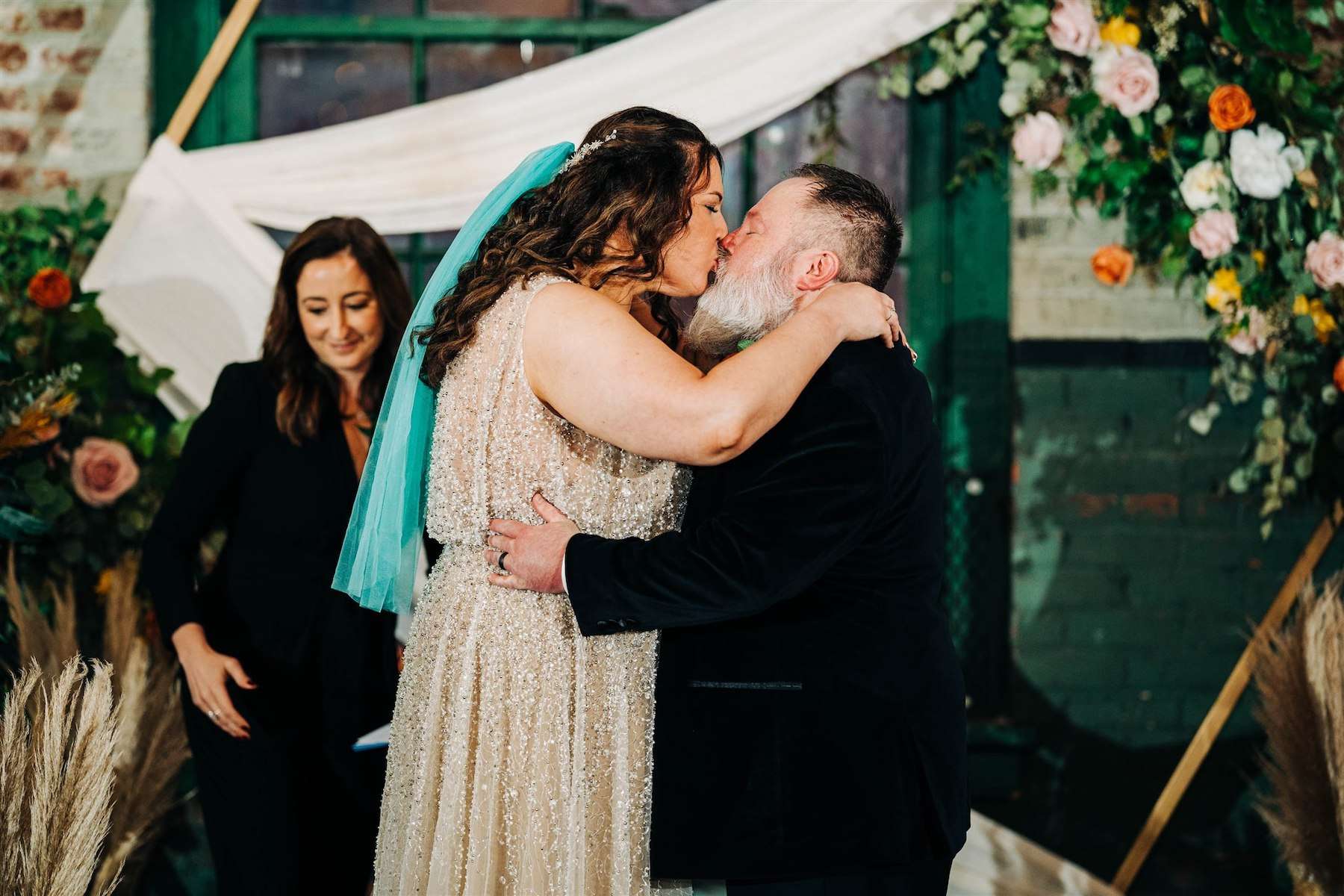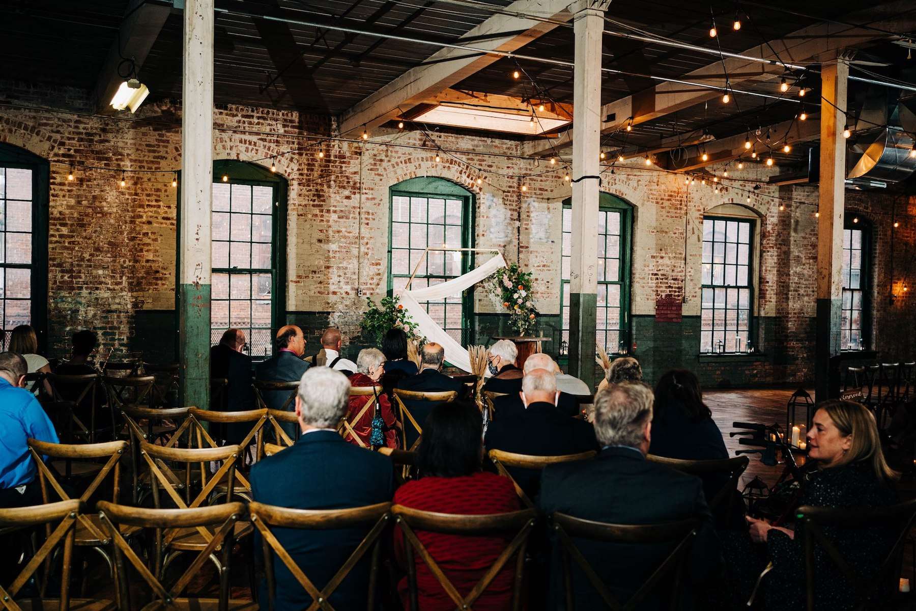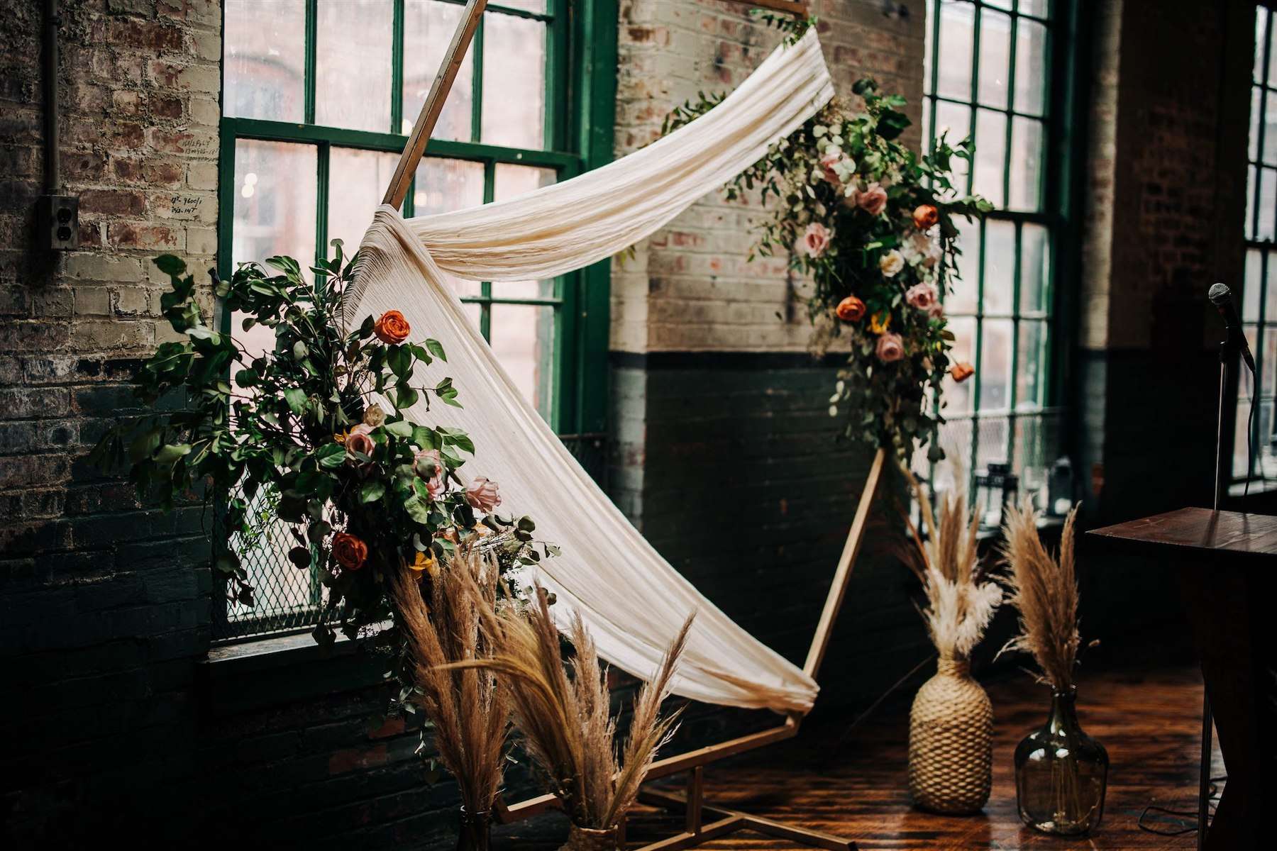 They chose the Art Factory as their venue, a historic factory loft space in New Jersey about 12 miles from New York City. A popular location for weddings and events, it also hosts film crews, as the couple found out, “While outside taking photos we noticed two scantily clad women with a videographer… turns out that a music video was being filmed right around the corner from where we were taking photos!” There are also swings throughout the Art Factory, and Ellen told us, “Dan loved creating his own Miley Cyrus Wrecking Ball moment and claims that was his favourite part of the day!”