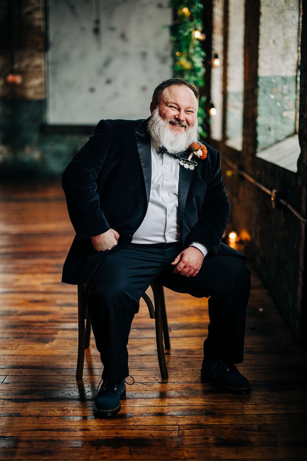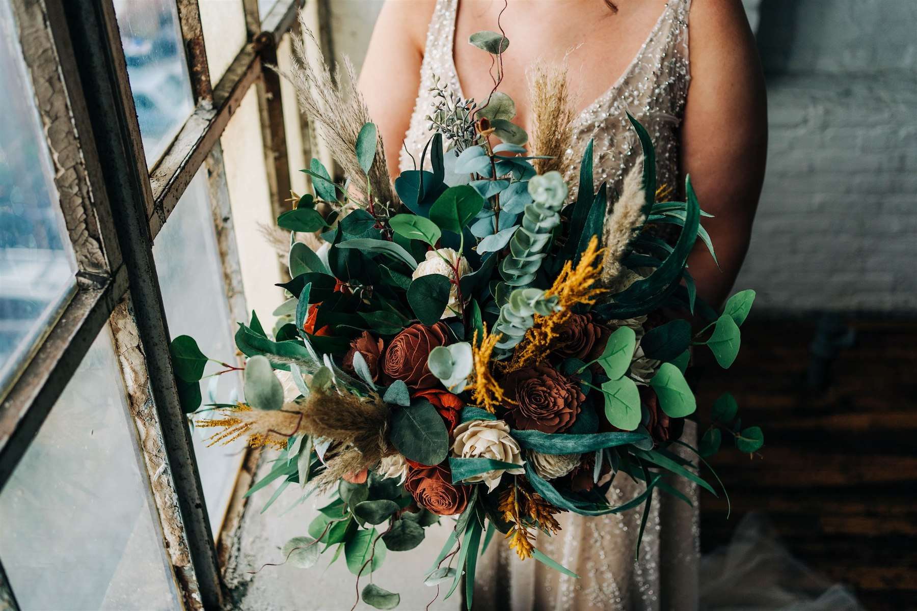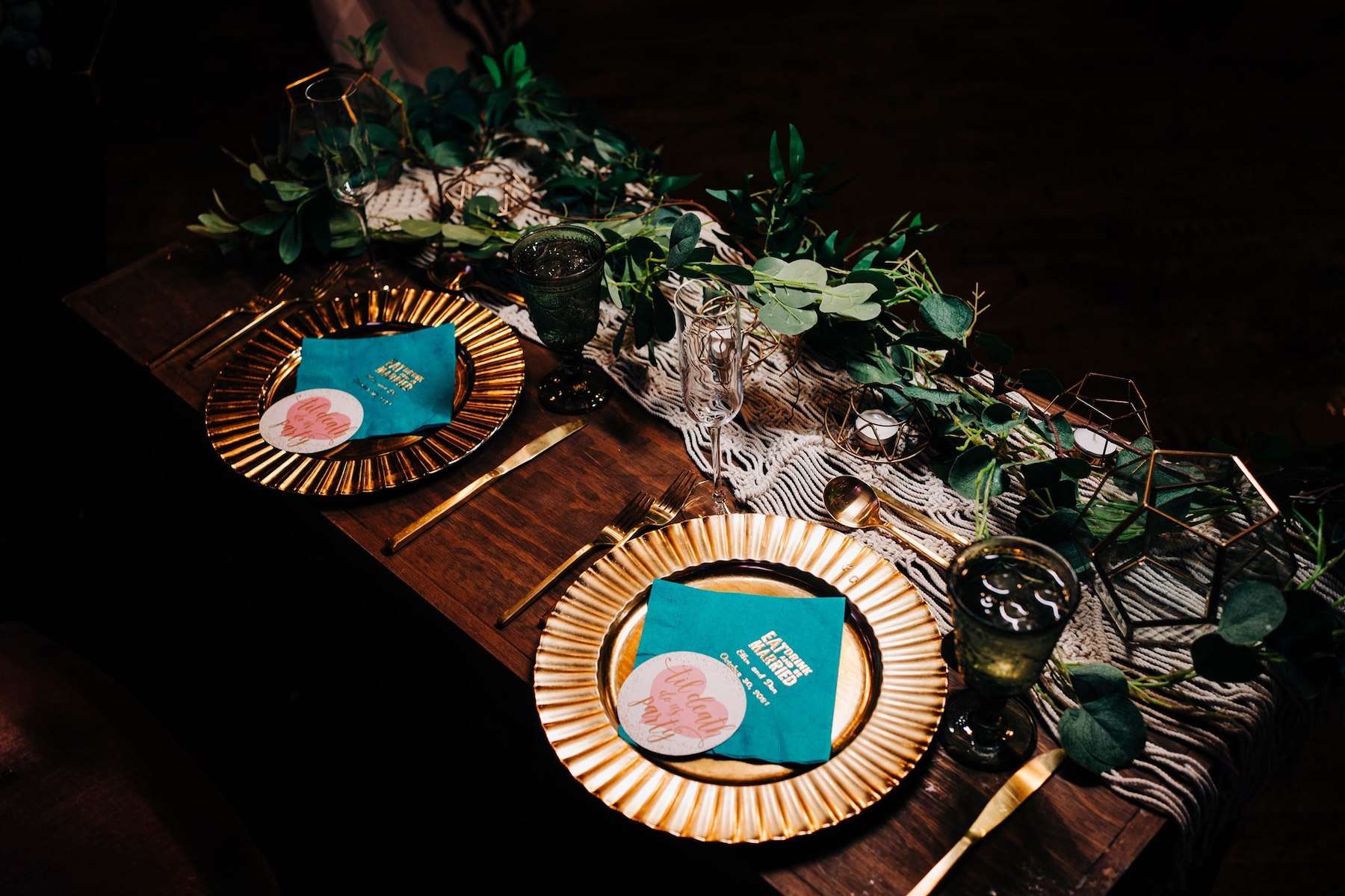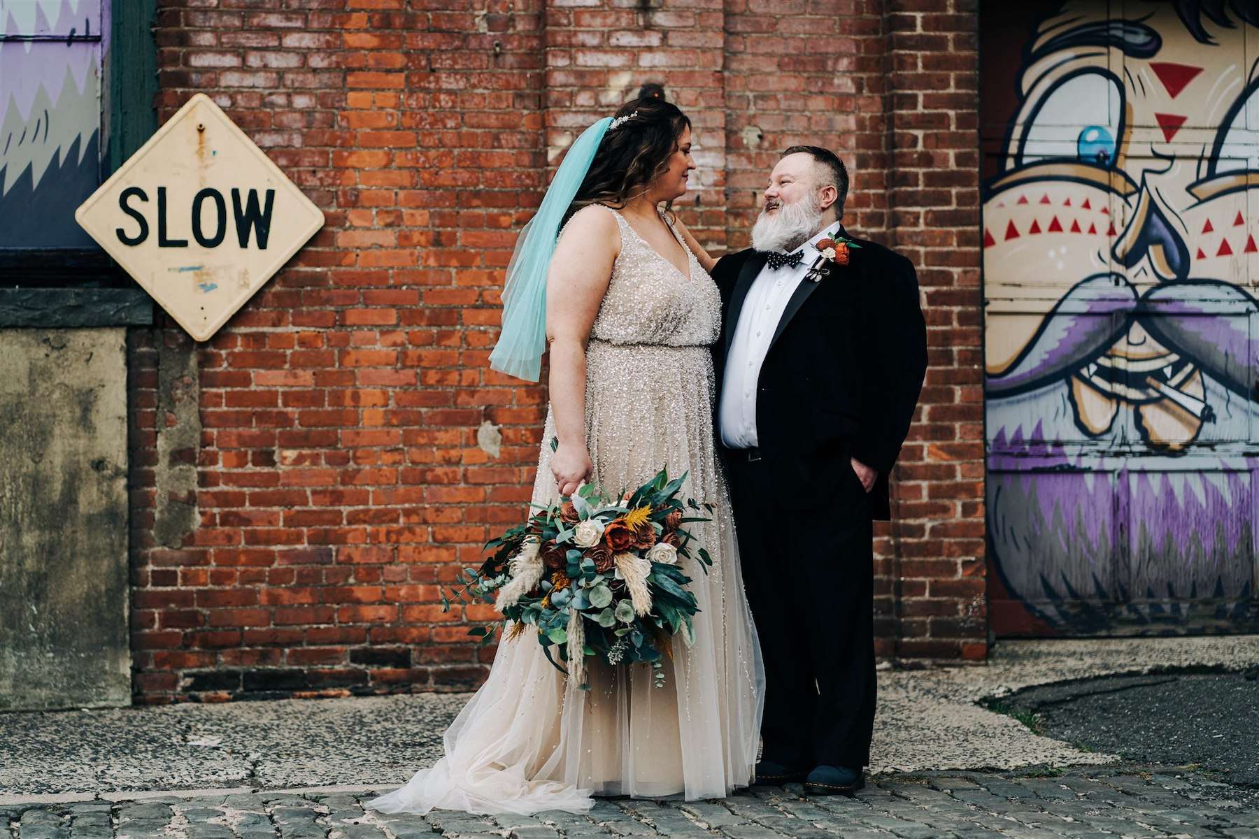 They chose the Art Factory as their venue, a historic factory loft space in New Jersey about 12 miles from New York City. A popular location for weddings and events, it also hosts film crews, as the couple found out, “While outside taking photos we noticed two scantily clad women with a videographer… turns out that a music video was being filmed right around the corner from where we were taking photos!” There are also swings throughout the Art Factory, and Ellen told us, “Dan loved creating his own Miley Cyrus Wrecking Ball moment and claims that was his favourite part of the day!”