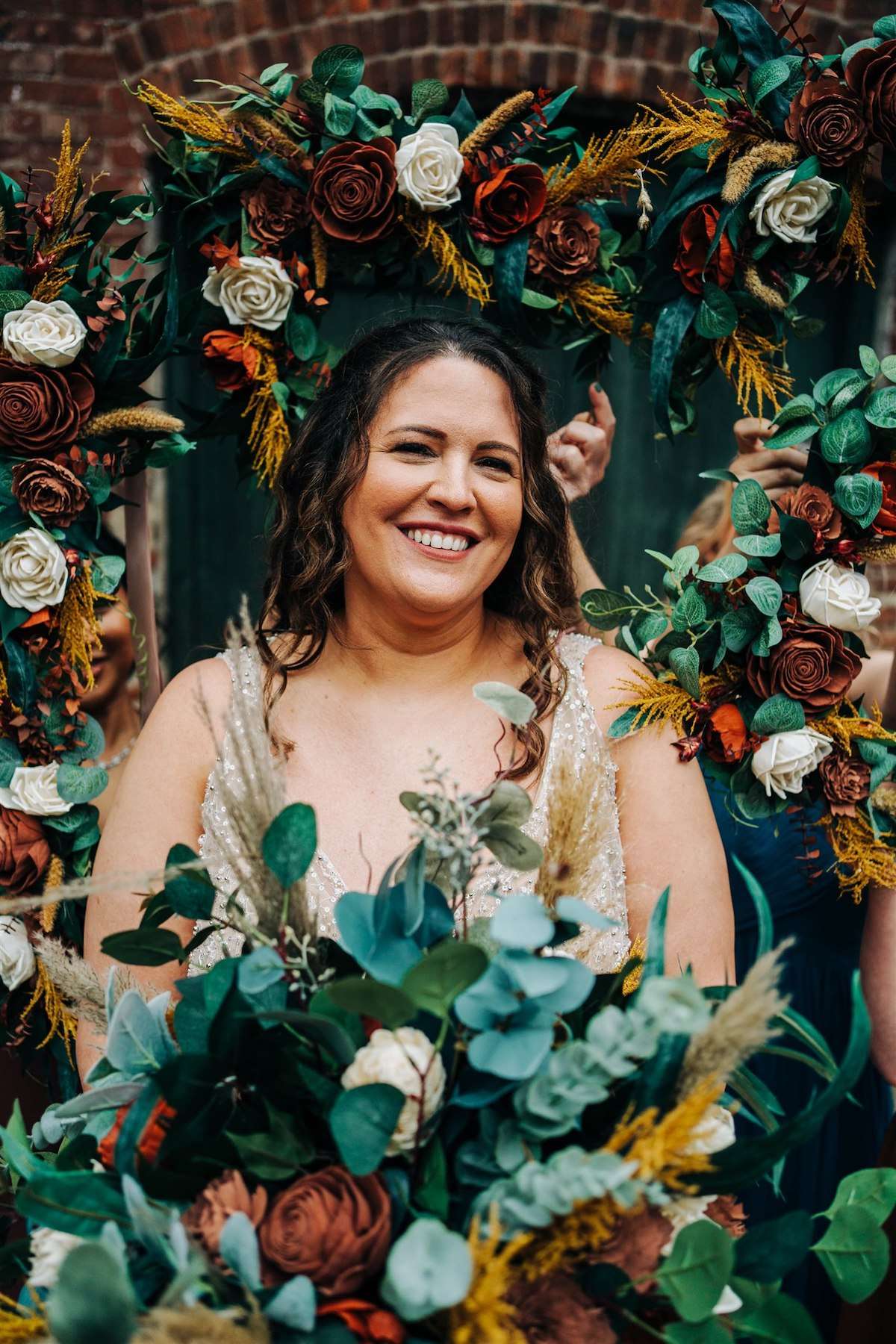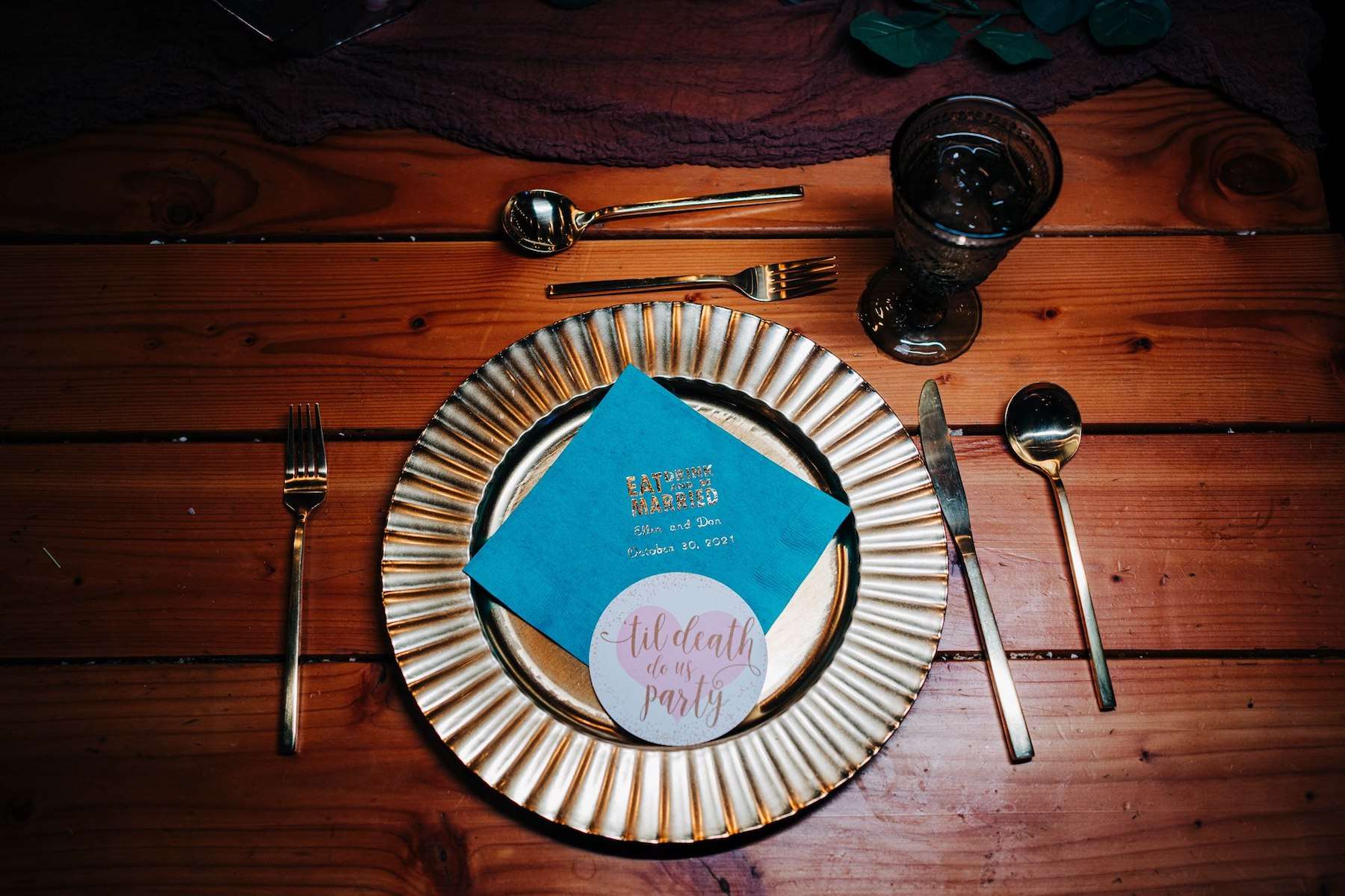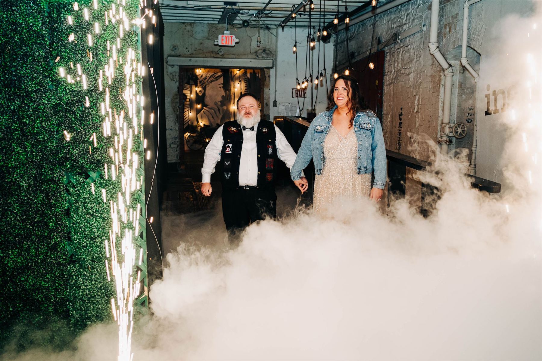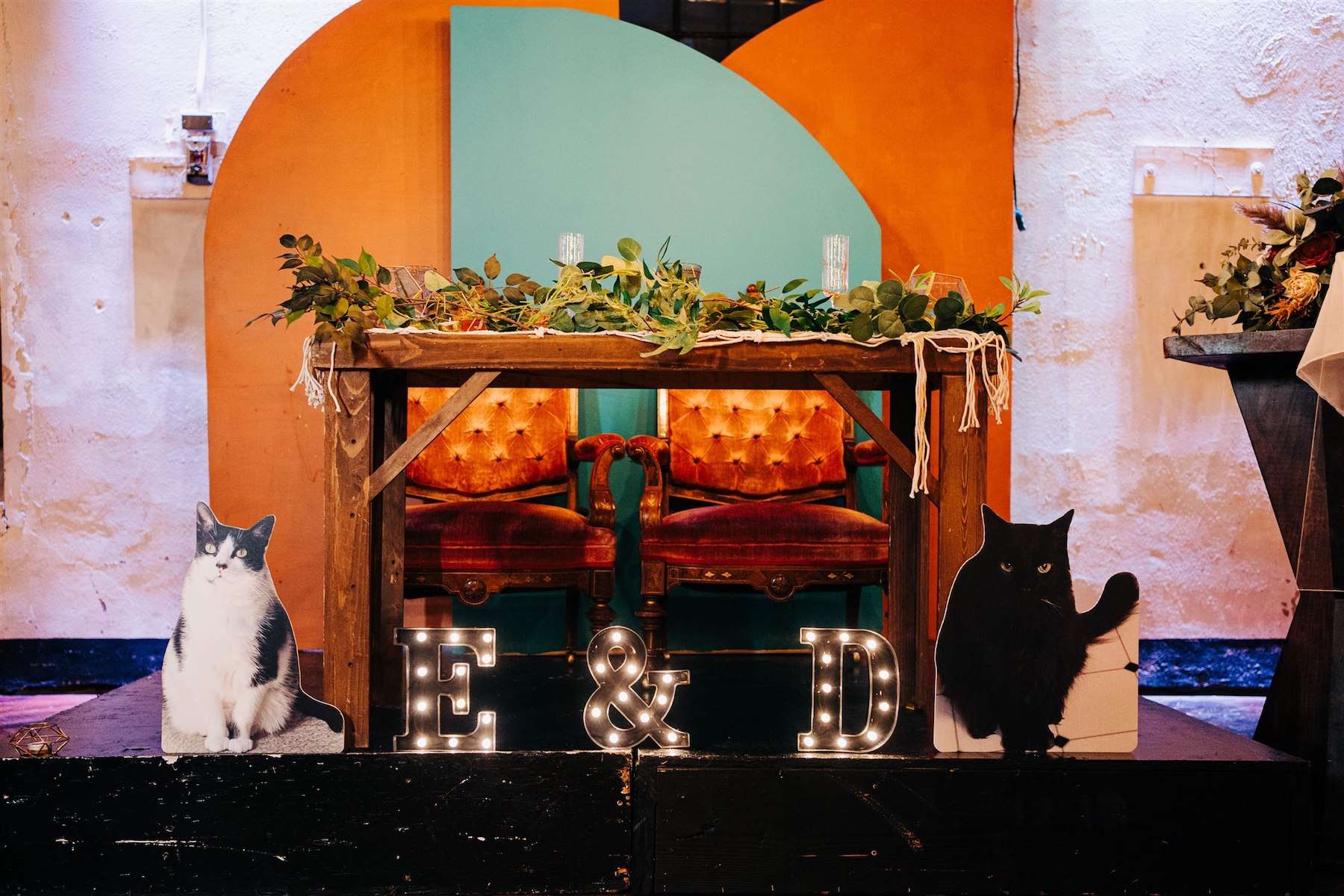 With the day focused on themselves, Ellen and Dan just wanted to have fun, curating a cocktail hour playlist with cover versions of their favourite songs, hiring their hometown coffee shop to serve hot drinks and cider during the reception, and entering their reception to The Game by Motorhead, complete with smoke and fireworks. They told us that they wouldn’t have done anything differently, “We had our dream day, and our guests are still raving about what an incredible time they had! Our advice would be to prioritise what is most important to you.”
