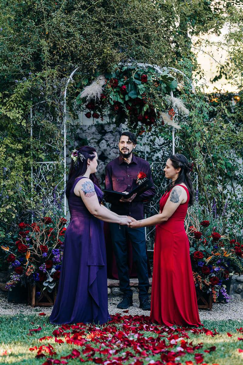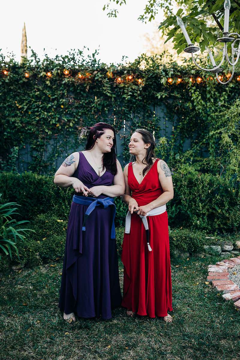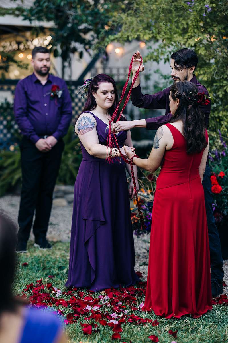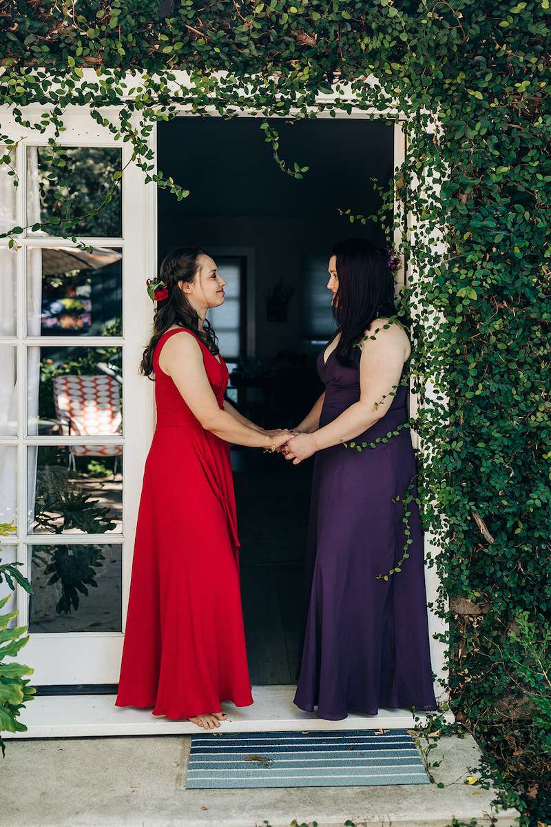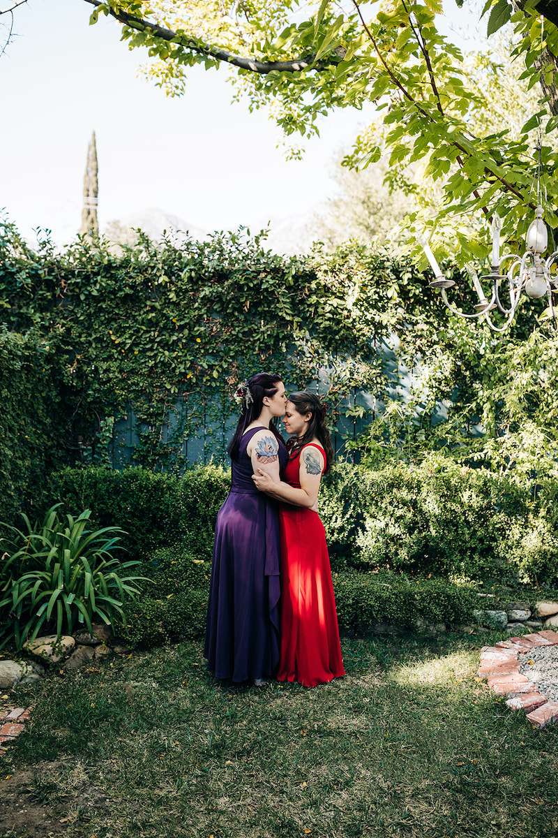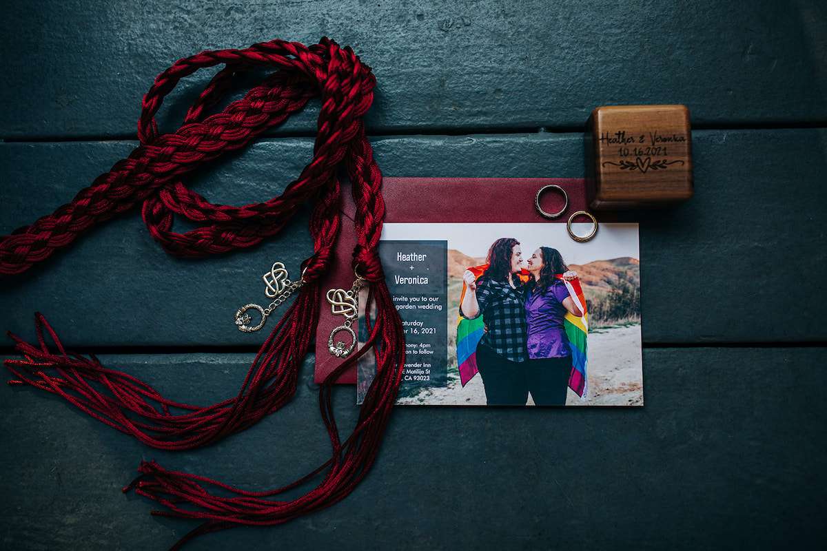 Heather and Veronica chose to have a best man each, rather than bridesmaids, for their small, 30-person wedding. The day was non-traditional and uniquely ‘them’; spiritual yet non-religious. They took inspiration from Celtic and Infinity symbols with a handfasting ceremony in the gardens of The Lavender Inn in Ojai, CA.