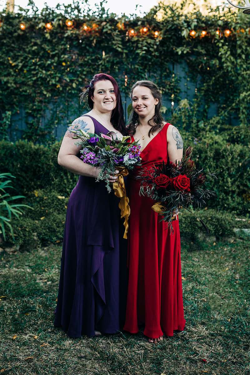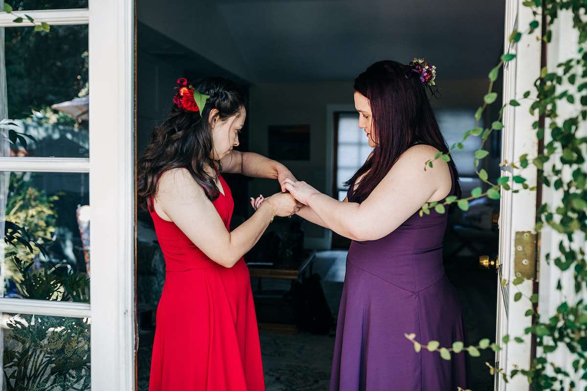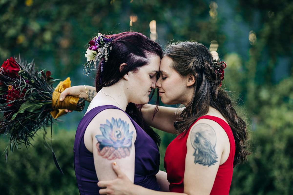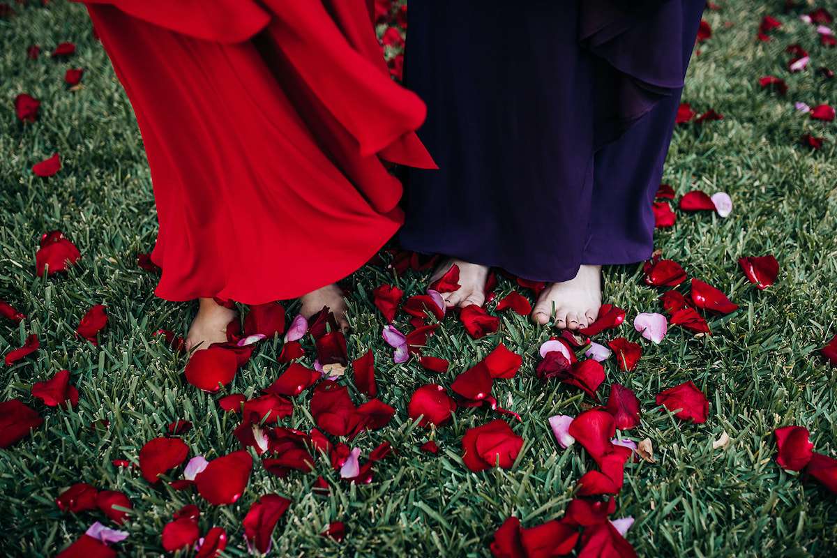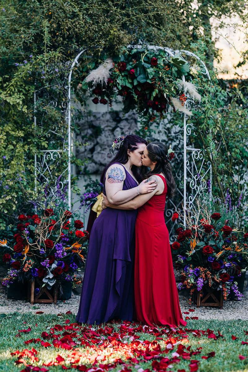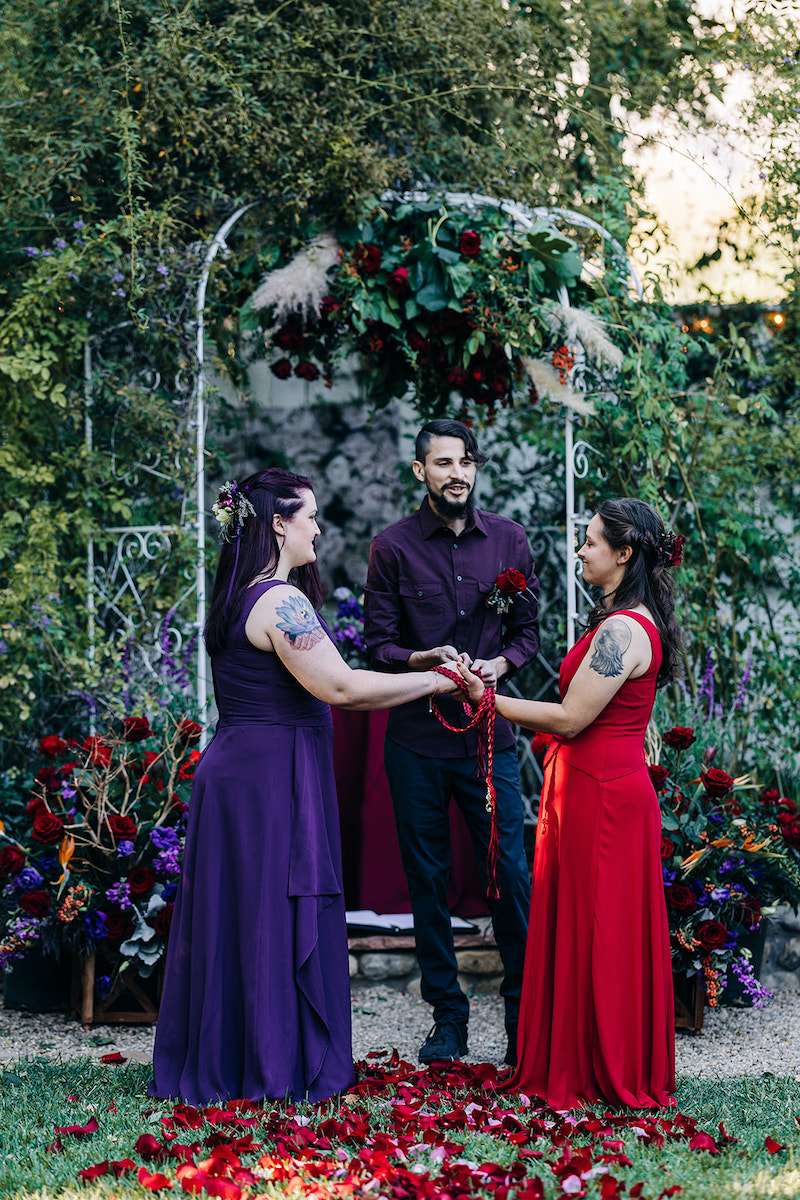 Heather and Veronica chose to have a best man each, rather than bridesmaids, for their small, 30-person wedding. The day was non-traditional and uniquely ‘them’; spiritual yet non-religious. They took inspiration from Celtic and Infinity symbols with a handfasting ceremony in the gardens of The Lavender Inn in Ojai, CA.