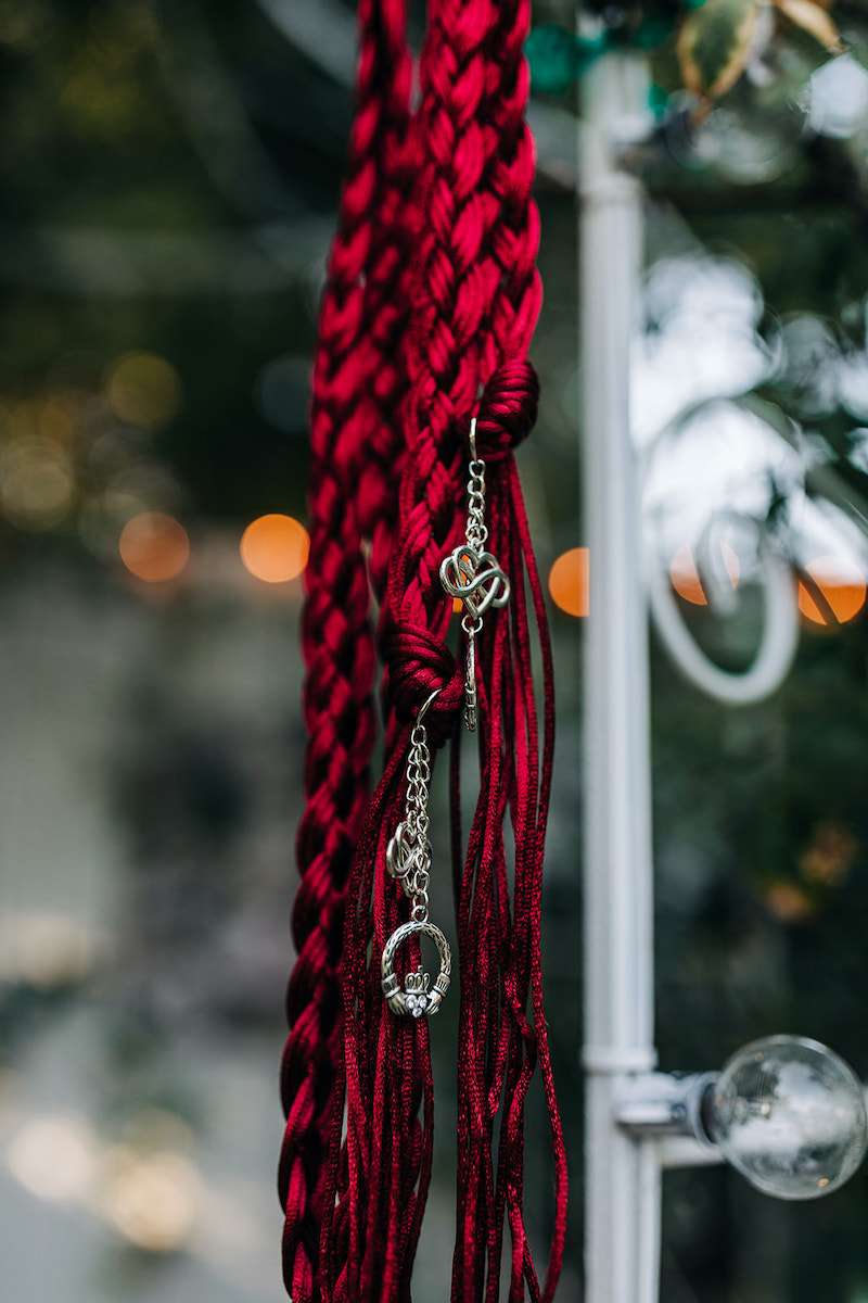 With coloured dresses instead of white, they walked themselves down the aisle barefoot, with a handfasting ceremony to join them together in marriage. The customised handfasting cord contained Claddagh and infinity charms and the seven vows, one for each wrap of the cord, were personal, with promises to share their lives together with equality of partnership and support.