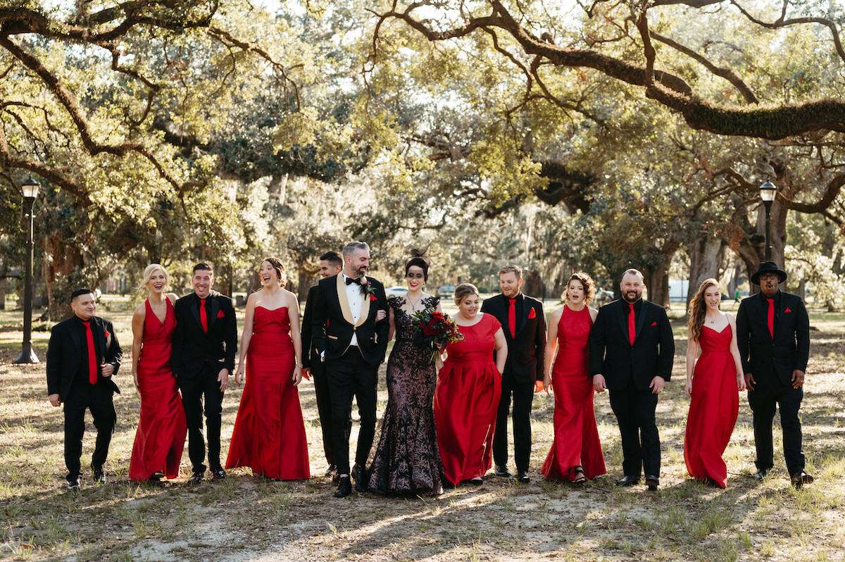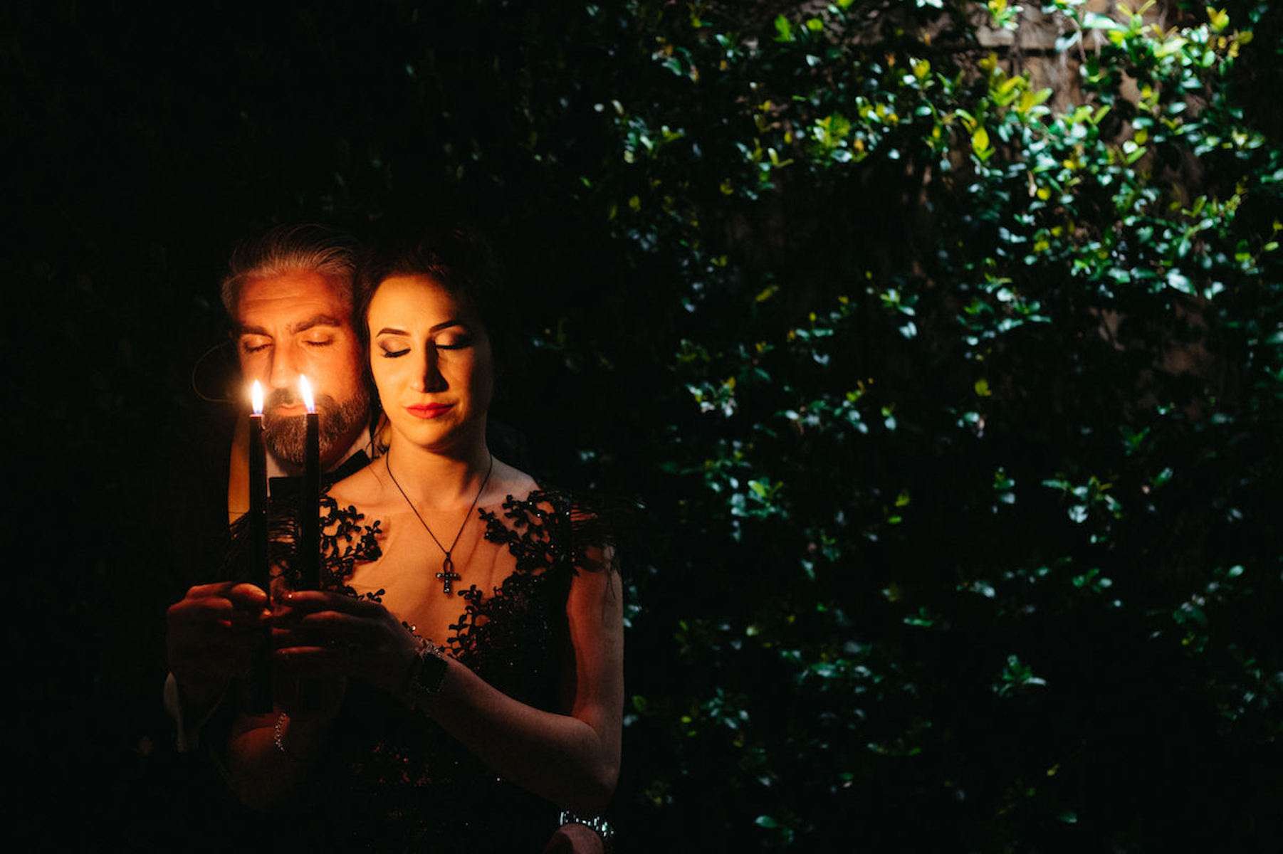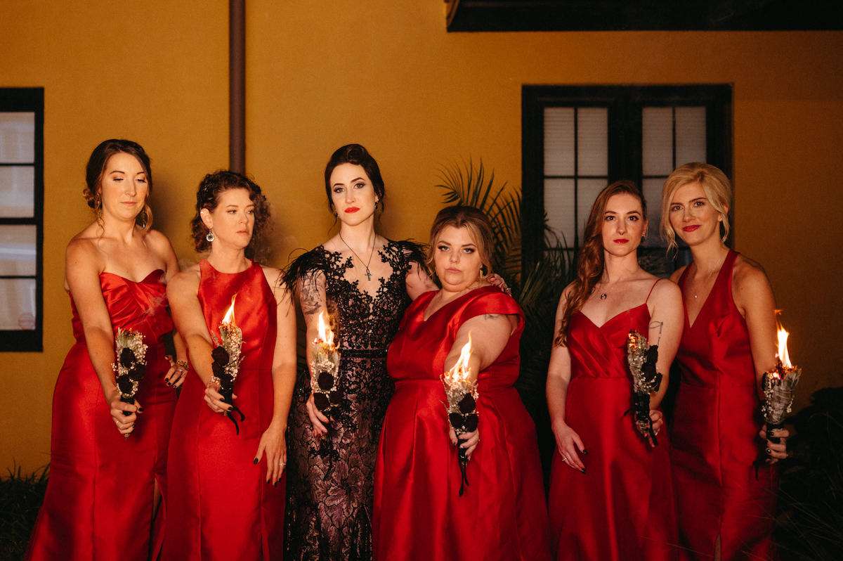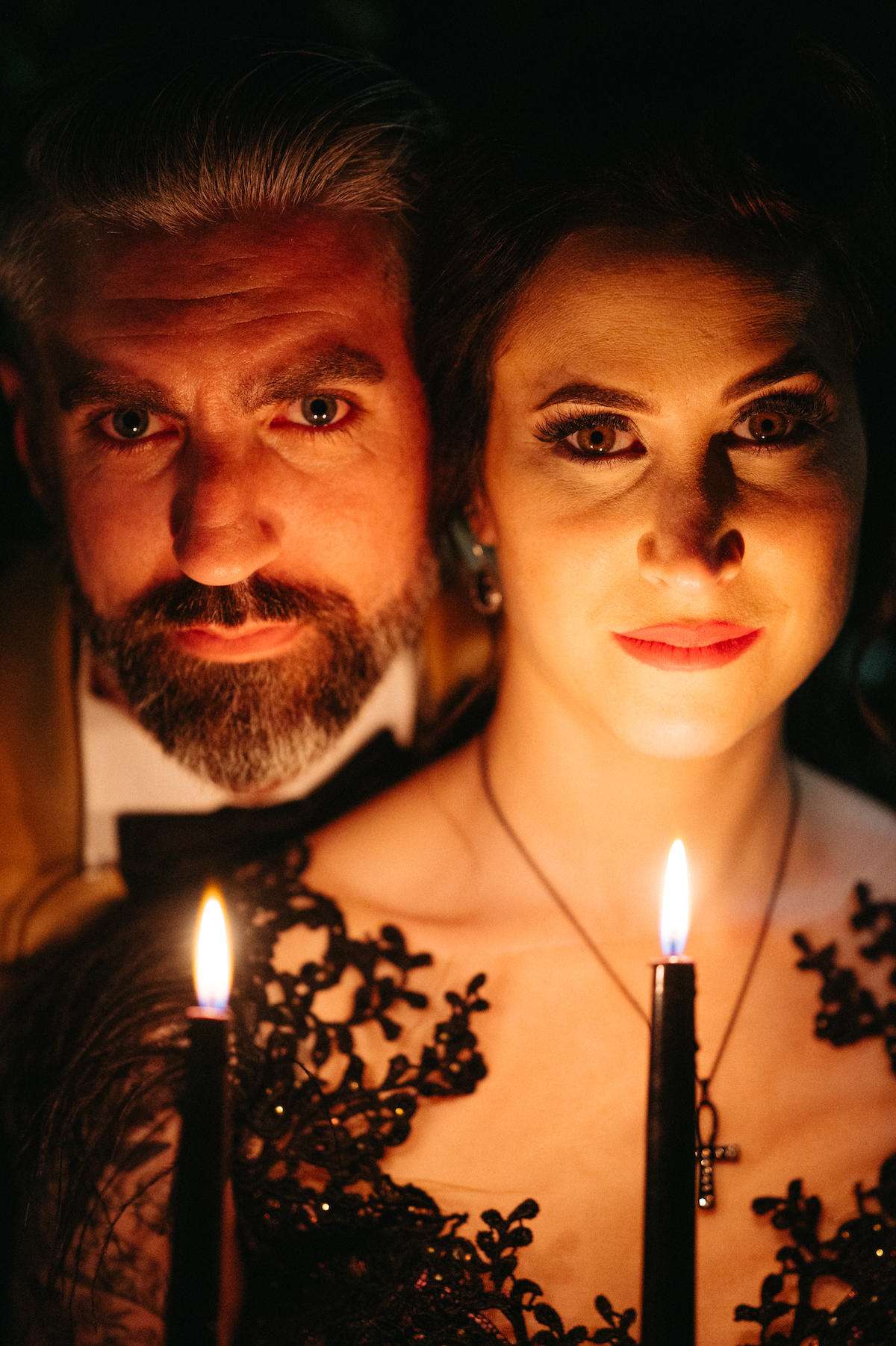 With the Halloween theme firmly embedded in their celebration, they also wanted to incorporate their beliefs, as Jacci explained, “Our nuptial theme for our wedding was Through Haunting. We believe energy continues after passing and ‘Til Death felt final, so wanted to commit beyond that.”