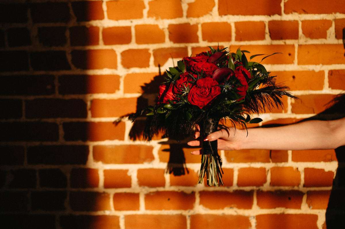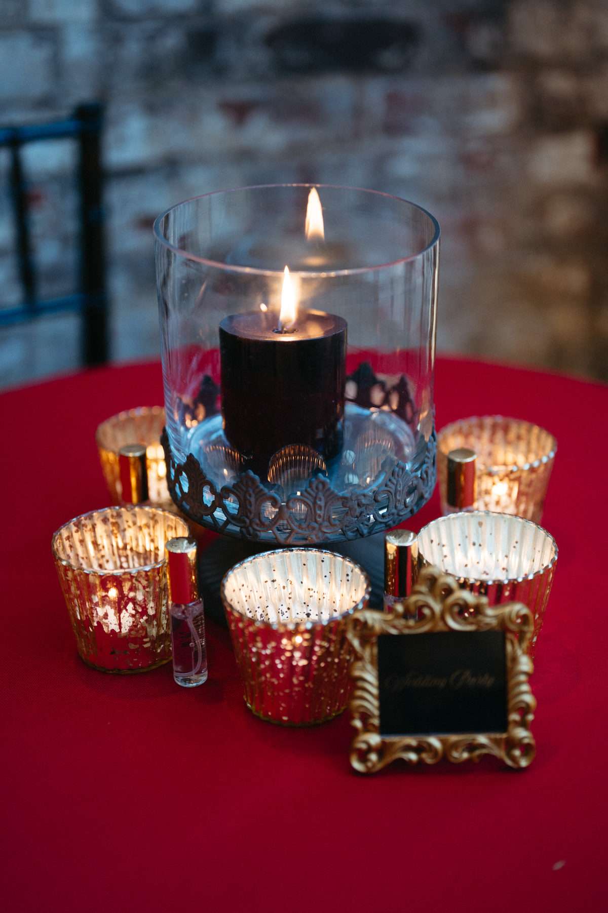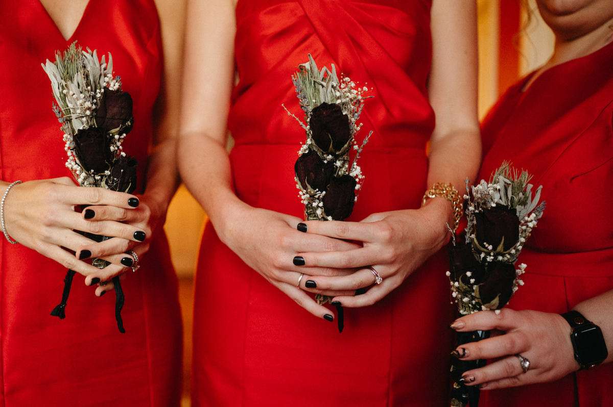 They wanted their guests to feel completely at home attending their wedding, and used their actual home as inspiration for their day. Jacci explained, “One of our guests said that they had never been to a wedding before that felt like walking into someone’s house. We love a moody black, red and gold colour scheme and just really leaned into our favourite time of the year.”