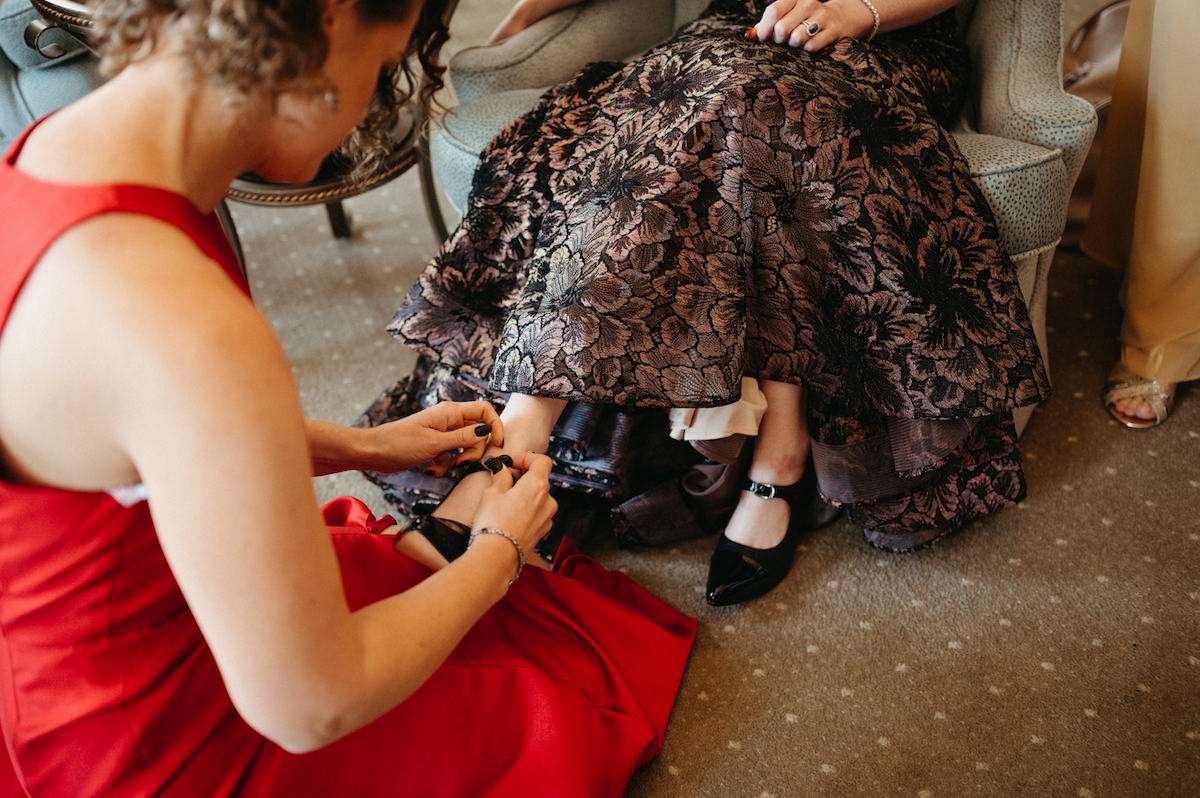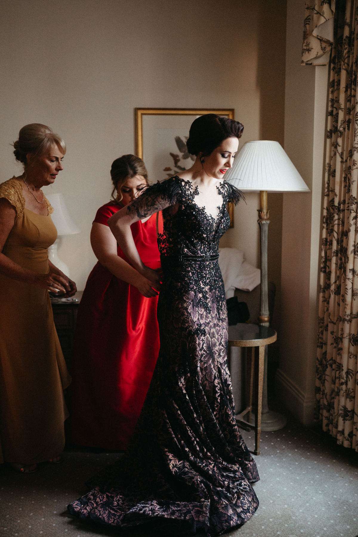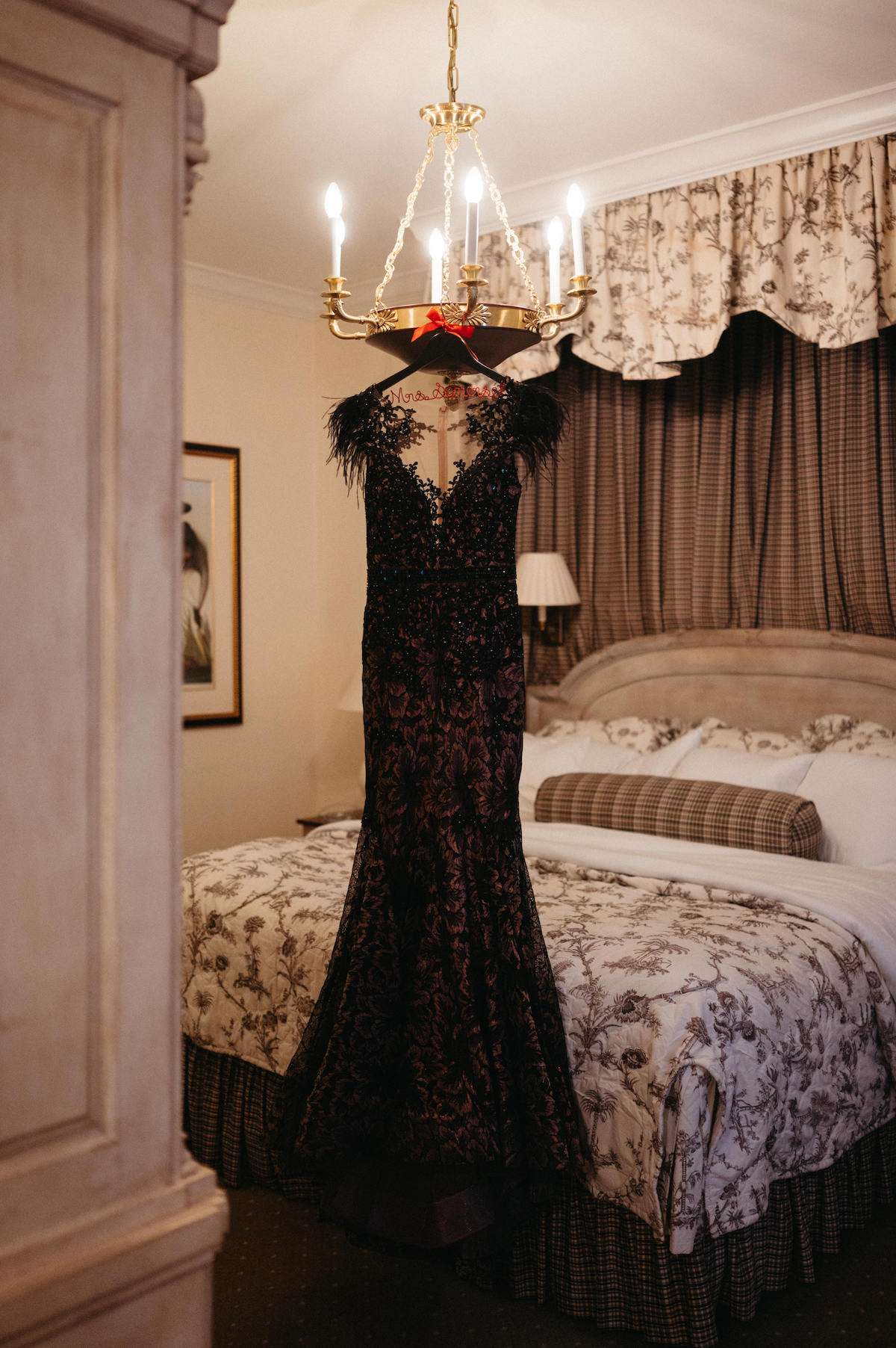 They wanted their guests to feel completely at home attending their wedding, and used their actual home as inspiration for their day. Jacci explained, “One of our guests said that they had never been to a wedding before that felt like walking into someone’s house. We love a moody black, red and gold colour scheme and just really leaned into our favourite time of the year.”