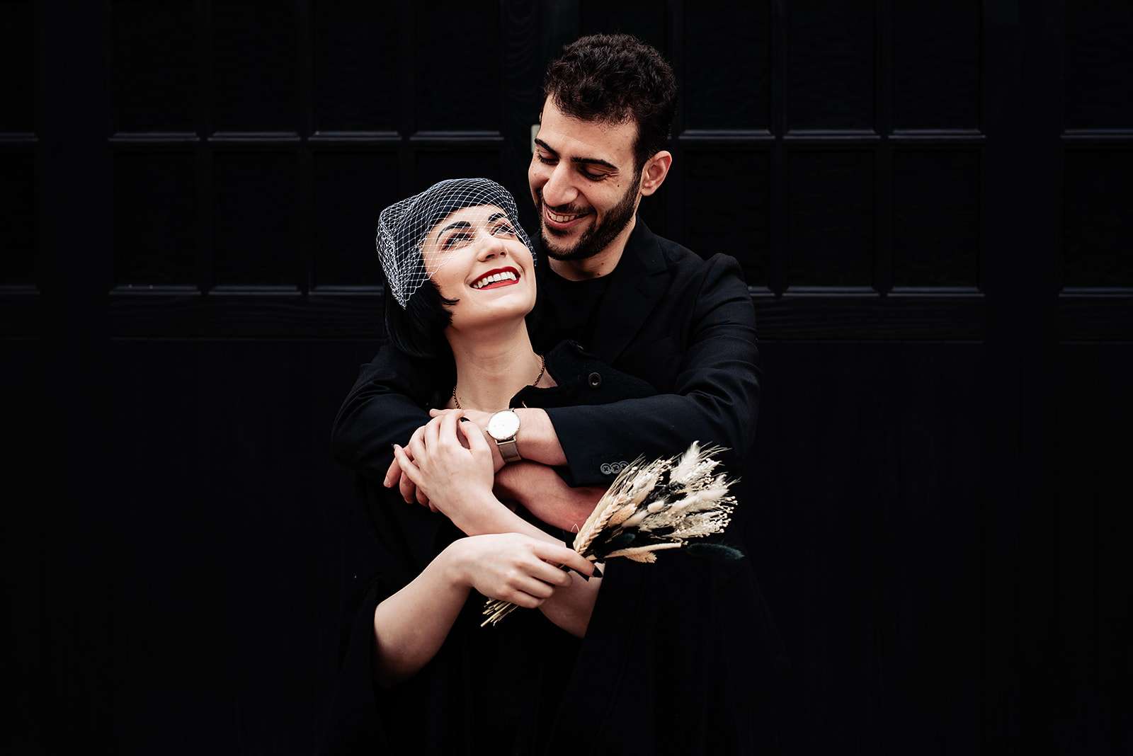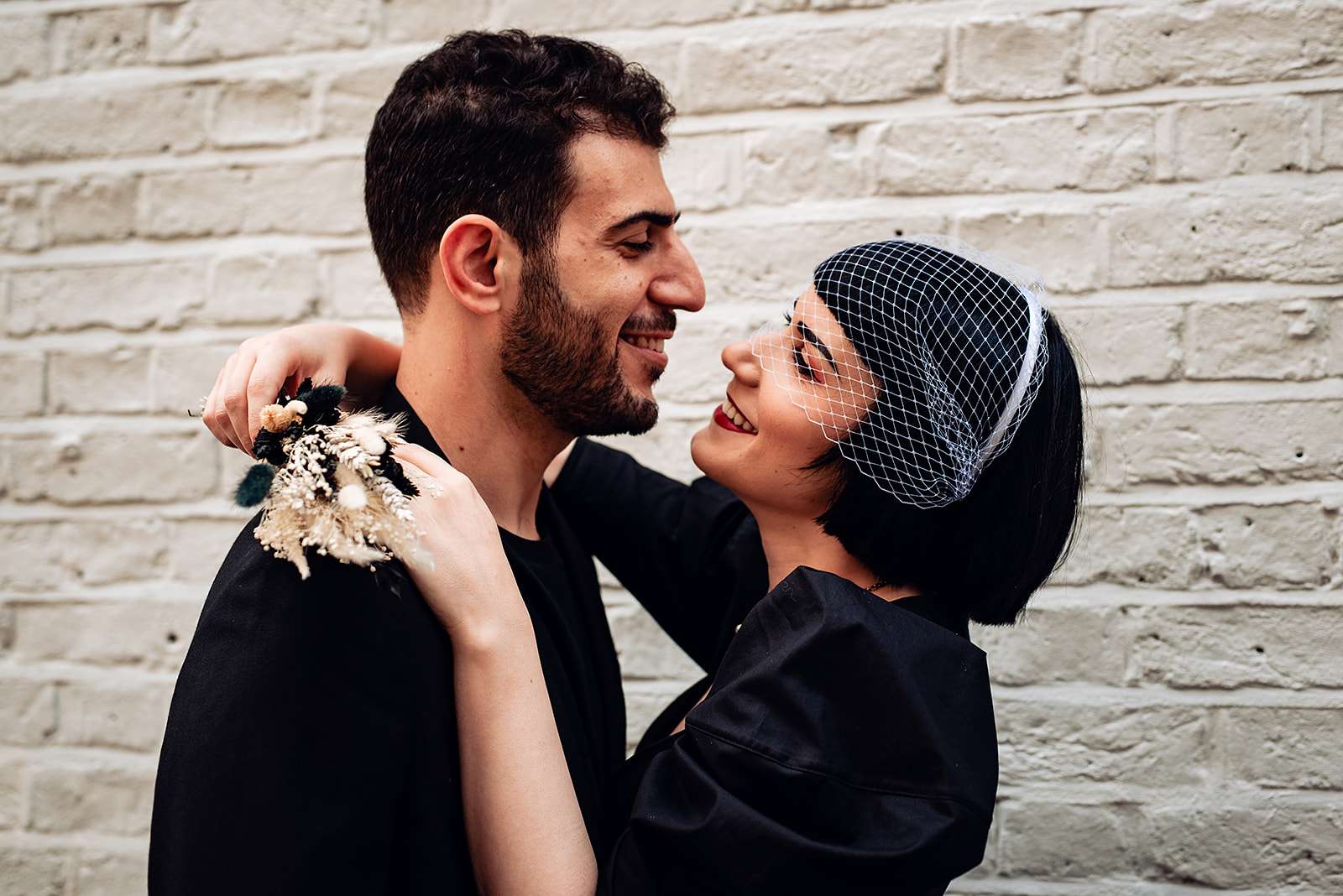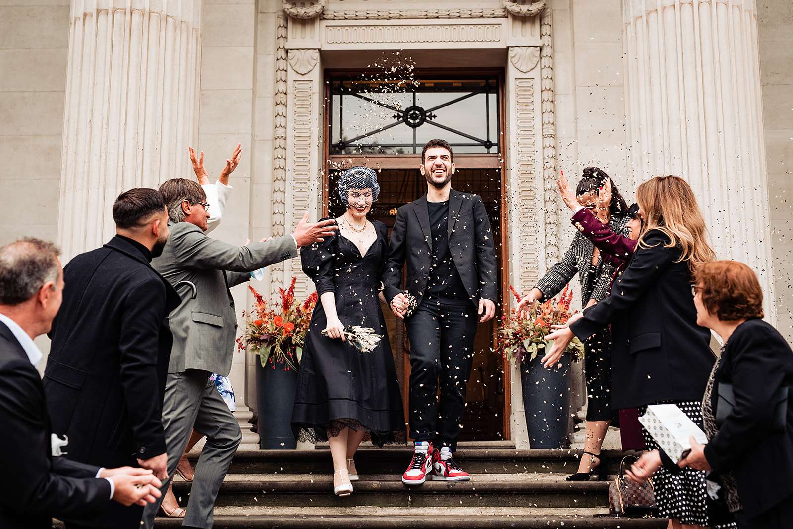 They wanted their wedding to be relaxed and reflect them, so Inez and Ismail, opted to keep things small for their September wedding. They also didn’t want anything too traditional. The bride wore a black dress by Khaite, while the groom wore his favourite red Nike trainers and a black tee-shirt rather than a shirt. The ceremony was held at Marylebone Town Hall with just a few close loved ones present, and the went to a restaurant afterwards rather than having a formal reception.