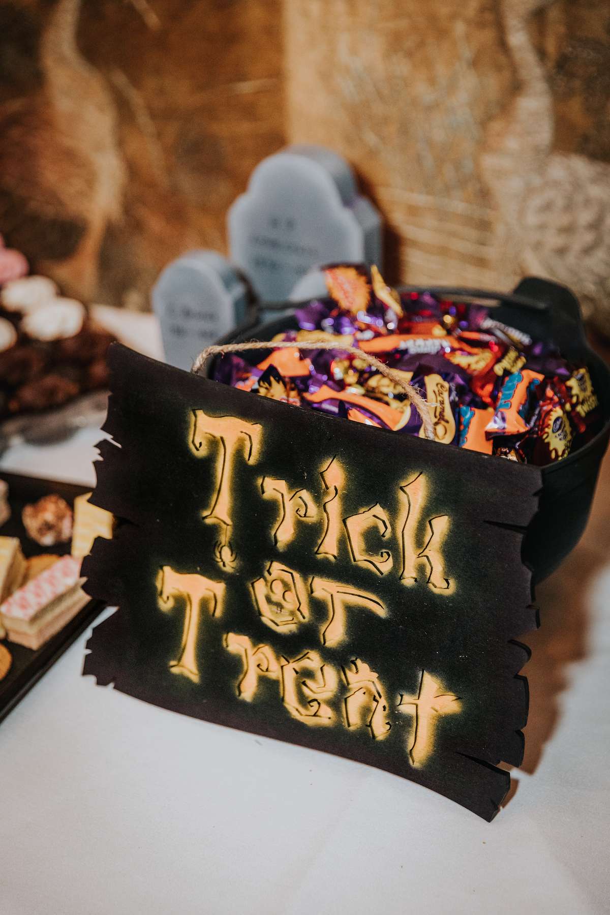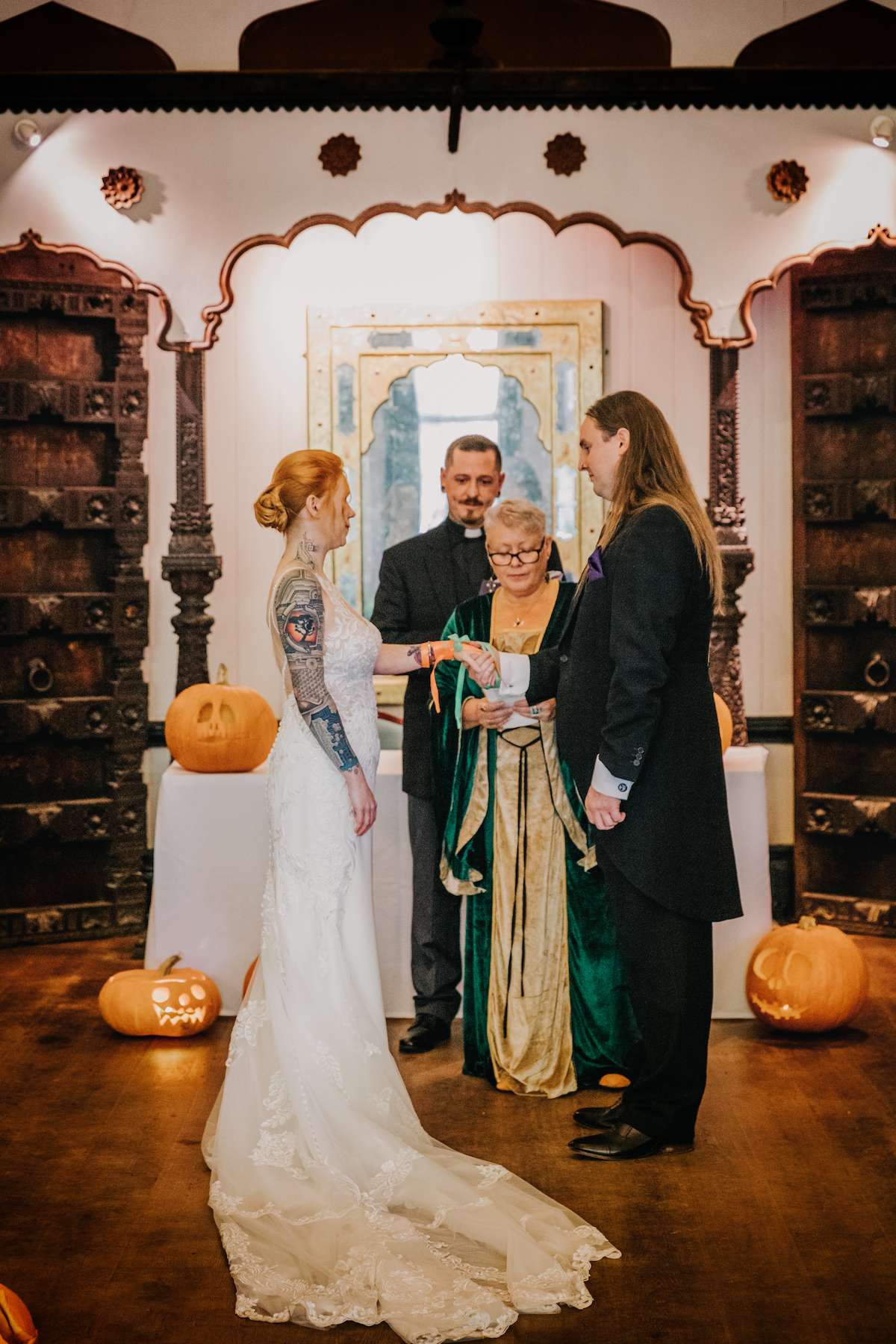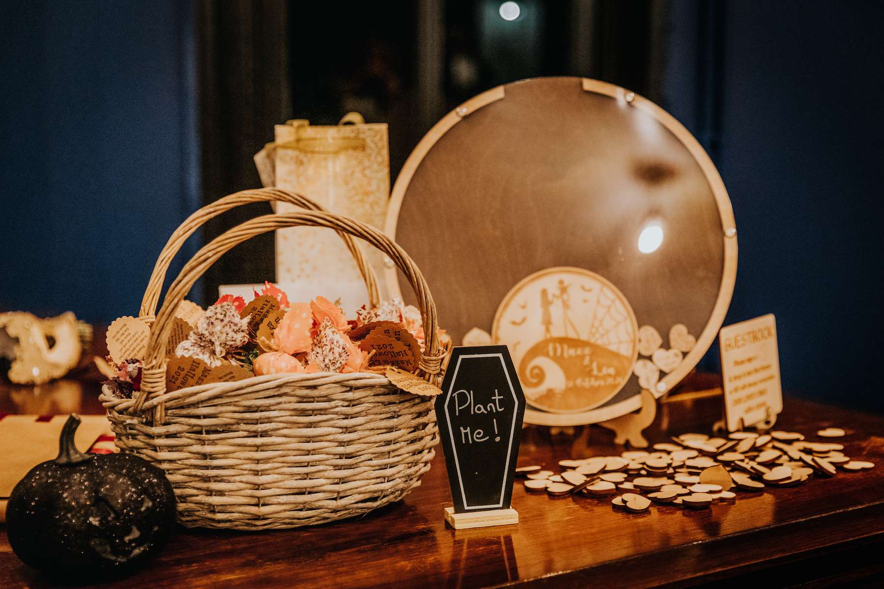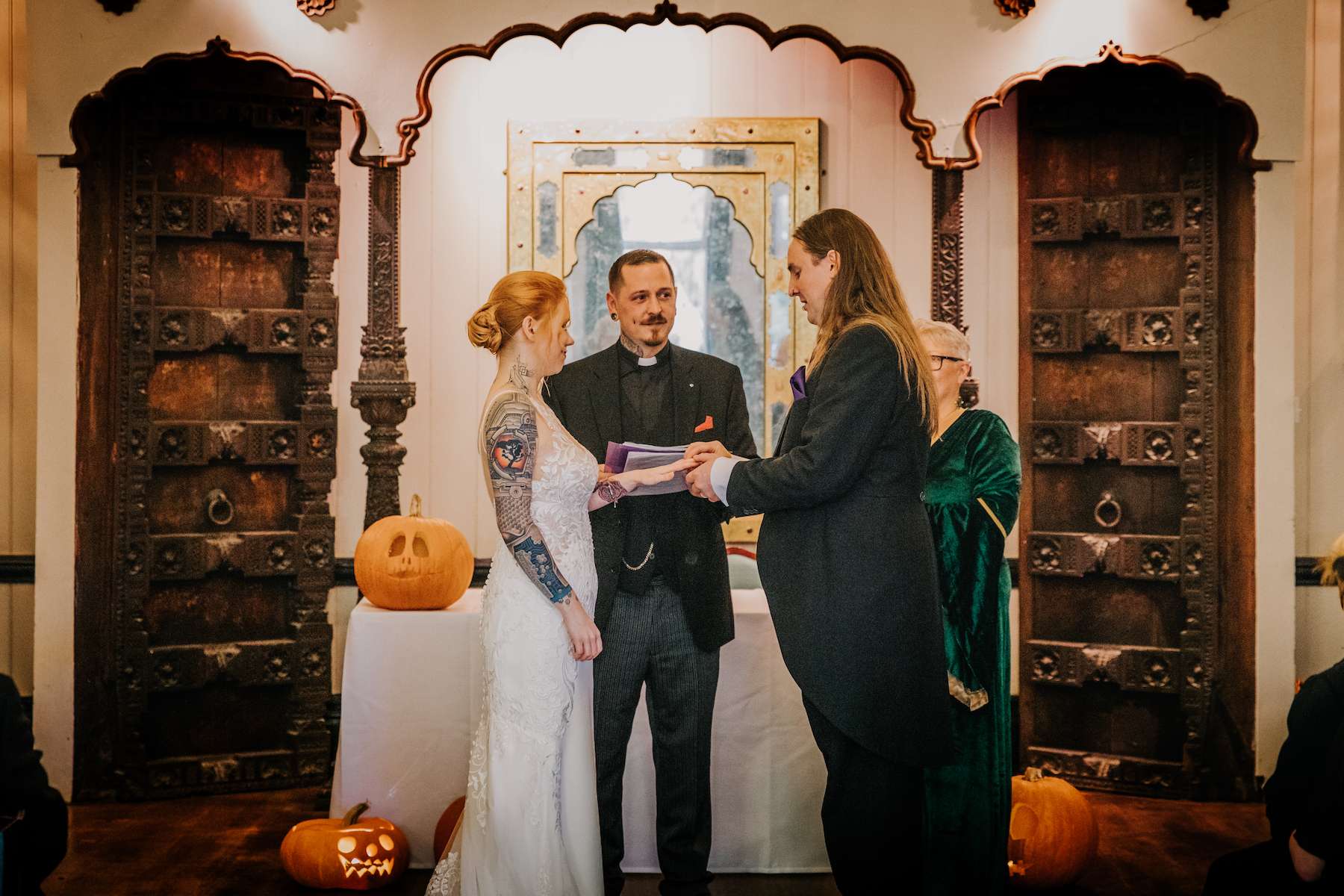 Lea explained, “Mazz and I both adore Halloween, and coming from a pagan family myself, I’d always enjoyed making a big celebration of Samhain growing up. As Mazz and I also both love Tim Burton films, especially The Nightmare Before Christmas, it was a no brainer to take inspiration from it for our wedding. We also both love fantasy, so getting to incorporate fancy dress ticked that box for us too.”