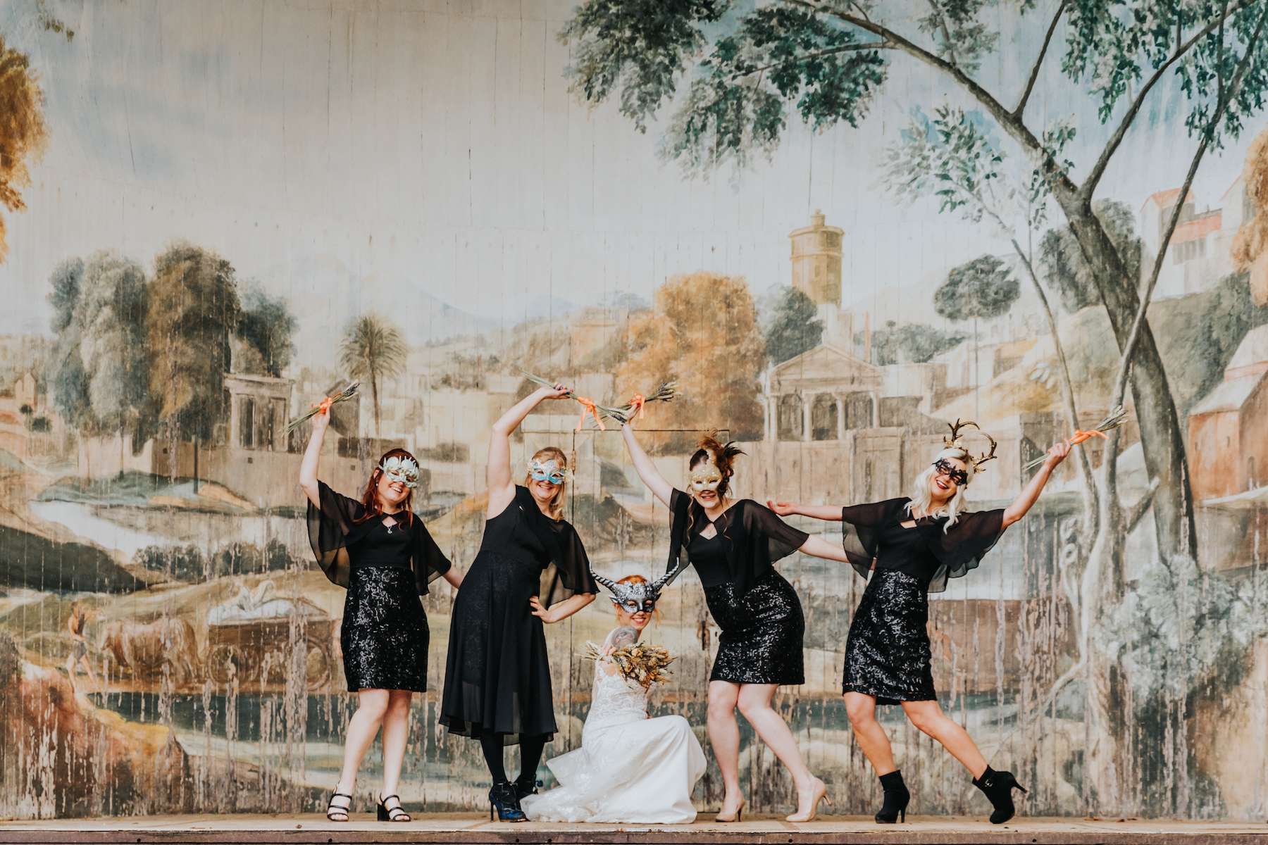 But it wasn’t all about the tough decisions, as Lea explained, “Planning a wedding is kind of like a big art project. You get to choose your theme, your colours, your flourishes…for me the best bit was getting to collaborate with all of the people I love and build something beautiful that meant something to all of us. It was amazing getting to see what masks everyone in the wedding party chose, or what shoes the bridesmaids fell in love with. Watching everyone really get into the theme and be inspired was wonderful.”