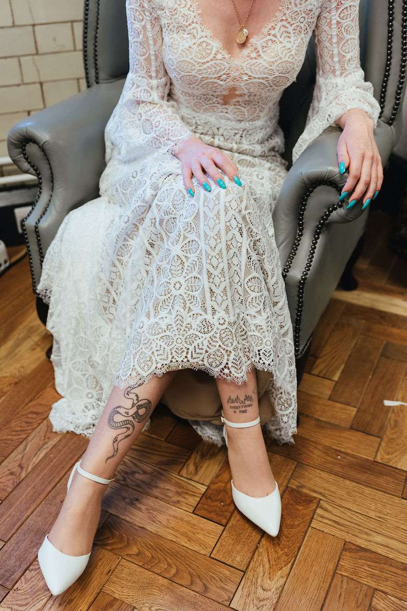 Trying on wedding dresses was Imogen’s favourite thing about wedding planning, but she advised to be careful about footwear, thinking ahead to the dancefloor. She recommended, “Bring Air Force Ones to dance in! No one can see them under your dress…” And continued, “Don’t stress too much, no matter what happens it’ll still be the best day of your life.”