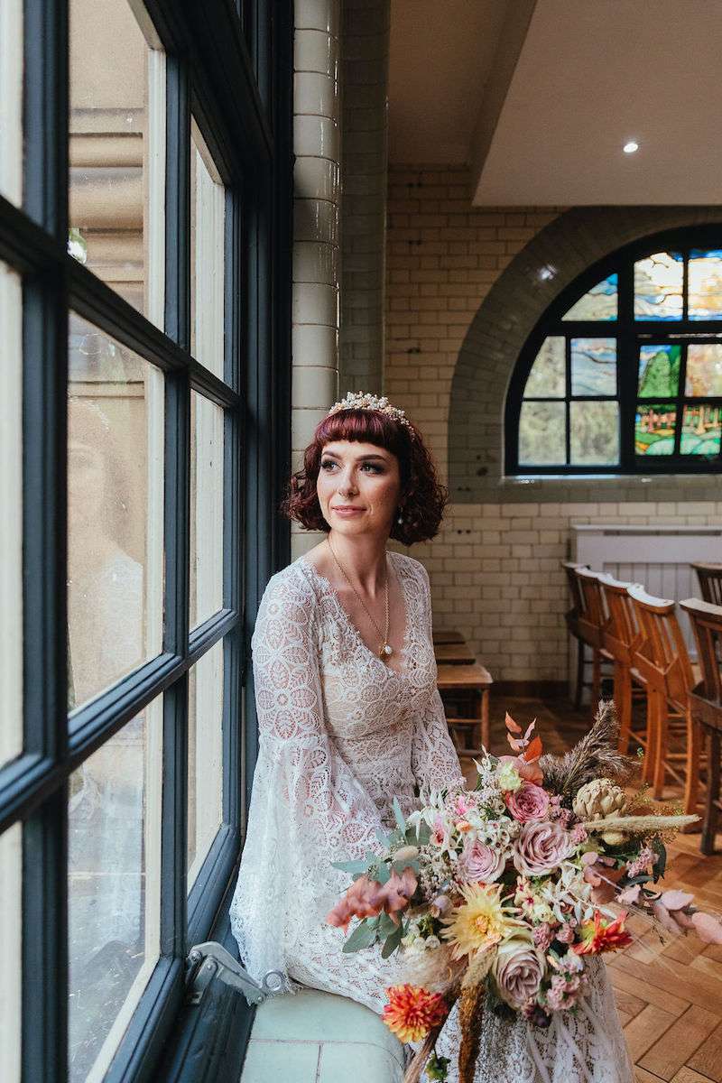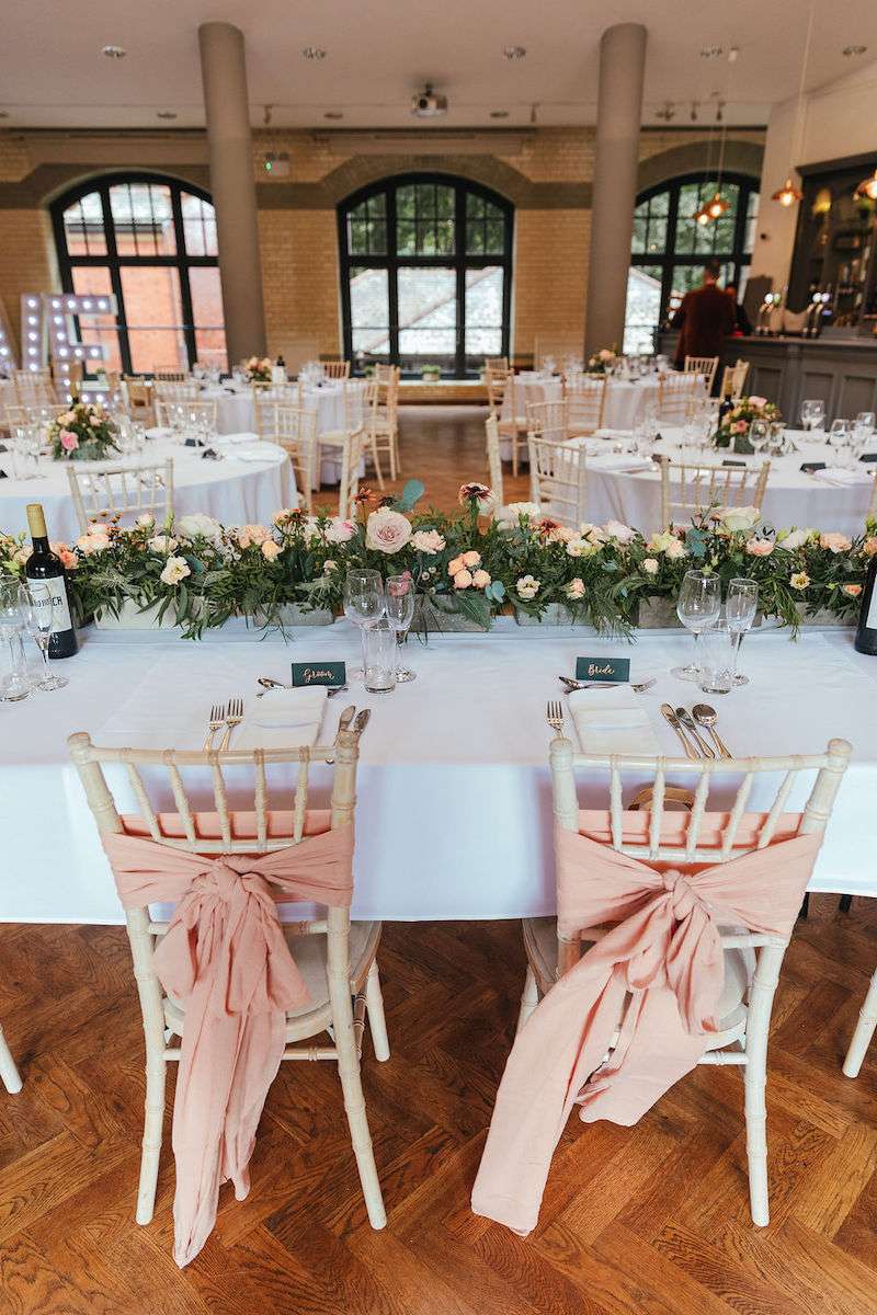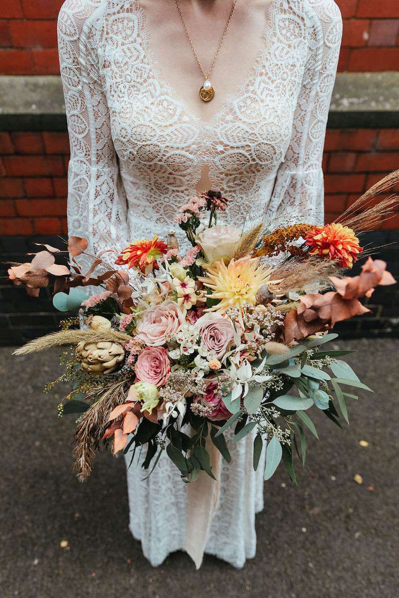 They chose The Pumping House in Newark as their venue, falling in love with the industrial style. In fact the venue was so beautiful, only florals were needed as décor. To bring the bohemian vibe, they incorporated a mixture of dried and real flowers everywhere.