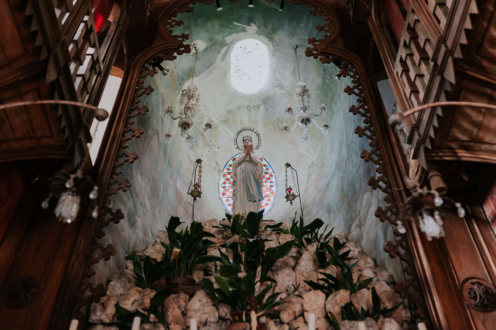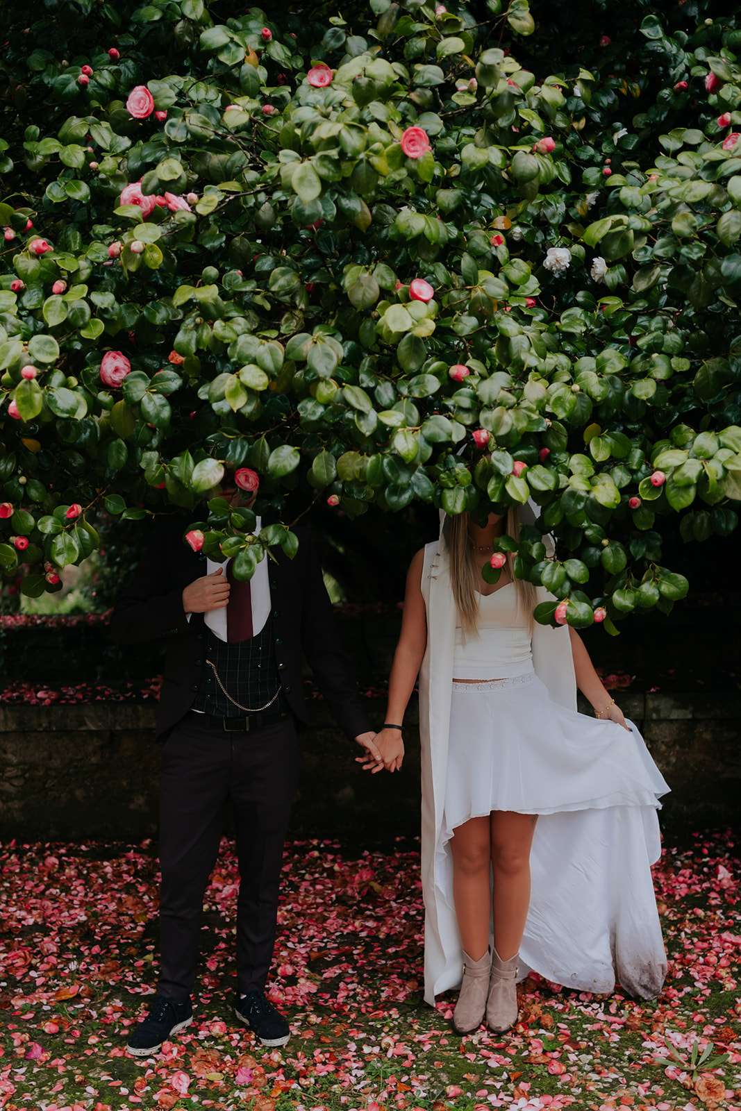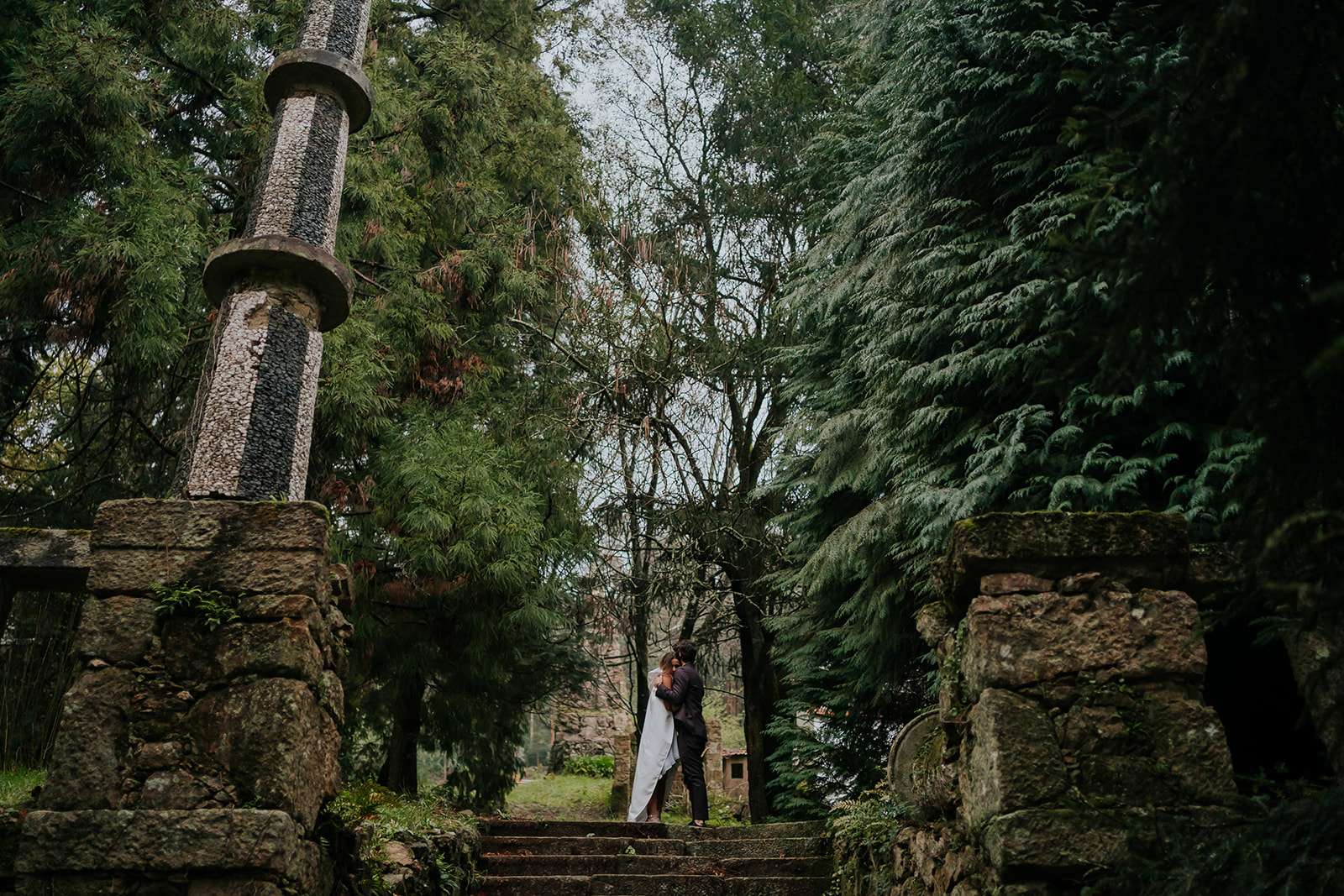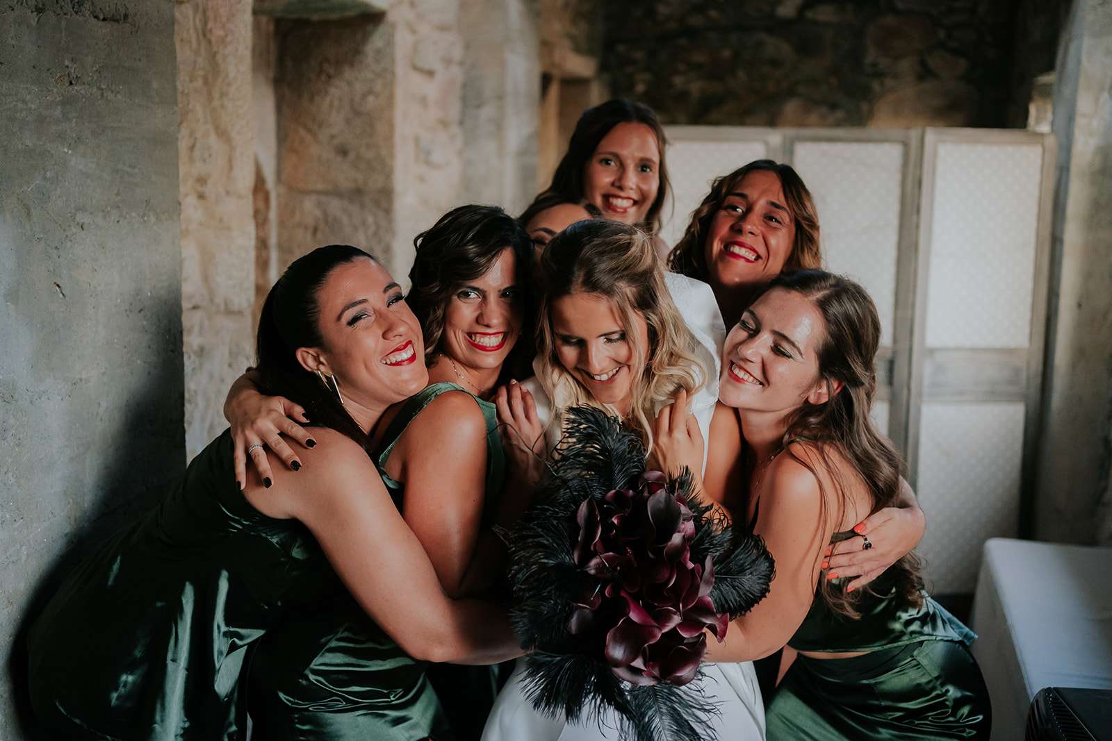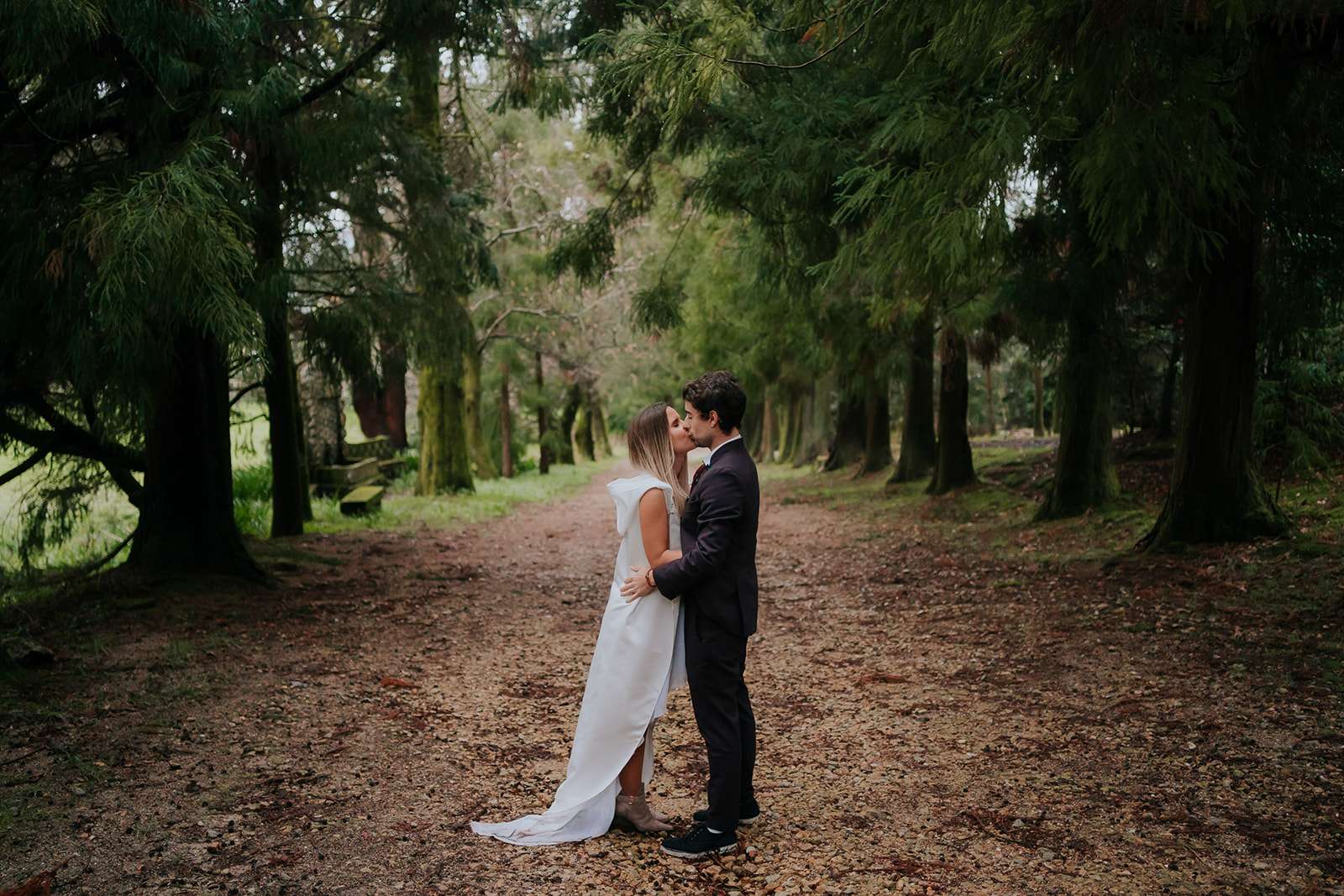 Soraia and Hugo’s dark and spooky wedding was held on Friday 13th in Oliveira de Azeméis, Portugal. Although they didn’t have really specific inspiration or references they went back to when pulling together the theme, they wanted it to be dark, yet meaningful to them. The bride wore her mother’s wedding dress, for example, which she had altered into her own style including adding a hooded cape!
