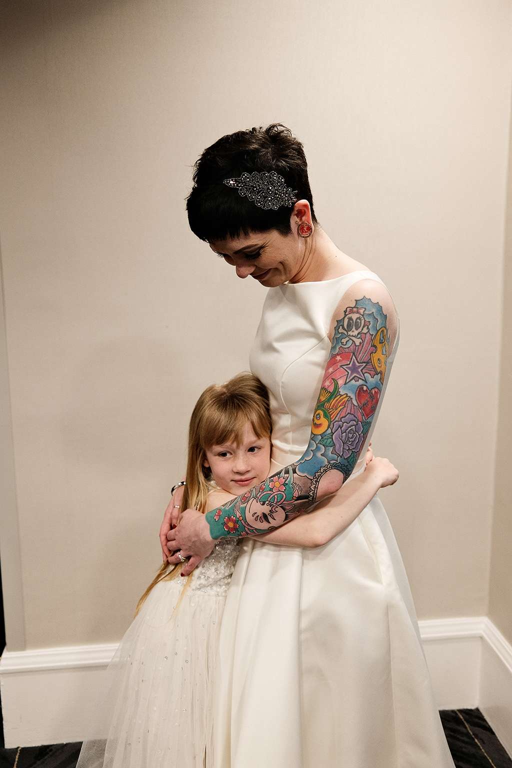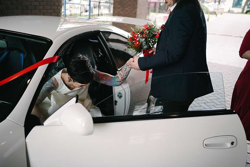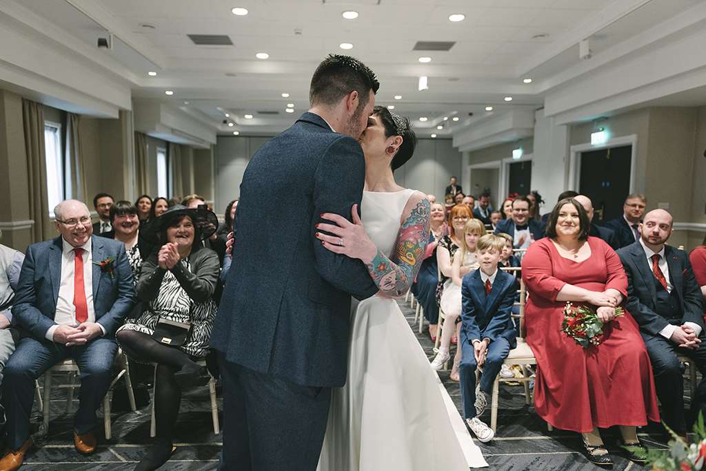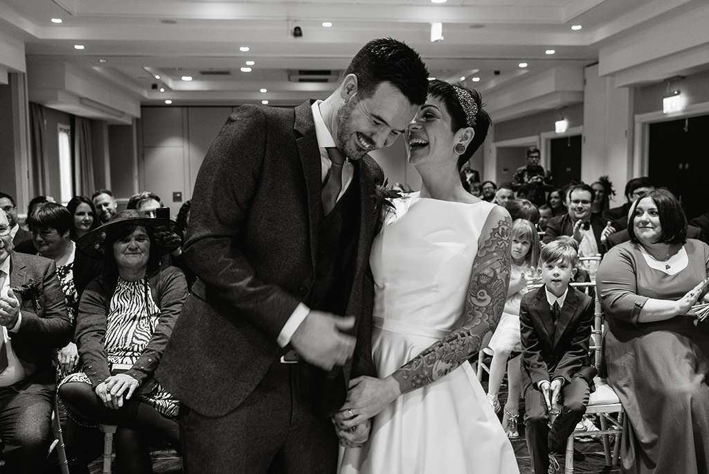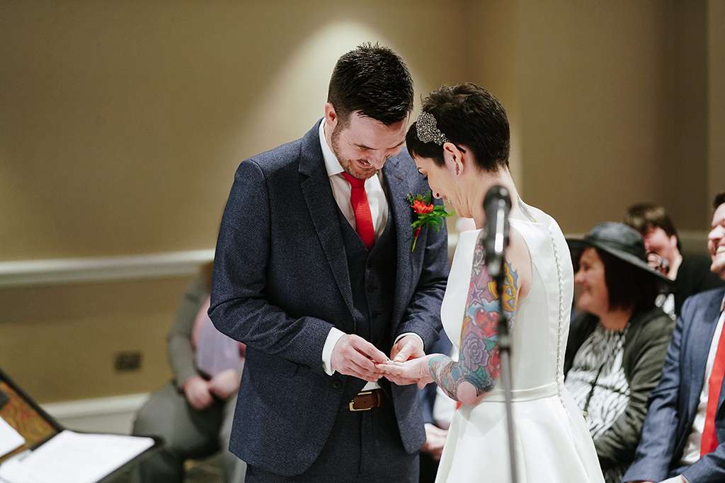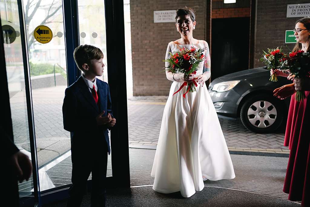Their ceremony, with a soundtrack of instrumental video game music, was an emotional one; “There were a lot of tears, and I feel like most of that was just because we had waited for so long to get to that moment!” Sian continued. “My nephew, Finnley, walked me down the aisle, and that was really special. When I got to the front, we just giggled at each other for a few minutes – the registrar had told me to put my bouquet on the table, but she had to take it from me because I was laughing so much! Looking back at the photos, I’m so happy that it was a day full of laughter. Our vows were standard ones selected from a menu from the registry office – I think we used all our creativity on other bits!”