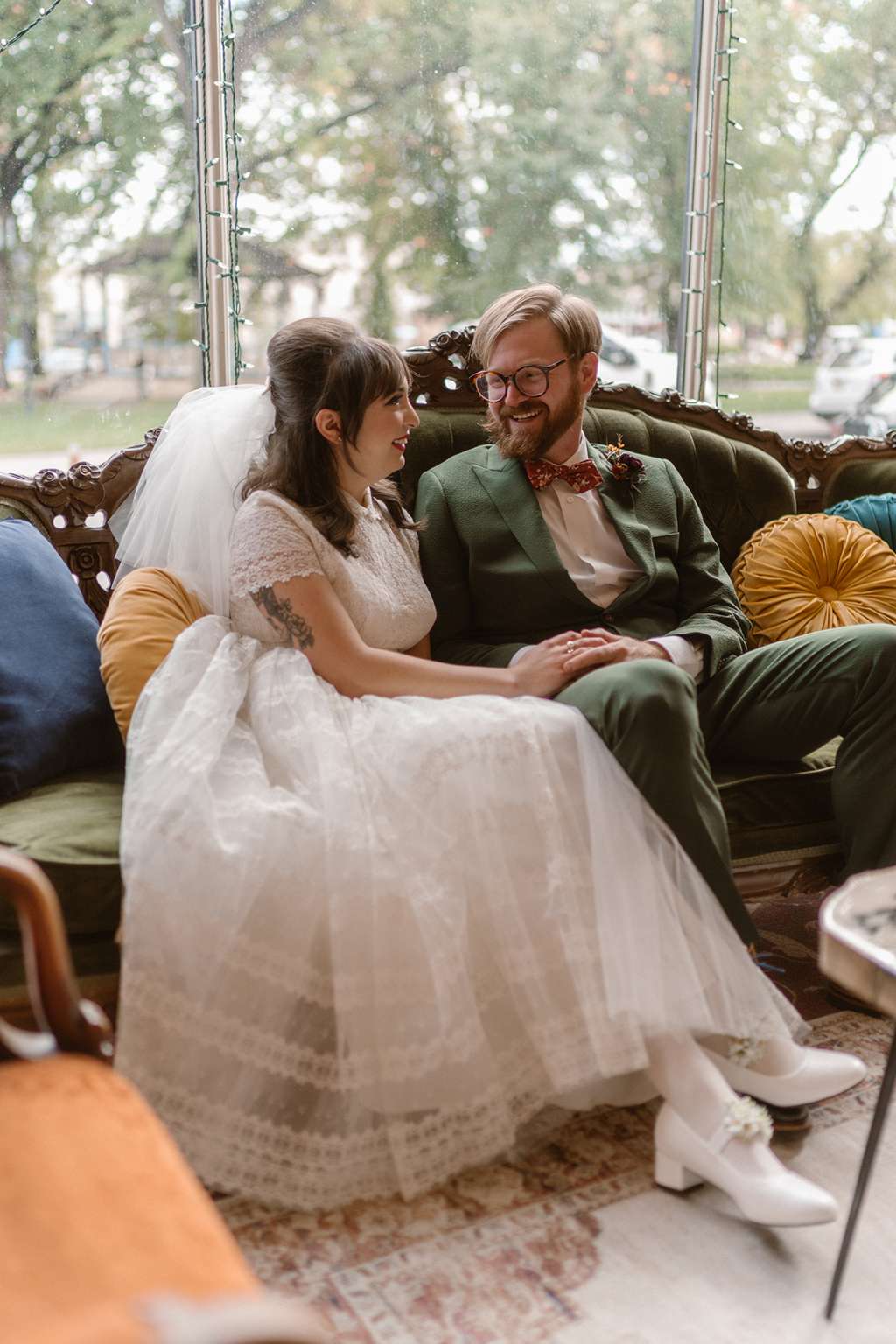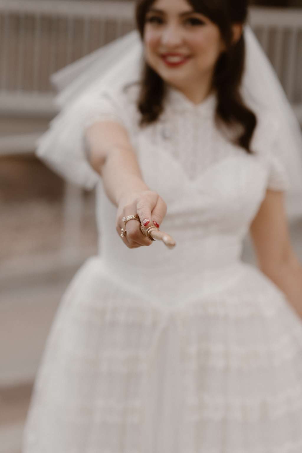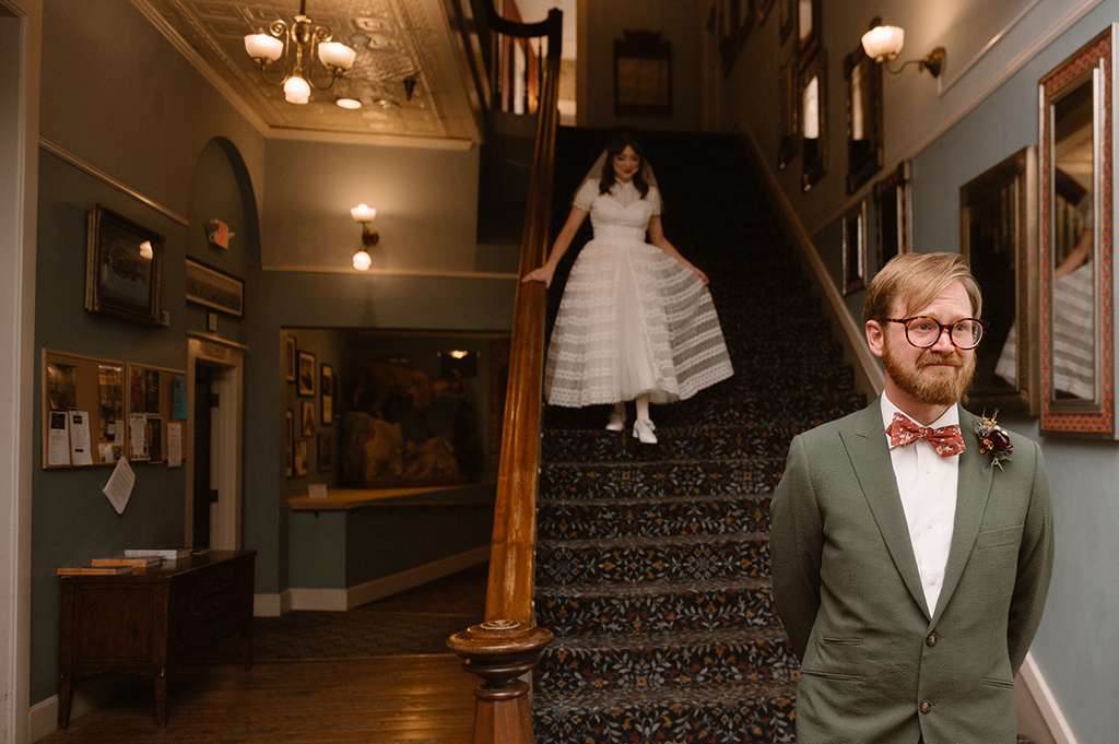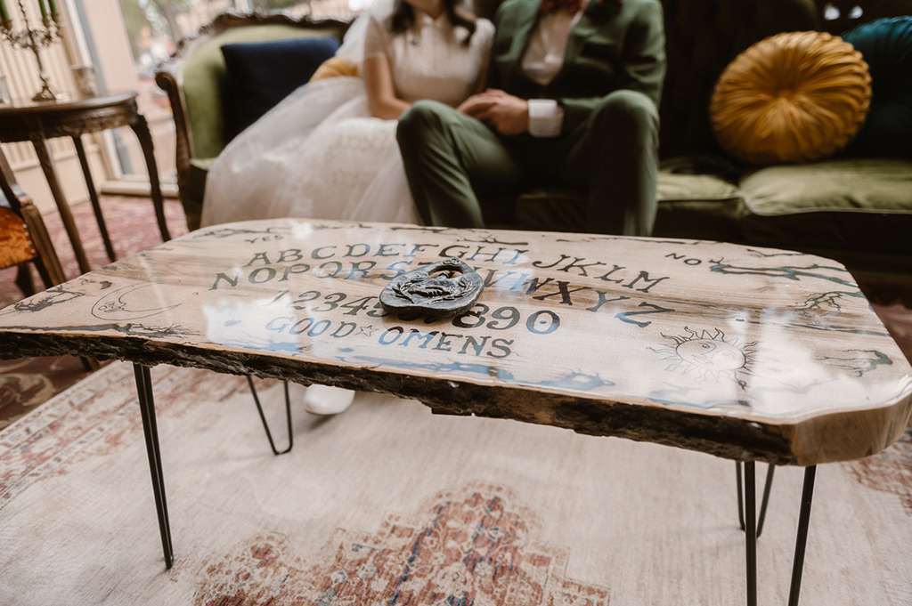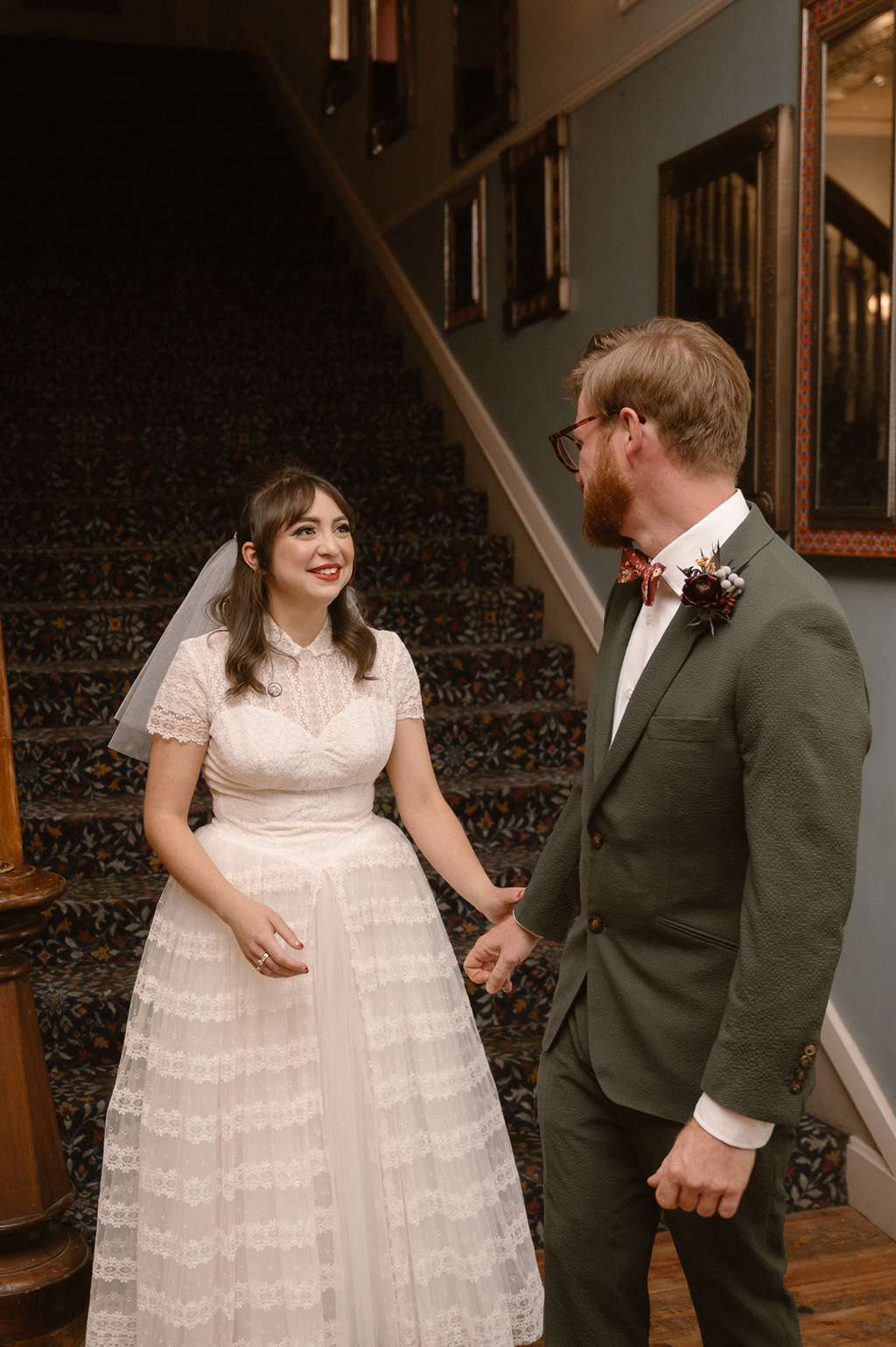 Inspired by Harry Potter, Over the Garden Wall and 1920s – 1950s style, Alix and Kevin are advocates for having fun and making your wedding day your own – even if it’s creepy! They filled their day with taxidermy and antique decorations, threw it at a haunted hotel and treated their guests to a vegetarian menu and a tarot card reader at their reception.