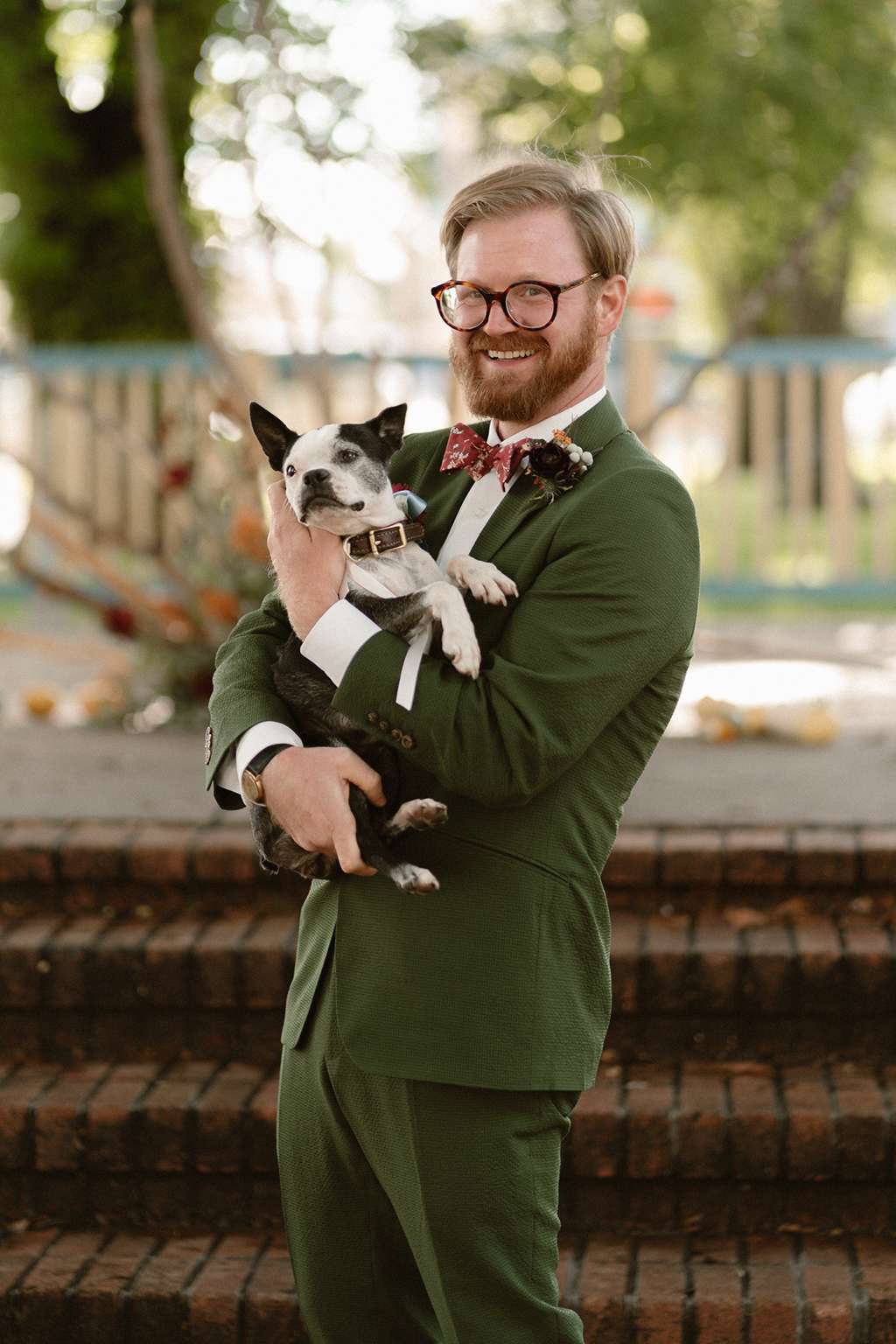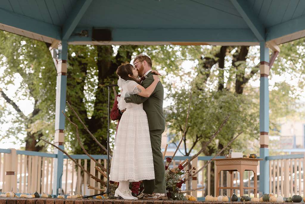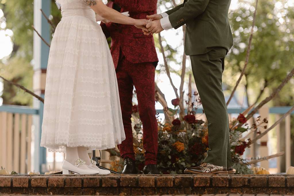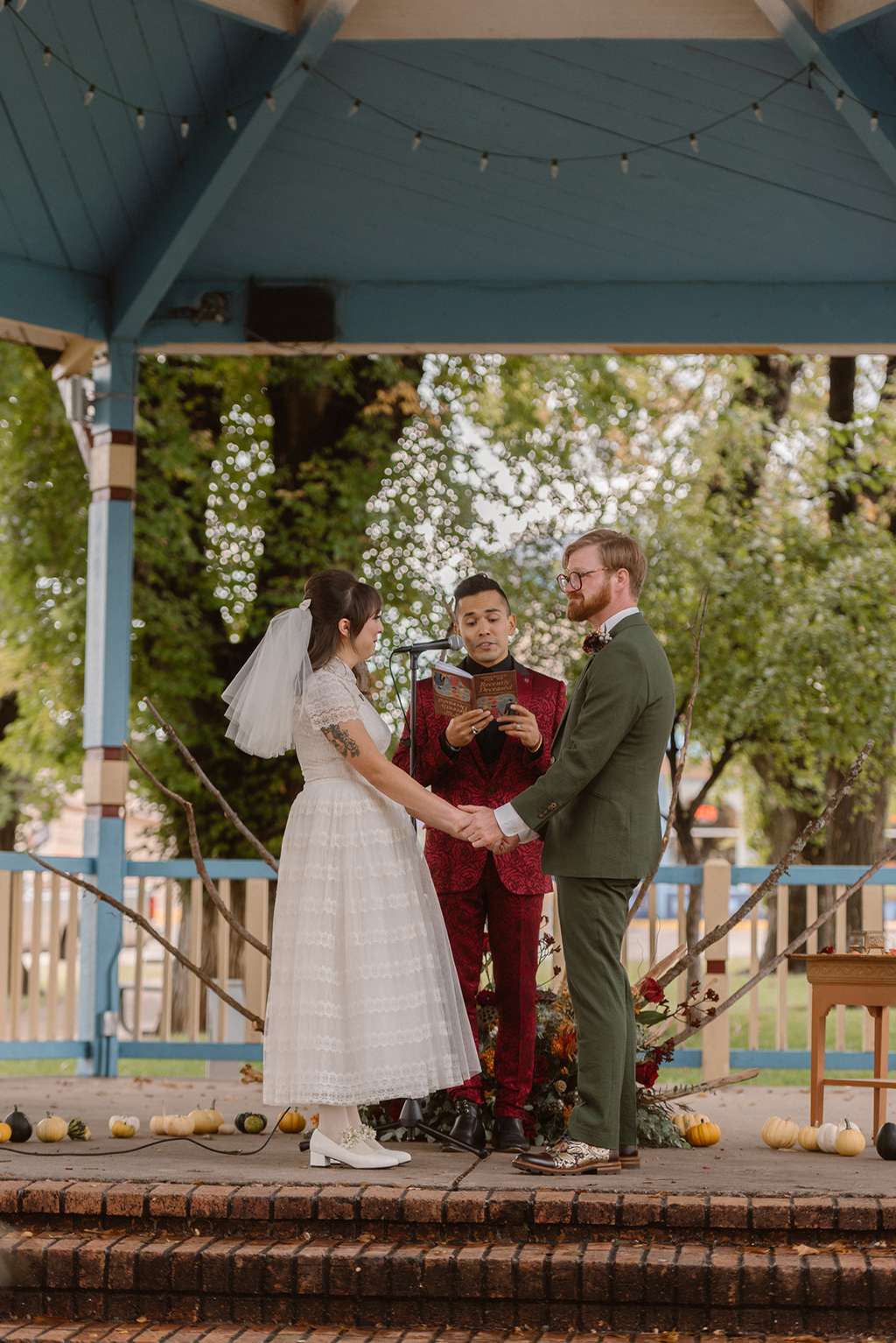 Their ceremony was magical and funny, and their favourite part of the day. “Our good friend Rudy married us and told a lovely fabricated tale about our family histories and how we met. Our vows included inside jokes and heartfelt promises. We played the Over the Garden Wall Soundtrack, the Jurassic Park Soundtrack, and The Rainbow Connection by Kermit the Frog.”