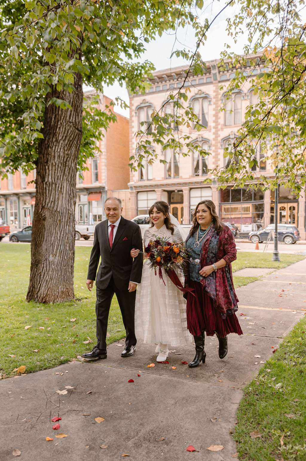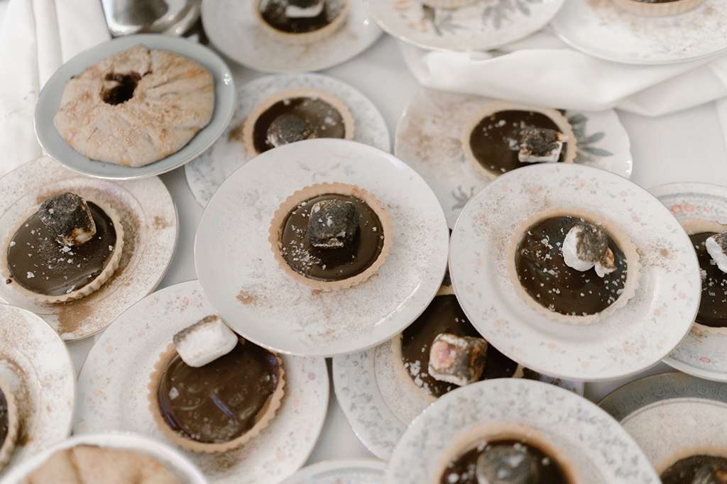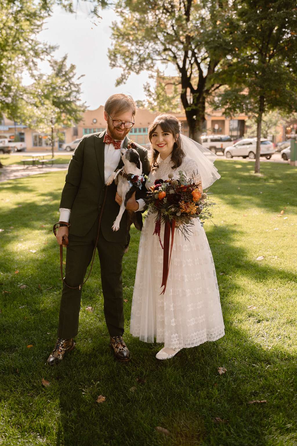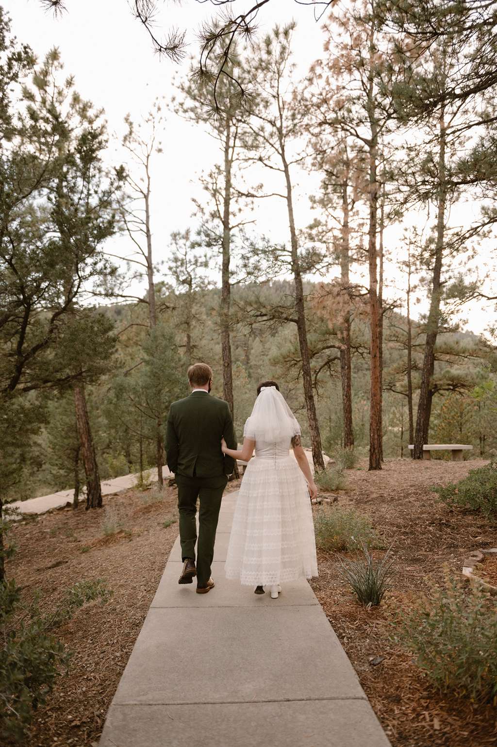 The biggest expense was their catering, a custom vegetarian meal made by a farm-to-table restaurant. They paid particular attention to their cocktails too, designed by The Prarie Hill, too; the Mountain Wizard (a bourbon based drink) and the Grey Lady (a lavender gin-based drink Served in a tea cup). They saved money by not having a wedding party, and had a small wedding cake for the two of them had less expensive pies for their guests. Also, Alix’s dress cost just $250 from Etsy!