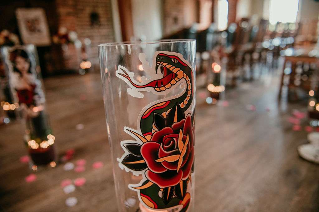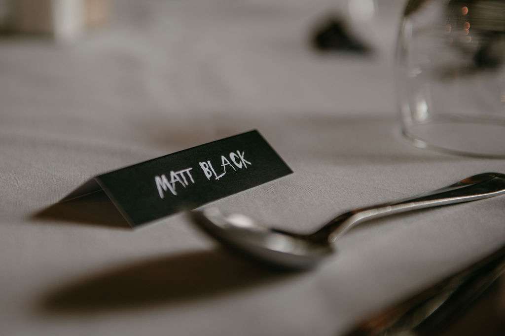 There was attention to detail at every corner, however Matt and Kirsty didn’t undertake a lot of DIY, instead relying on the creativity and talents of their friends and family to help bring their ideas to life. With the help of their graphic designer friend, they added their personalities to the day; all stationery and signage included Matt’s name in Slipknot’s font, his favourite band, and Kirsty’s in Motley Crue typography.