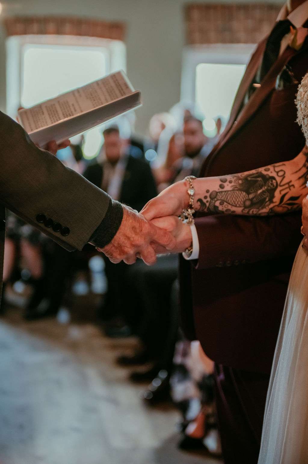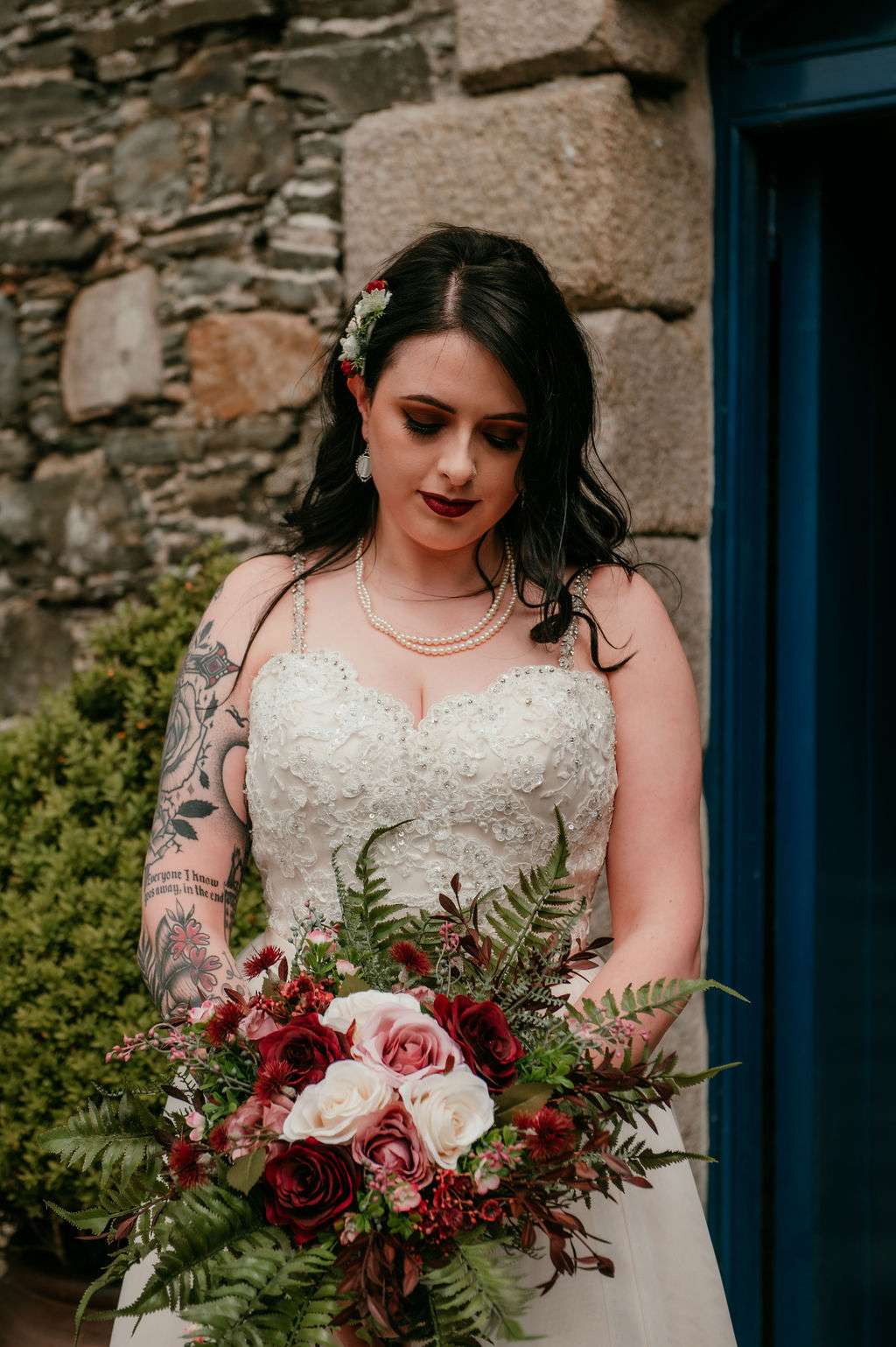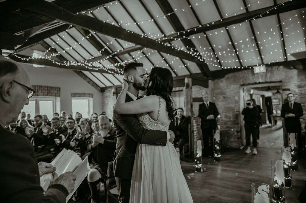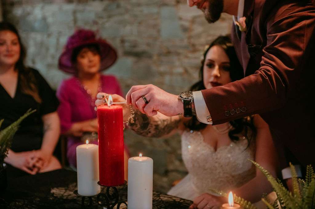 With over 100 guests in attendance, they chose a somewhat traditional service but still managed to add some personal touches. “Instead of the traditional flower girl, we instead asked Kirsty’s friend Donal to be our flower dude,” the couple told us. “He walked in sprinkling flower petals to The Darkness’I Believe in a Thing Called Love and really got the crowd laughing. The bridesmaids walked into Metallica’s Ecstasy of Gold, Kirsty followed them with Landslide by Fleetwood Mac. After our somewhat traditional service, we walked out to David Bowie’s Heroes.”