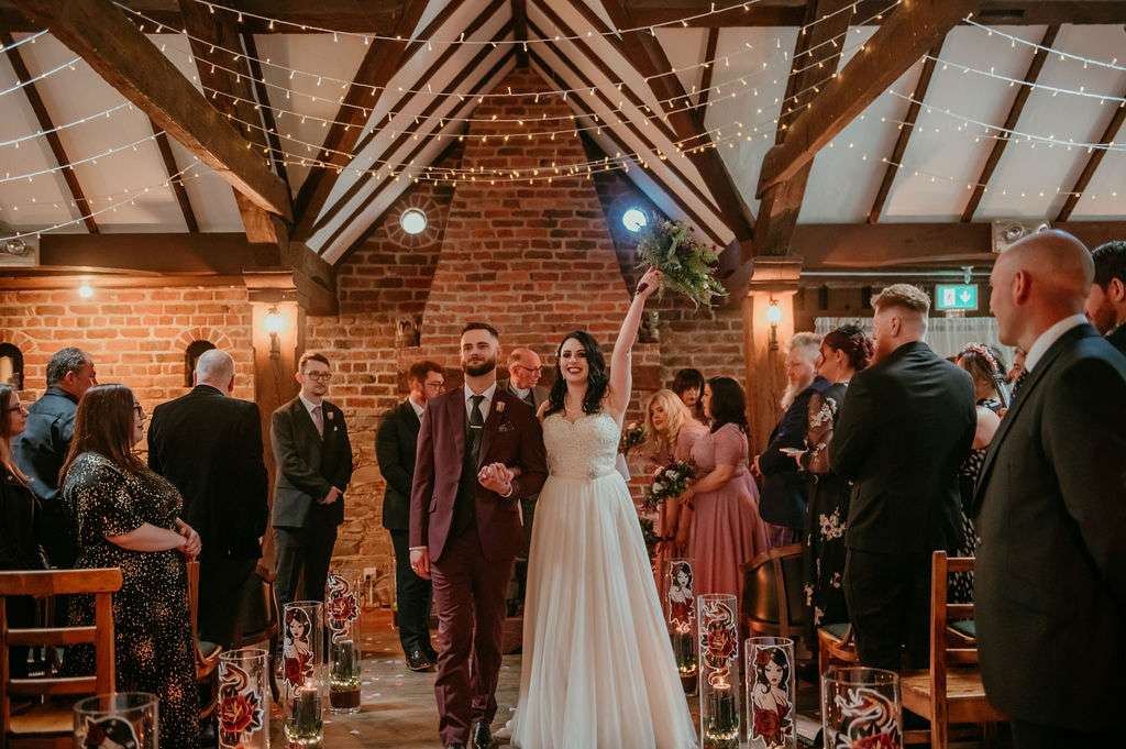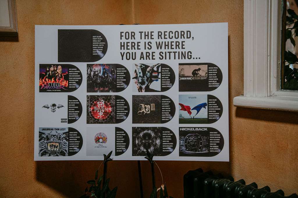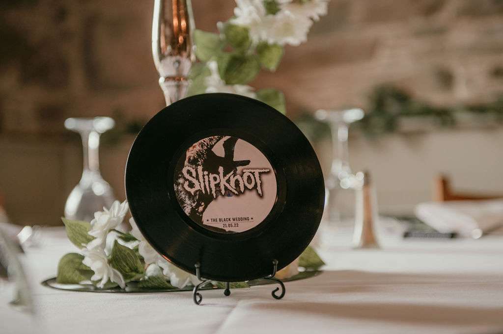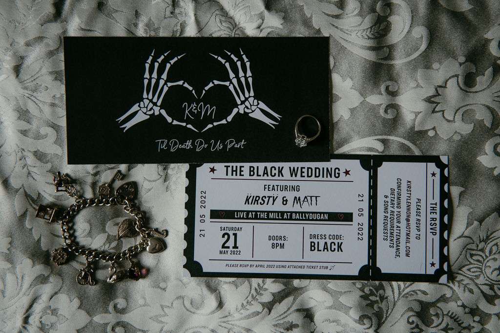Matt and Kirsty used Metallica’s The Black Album, and their wider shared love of alternative music, as a rough inspiration for their May wedding day. They named their reception tables after their favourite bands, sent out gig-ticket style invitations and even both changed their surname to Black!