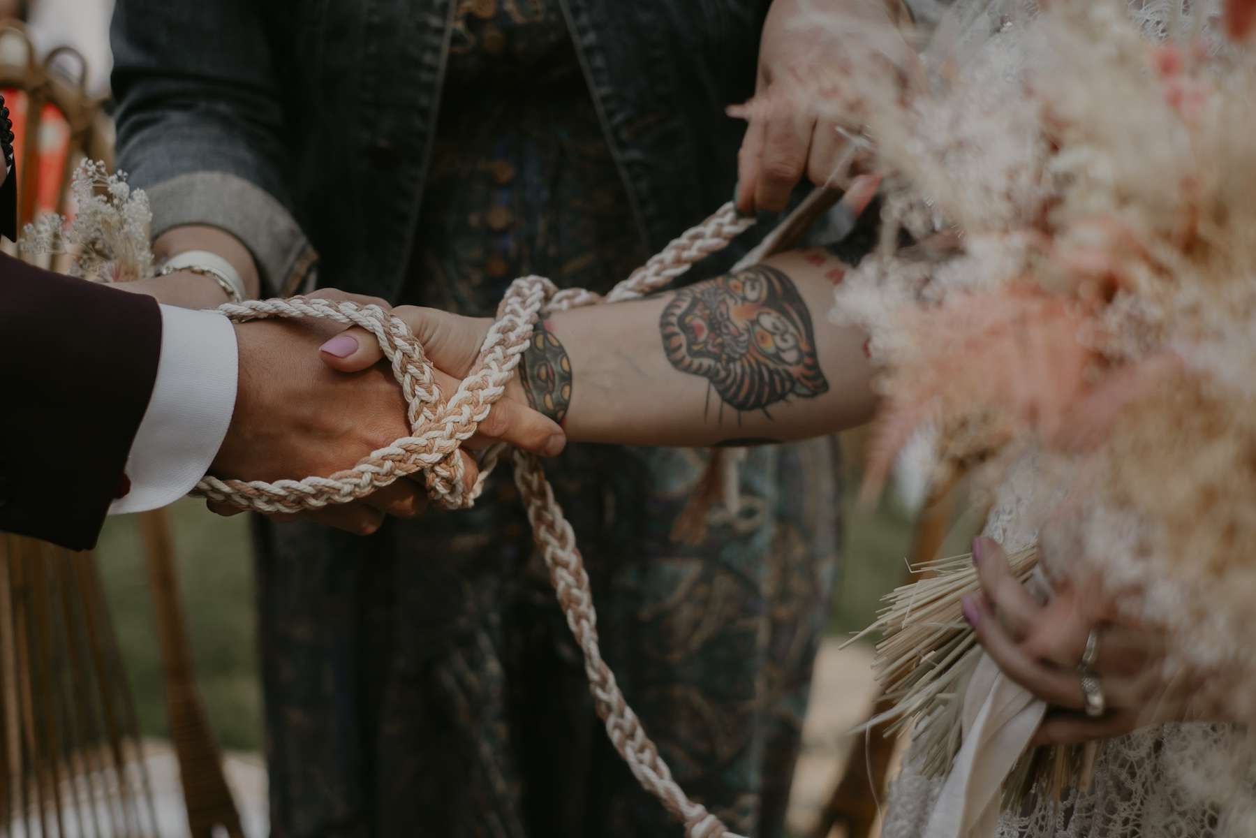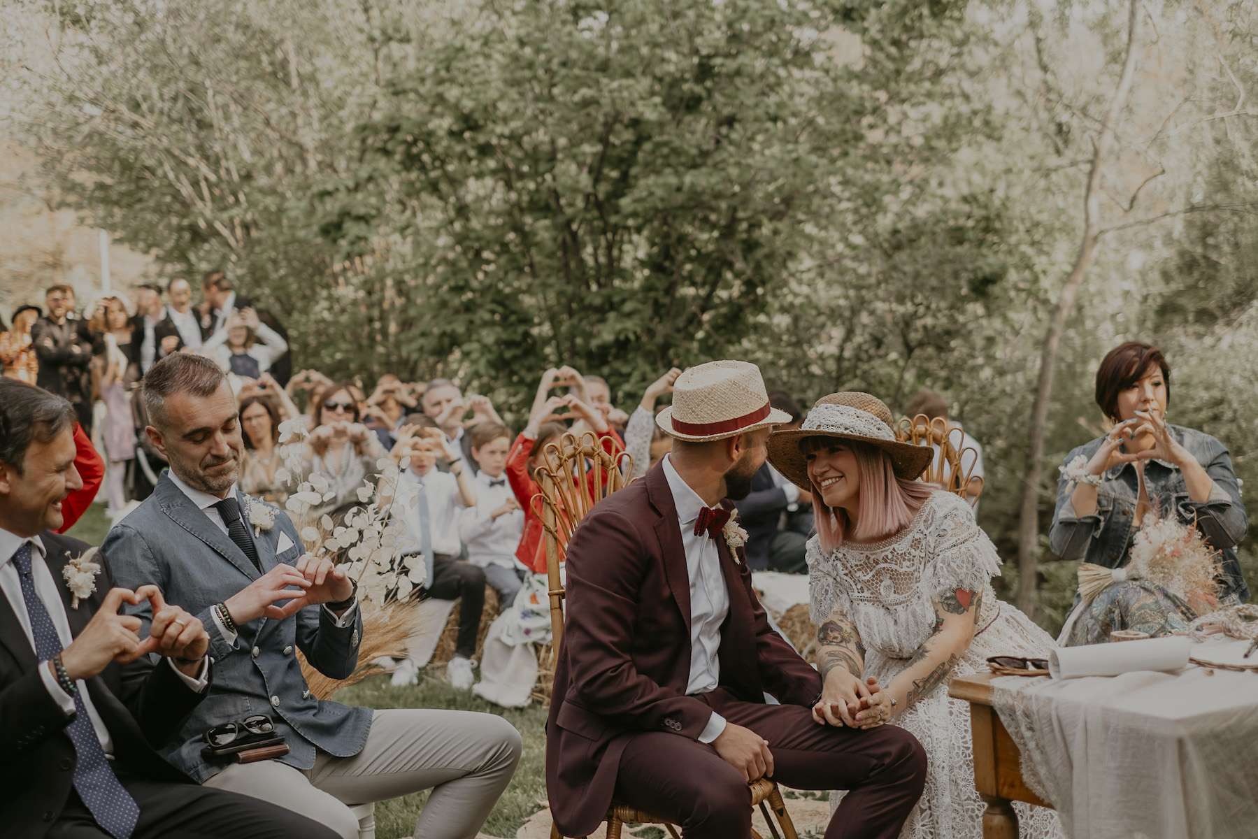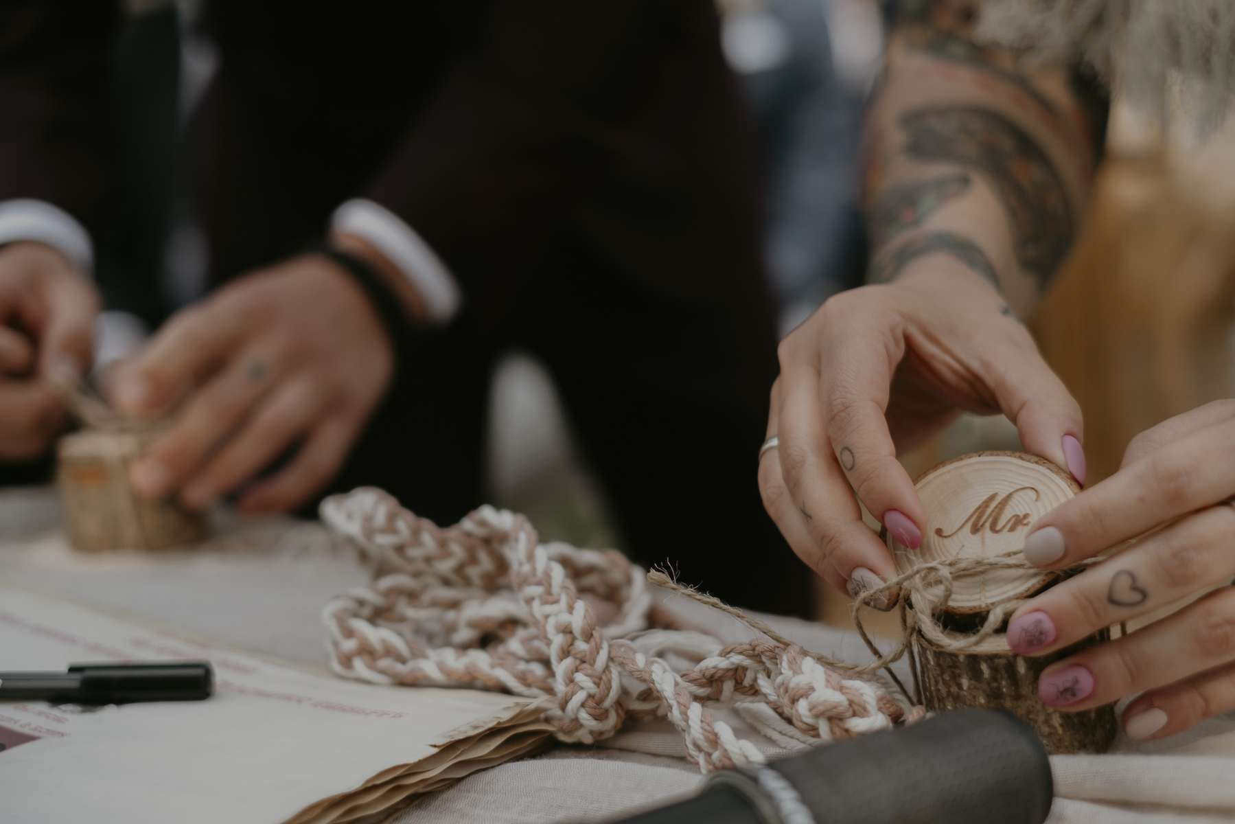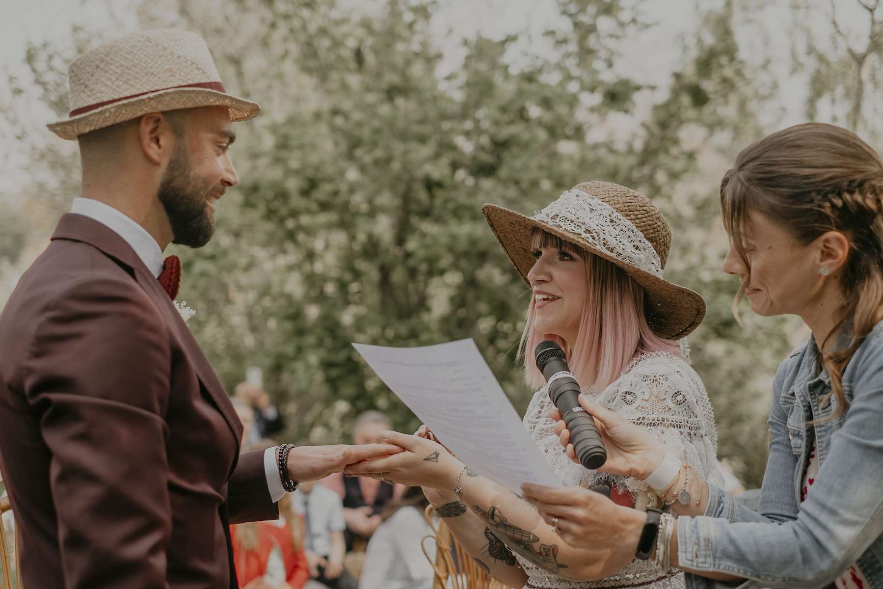 With a glorious day for an outdoor wedding, the couple married under the trees, with each choosing a different route for their vows. Caterina explained, “Ronny had written some very emotional vows which he read to me. However, I improvised, letting myself be carried away by emotions.” They chose their favourite music for each element of their ceremony, with a saxophone version of L’amour Toujours by Gigi D’Agostino for the entrance of the bride, and Sweet Child O’ Mine by Guns and Roses for the ring exchange.