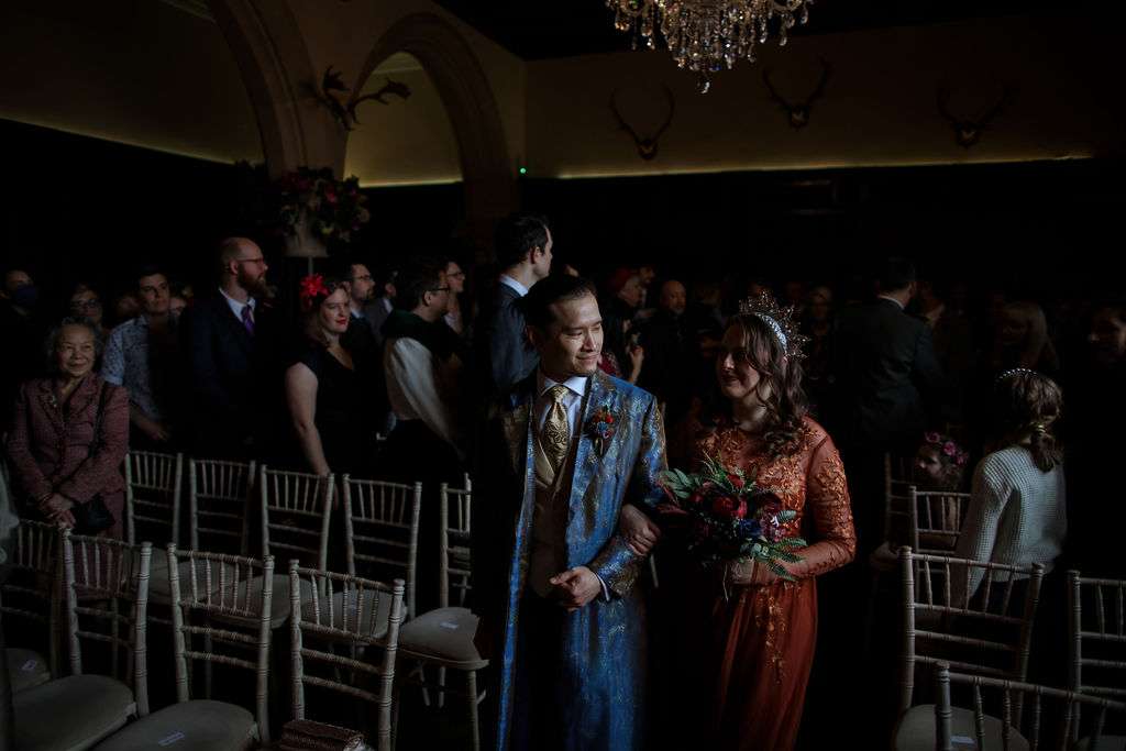 After the ceremony they had a Chinese tea ceremony, the meal and then a really unique and totally ‘them’ first dance. “Our first dance was on arcade dance pads to one of our favourite songs, Lone Digger by Caravan Palace, with a slideshow of photos together being projected on the big screen!” Chiok explained. “It was a pleasant surprise for our guests. We managed a costume change for the evening entertainment with Steph donning a tasteful 3-piece suit and I was able to activate the lights in my coat for some atmospheric twinkle as another hidden surprise whilst we danced through the night.”