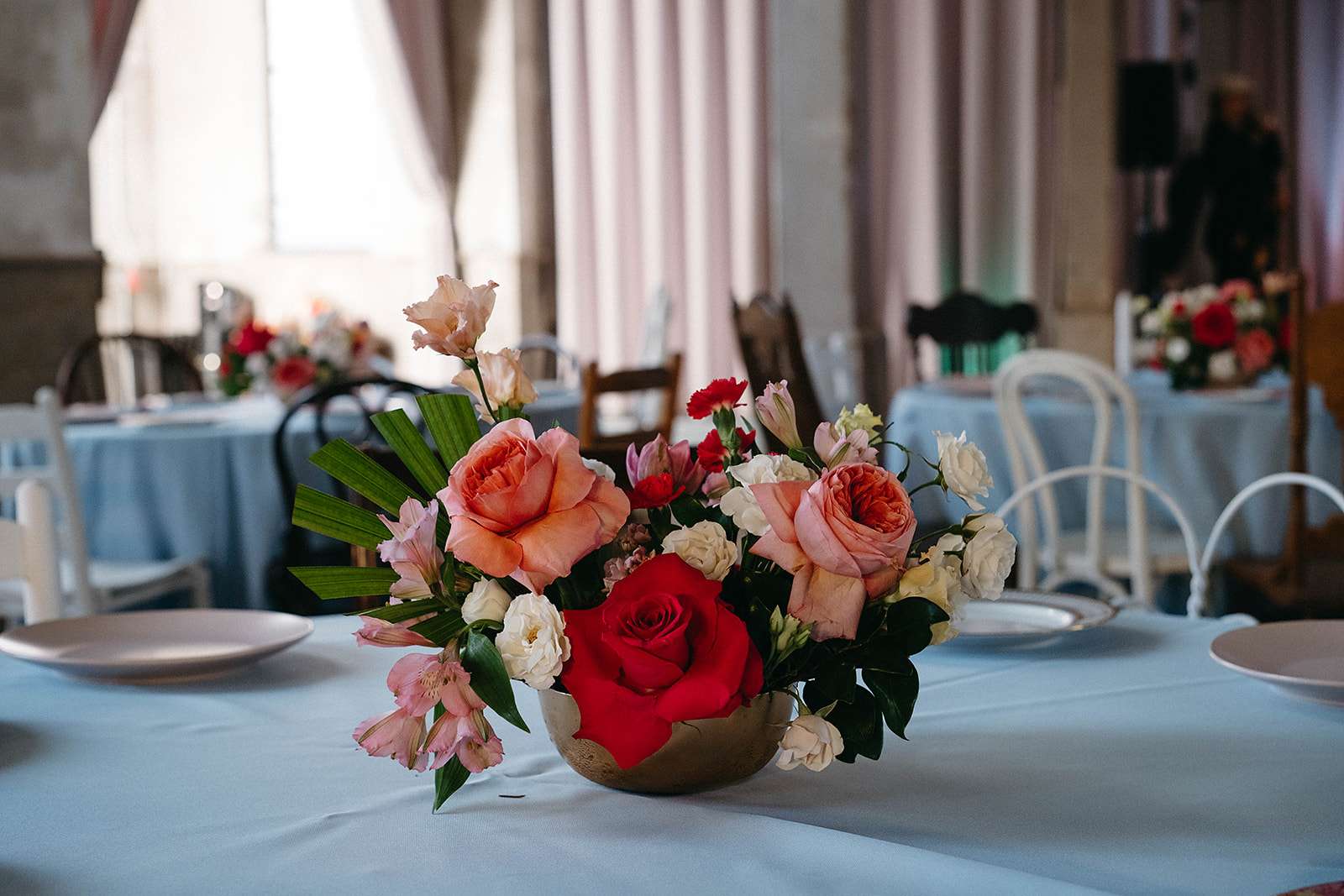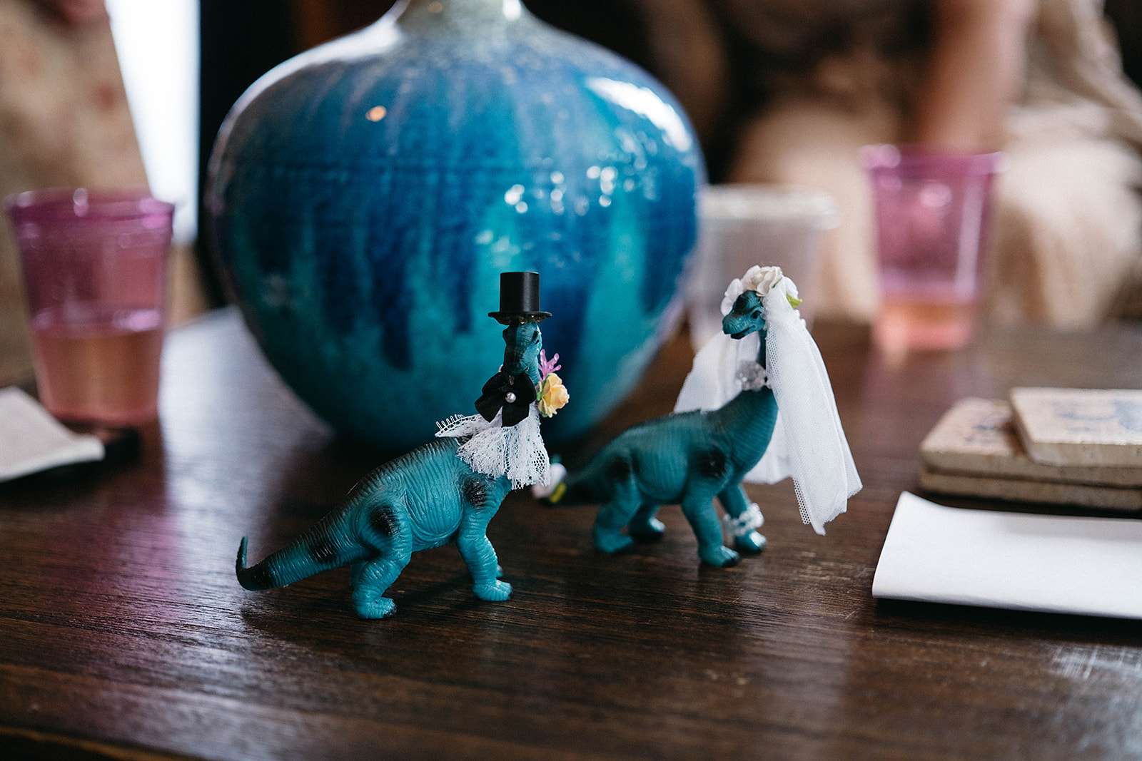 They were also inspired by the mismatched coloured goblets and décor at the Madonna Inn in San Luis Obispo. “We visited the hotel last year and it reminded me that I wanted to have a lot of very bright pink in our wedding”, the bride said. “Life is short, it’s better to have lots of colour!”