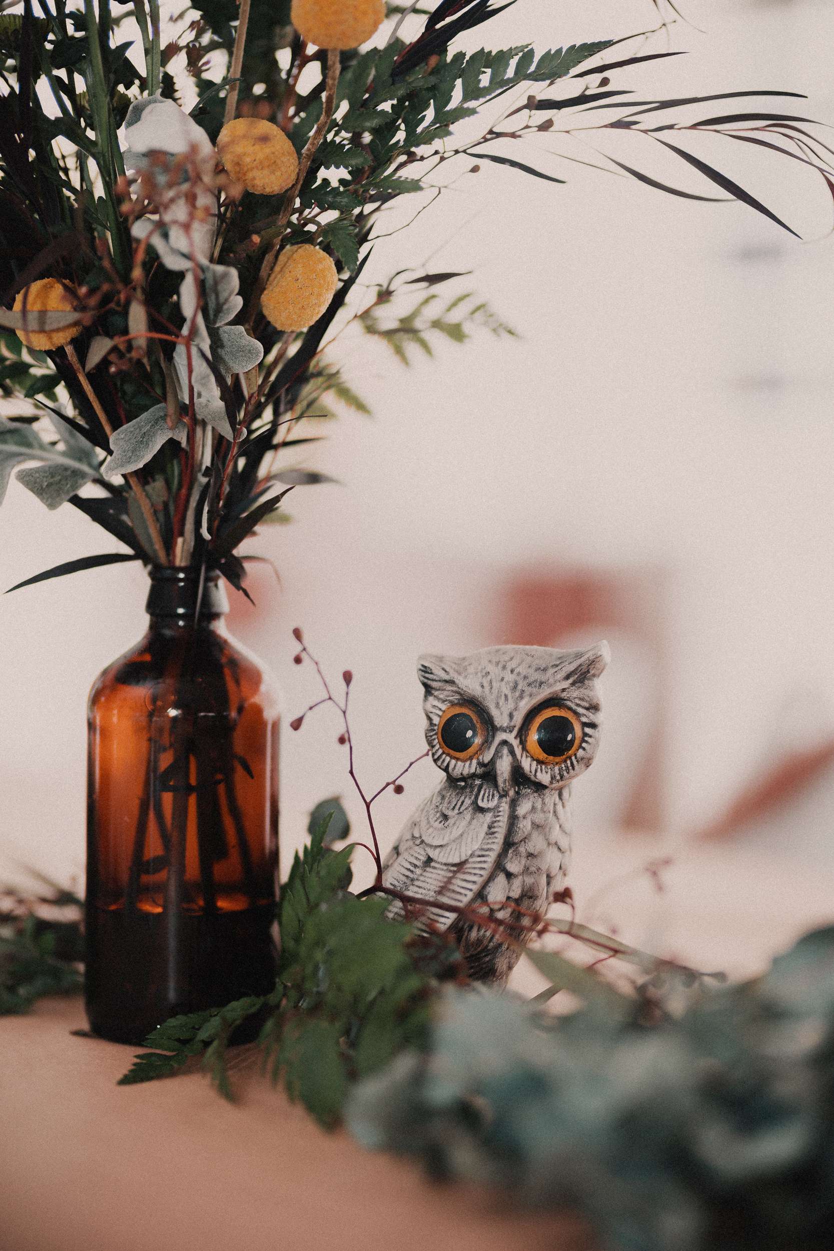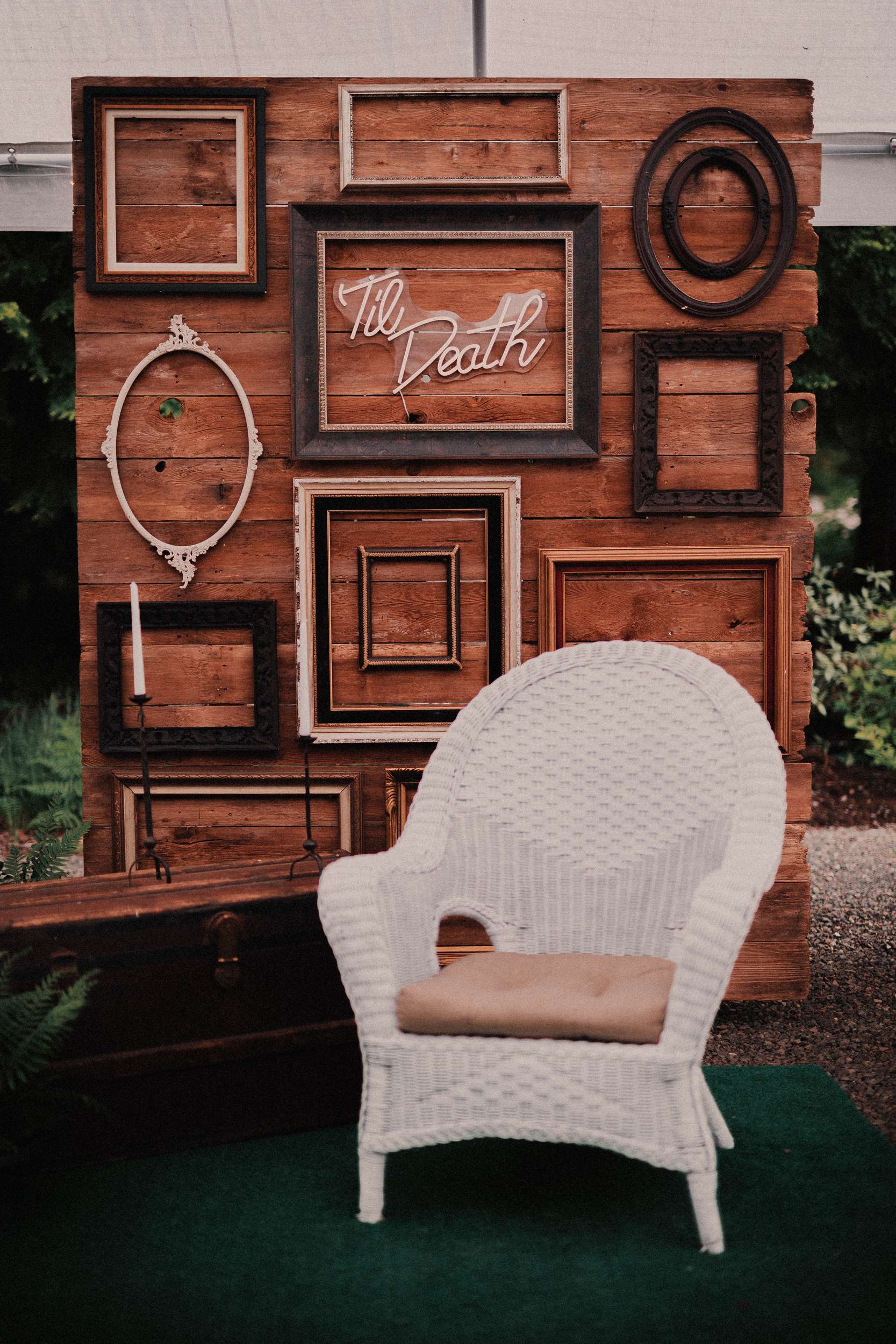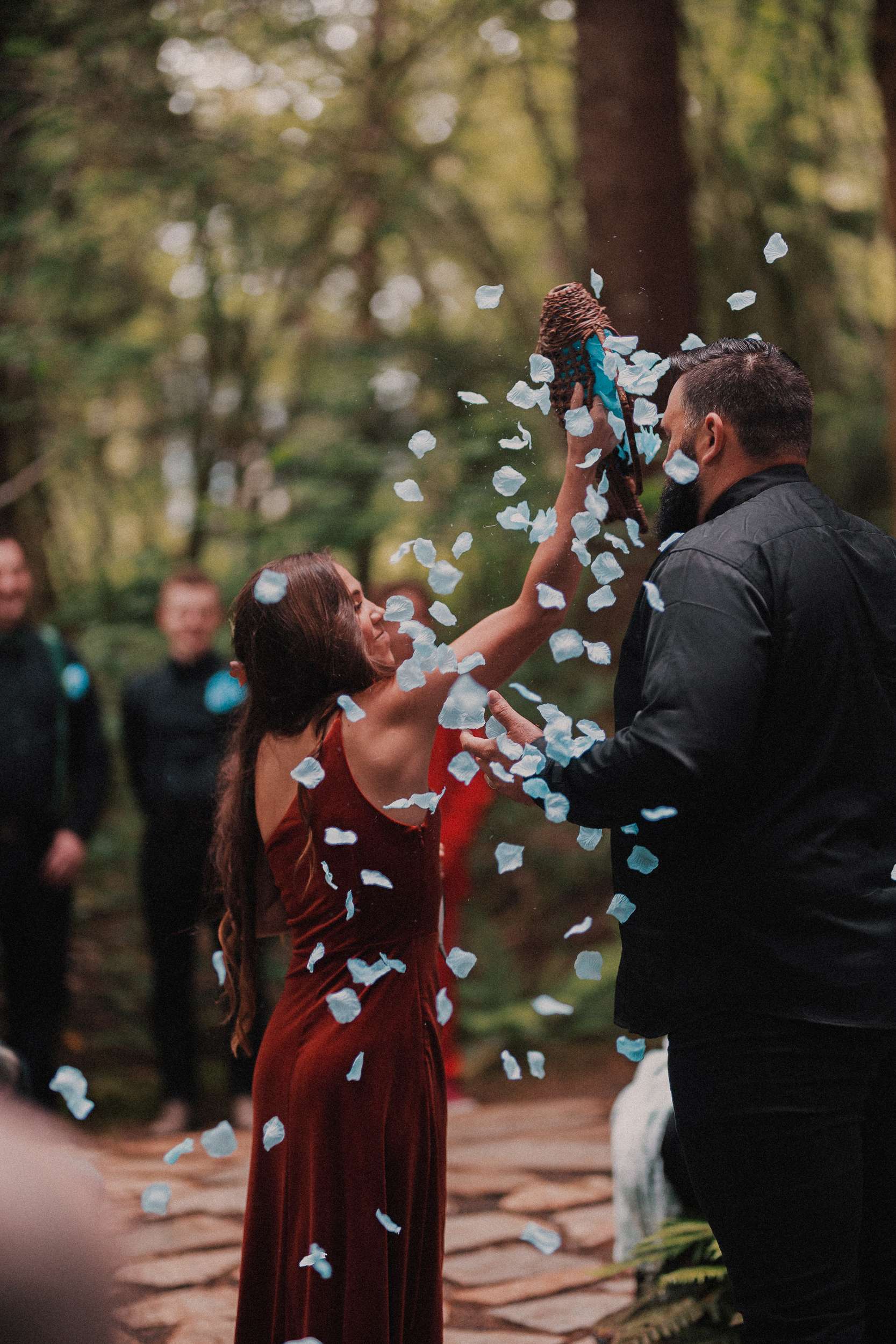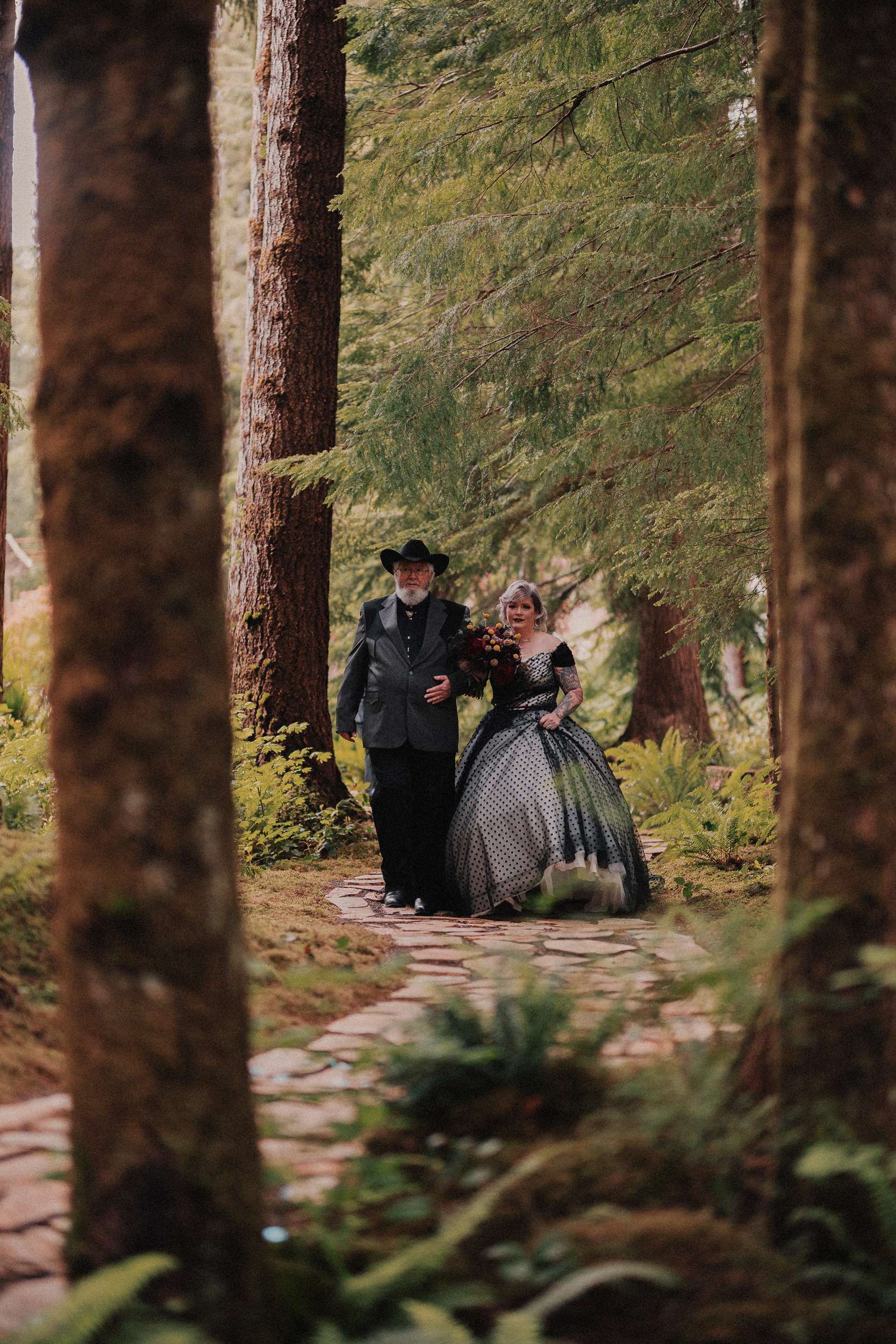 Although Dean and Jason chose Forks, WA, as their wedding location, their style was definitely more Twins Peaks than Twilight. They curated a wedding inspired by the tv show including a lot of owls, a missing poster sign and even had a bridesmaid carrying a wooden log.