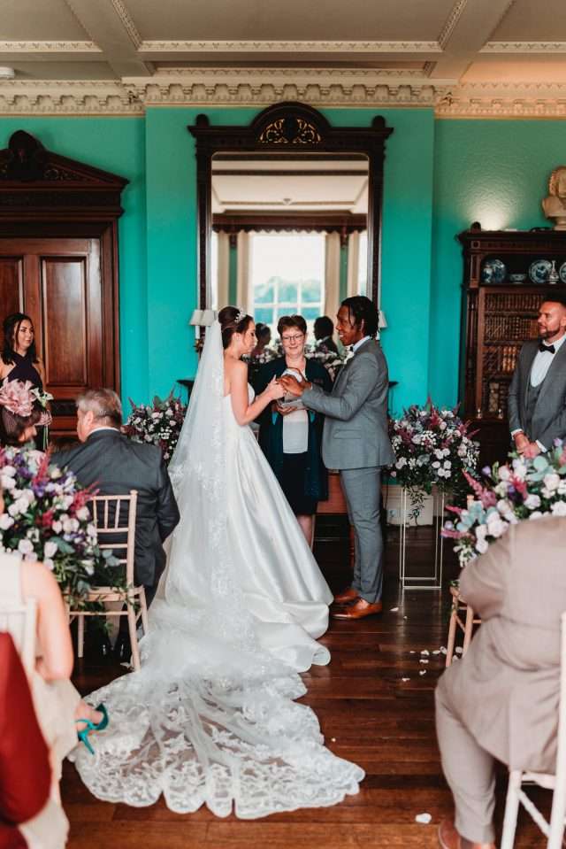The bride walked down the aisle with her a dad, accompanied by string trio who also played throughout the ceremony. “This added to the royal feeling”, said Sammy. “We also wrote our own vows. It turned out to be a very emotional day full of tears.” At the end of the ceremony they jumped the broom, as a nod to Jay’s ancestor’s tradition.