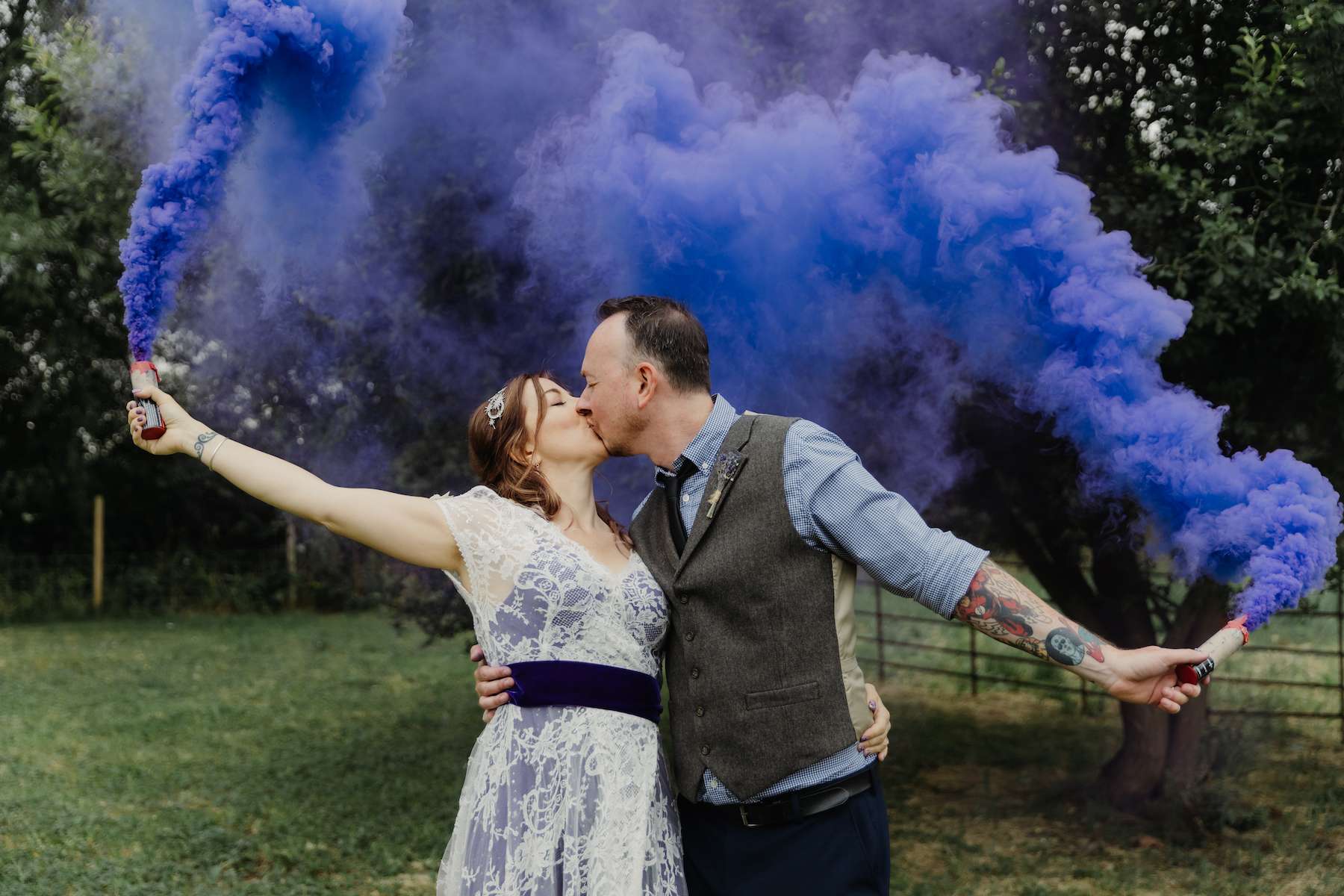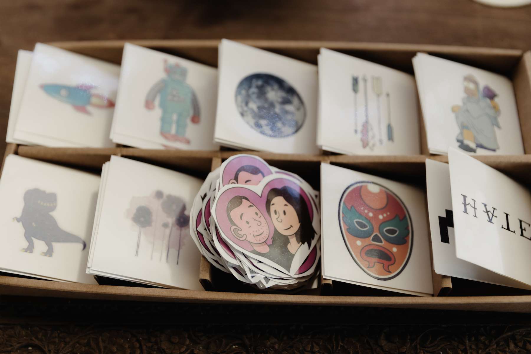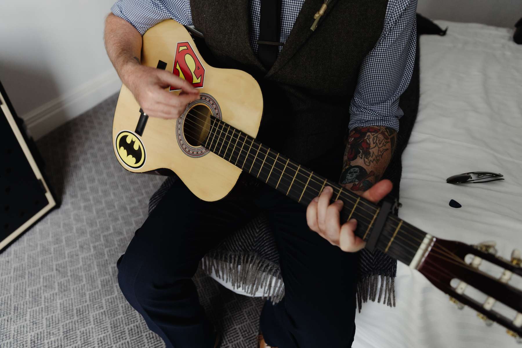 Mixing their passions of vintage and celestial with comics and DC characters, Maud and Ian filled their day with an eclectic mix of the things they love. With their own tattoos providing the inspiration, they made sure to create temporary tattoos to match the theme, so their guests could enjoy them as well.