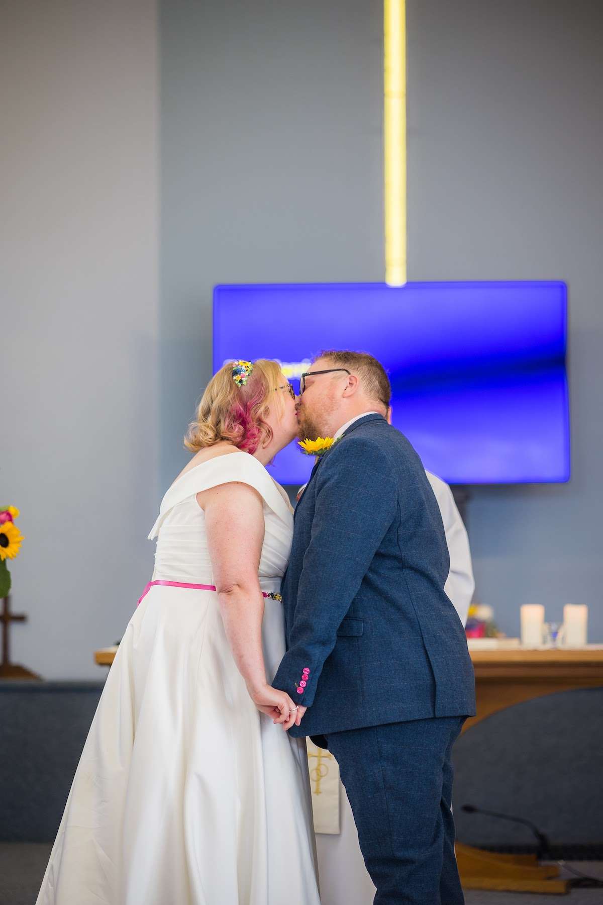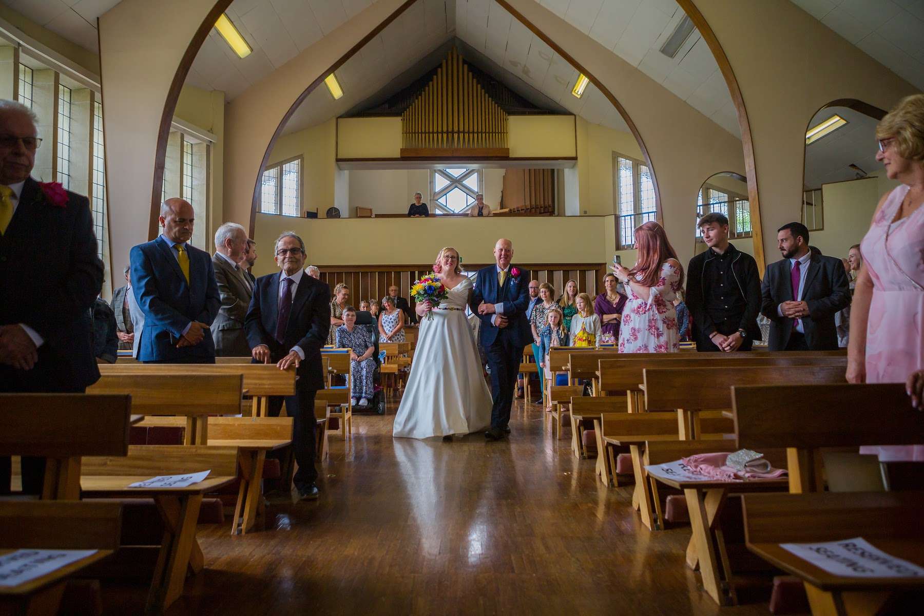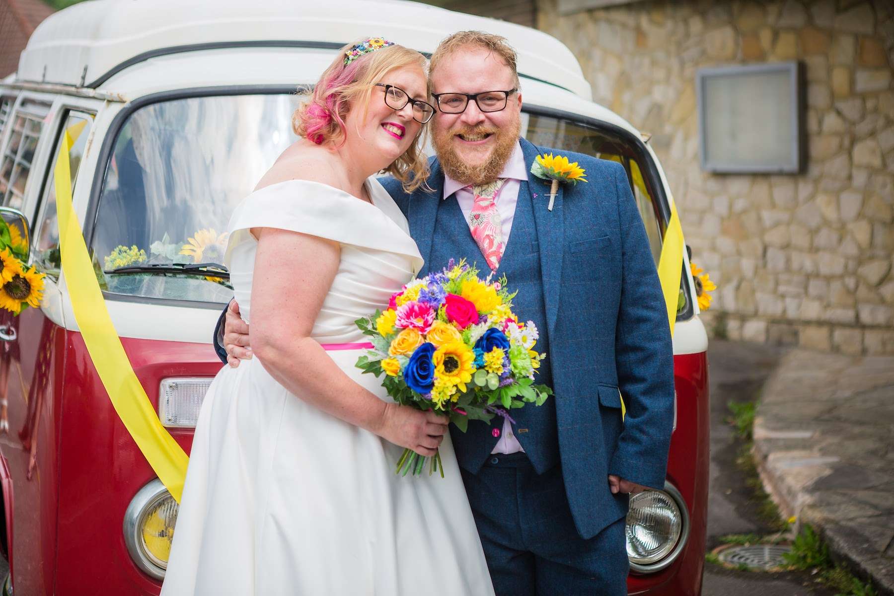 Wanting a traditional wedding with a twist of ‘them’, Kat and Lewis had ALL the colour for their big day. They kept their wedding budget low, did almost everything themselves and chose their own church and church hall as their venue.