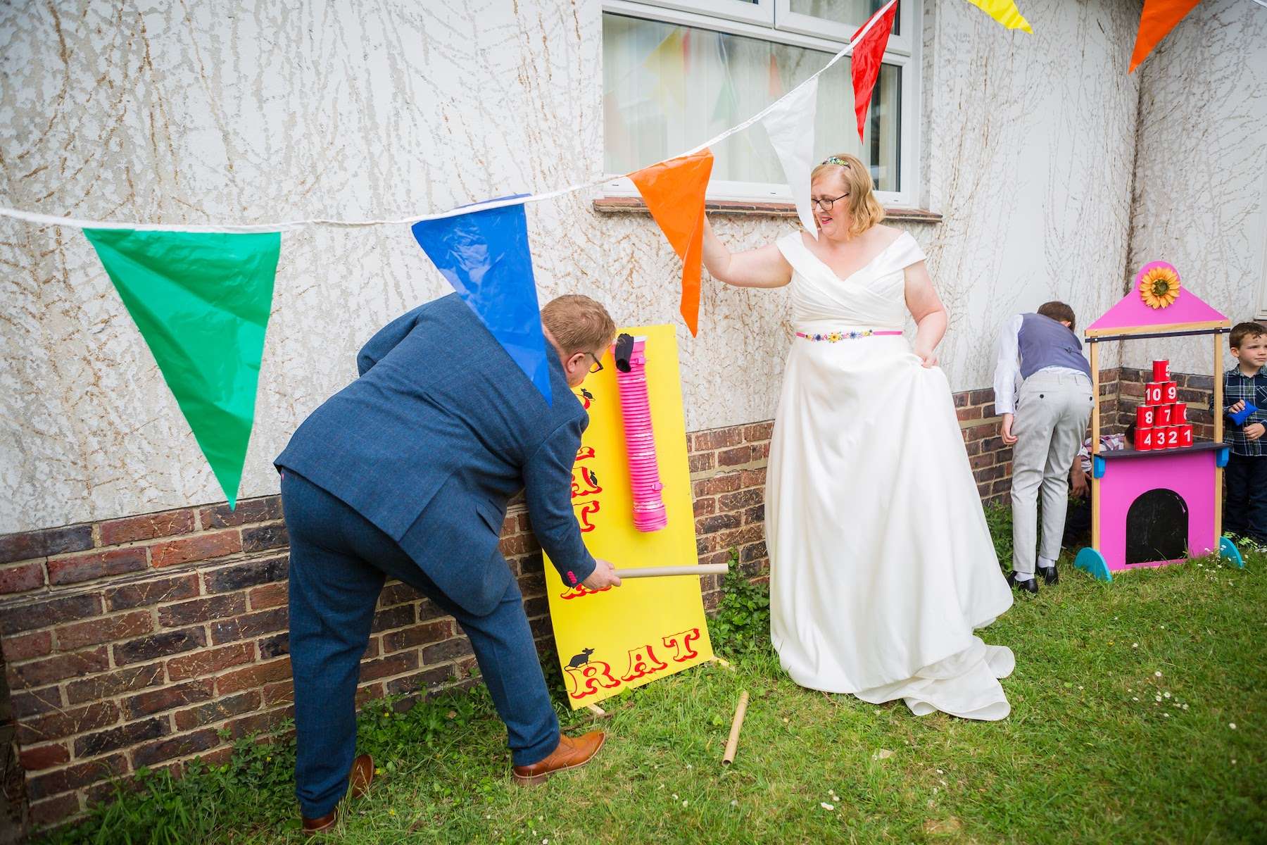 With a tight budget, the couple DIY-ed their socks off to transform the hall, creating a gorgeous summer fete vibe, with bunting, ribbons and masses of colour. They created classic fayre games such as splat the rat and hook a flamingo to provide entertainment. Of course, no fete would be complete without an afternoon tea either (as well as arguing over which goes on first, cream or jam!)
