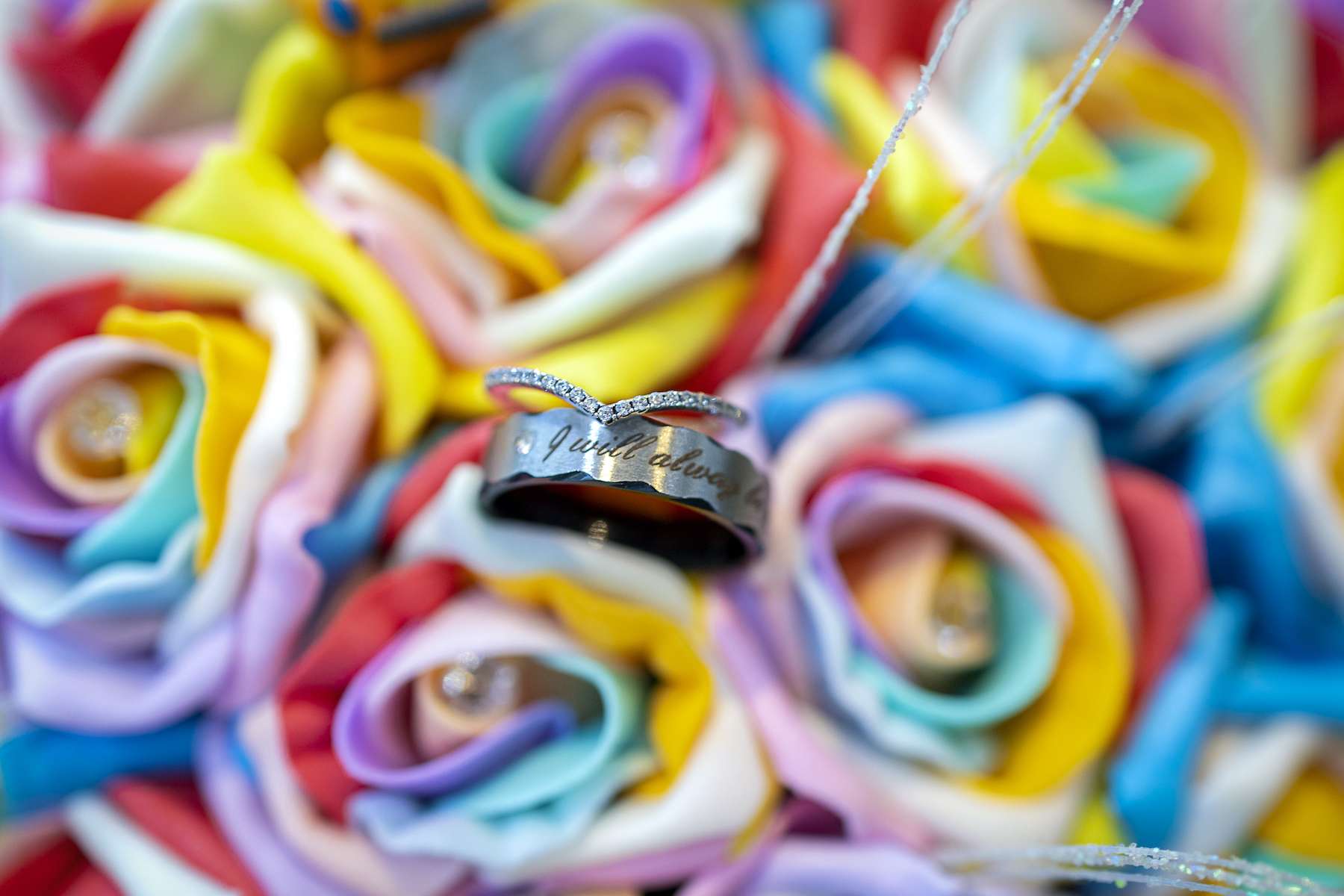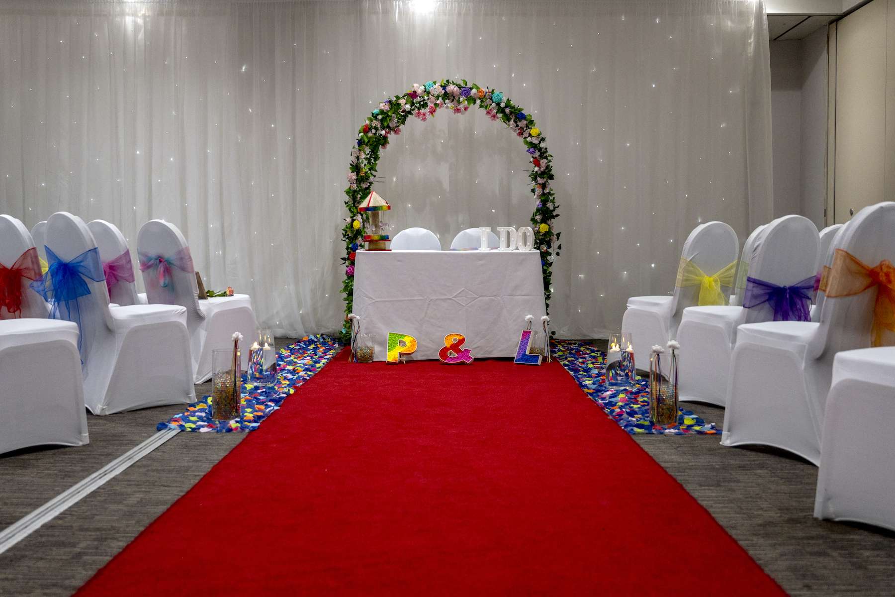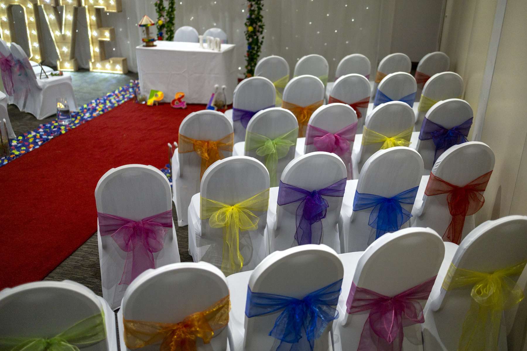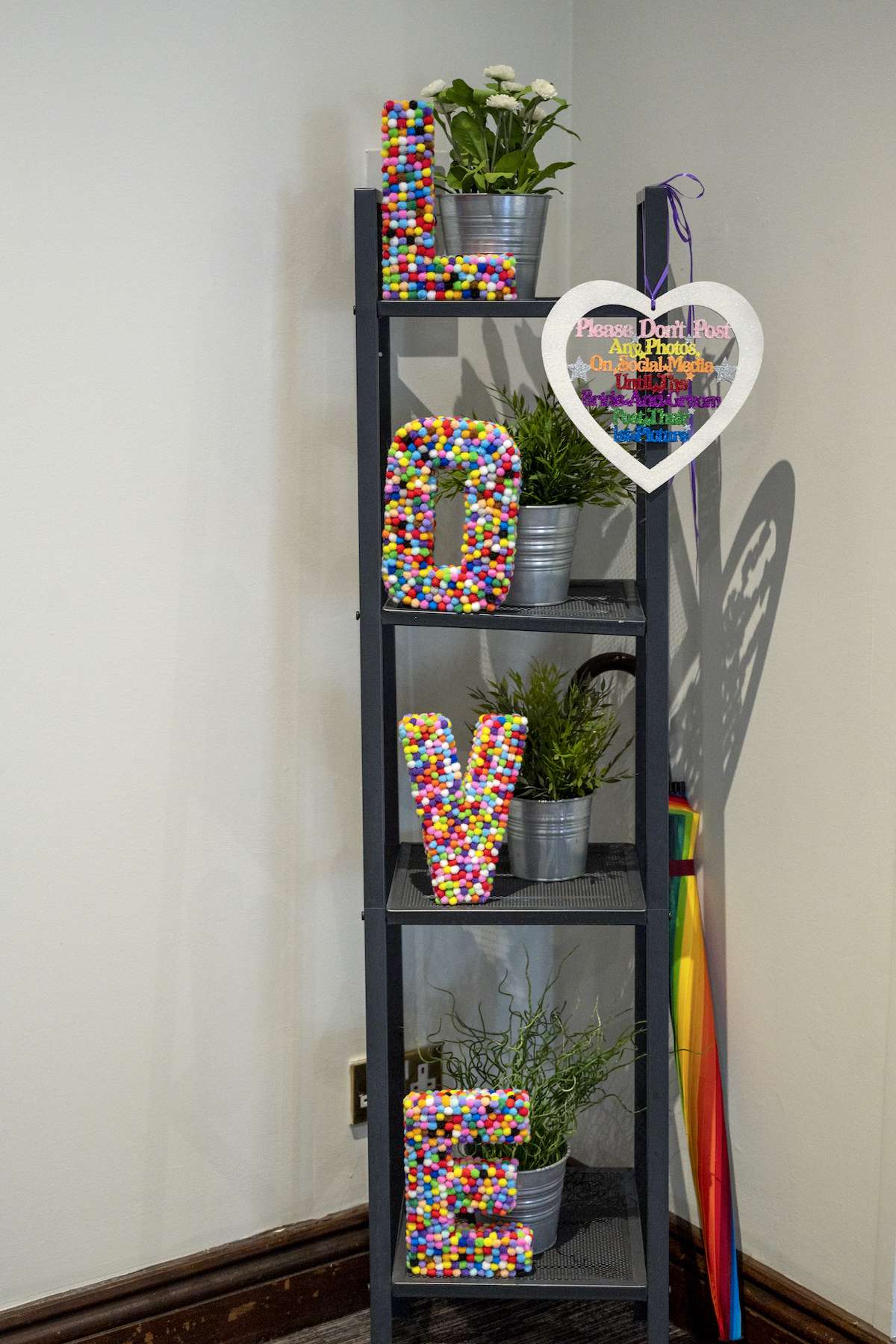 With an unusual theme, it was impossible to get any appropriate decorations, so the couple had to DIY it all! IKEA eBay and AliExpress became their best friends as they sourced items for their unique theme. They created a photocard game for the tables, hand painted all the signs are made the centrepieces and flower arch that stood behind the alter. The tables were named with both a colour and an anime, with a centrepiece to match, along with a table runner and chair bows.