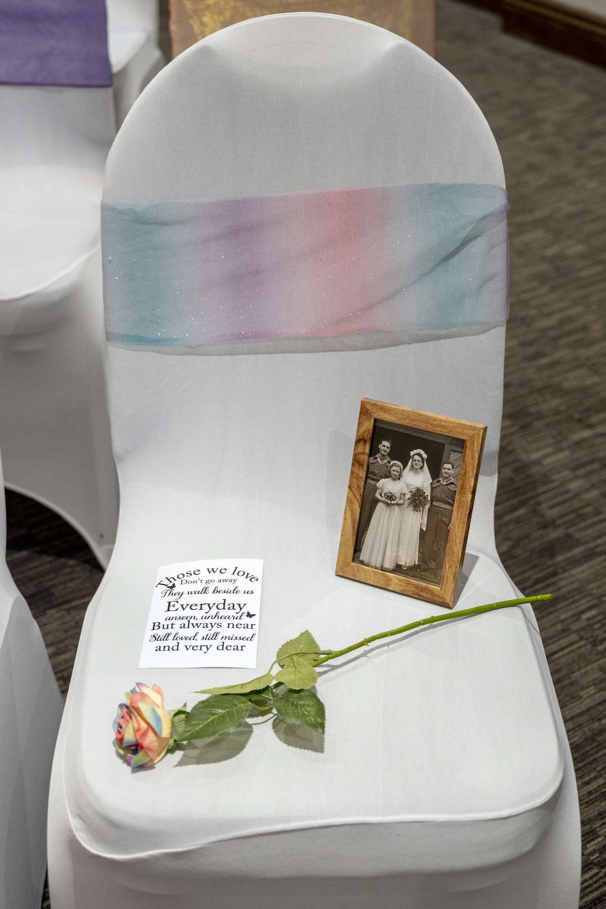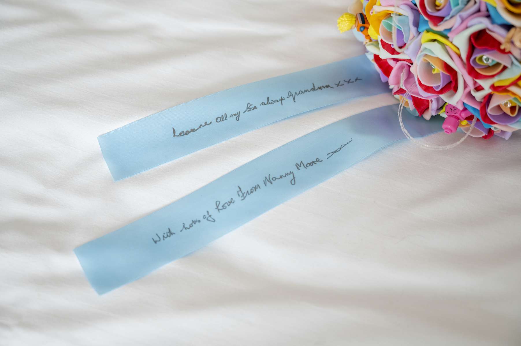 The first time they’d all been together in two years, the day was extra special as it had been postponed over the pandemic. Leanne lost her Nan and Grandma between their original date and the ‘rematch’, so they had memory chairs at the ceremony and a ribbon tied around her bouquet with their handwritten messages on. She told us, “We wanted to find a nice way of remembering them without it being too intrusive.”
