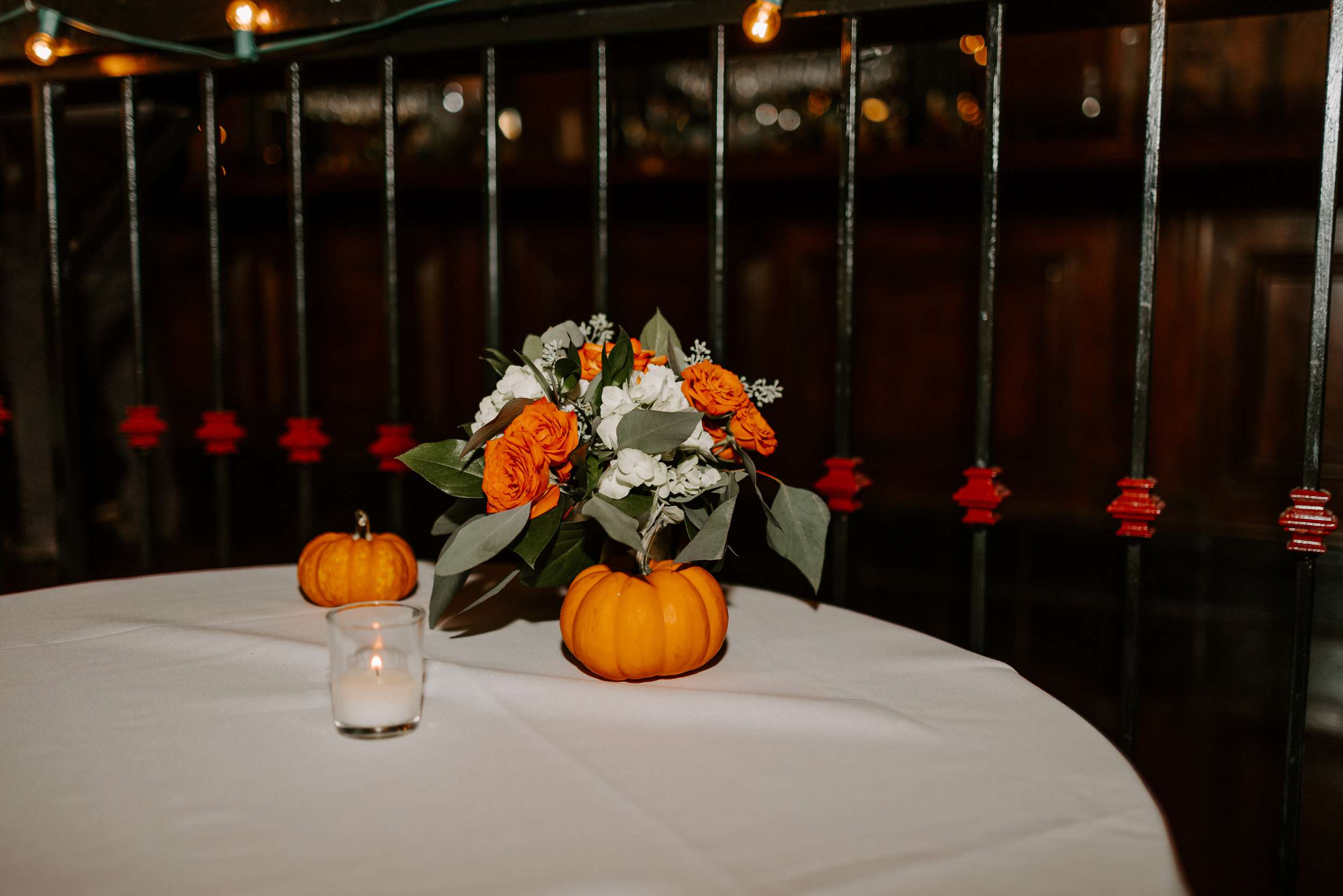 After the ceremony and photos on the grounds of Graceland, they headed to Balinese Ballroom for the reception. For DIY projects, the couple purchased 35 pumpkins from a local pumpkin patch to use as centrepieces. “The best part of planning our wedding was getting it over with!” Catarina admitted. “The worst thing was being alone to plan because of being long distance.”