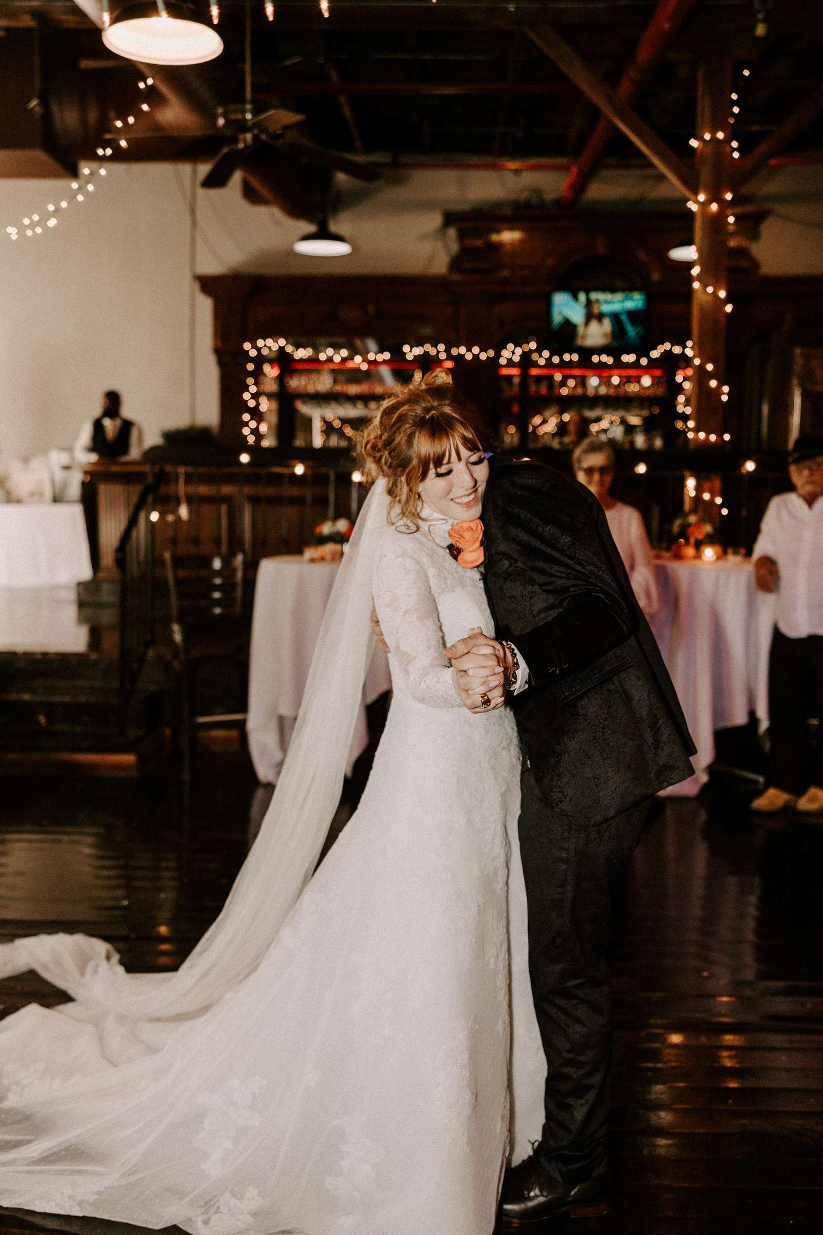 The ceremony was filled with Elvis music and the couple lit a unity candle, which although a nice touch, was not without mishap – the bride accidentally spilled wax all down herself! Despite the wax, she still felt beautiful in her Ieie Bridal gown.