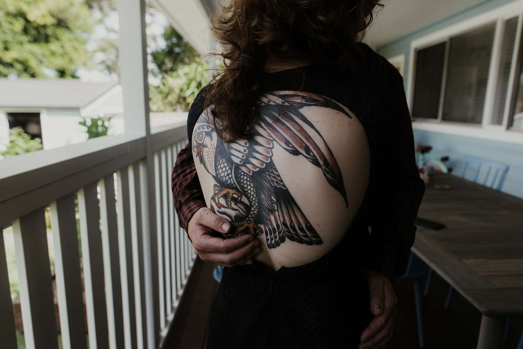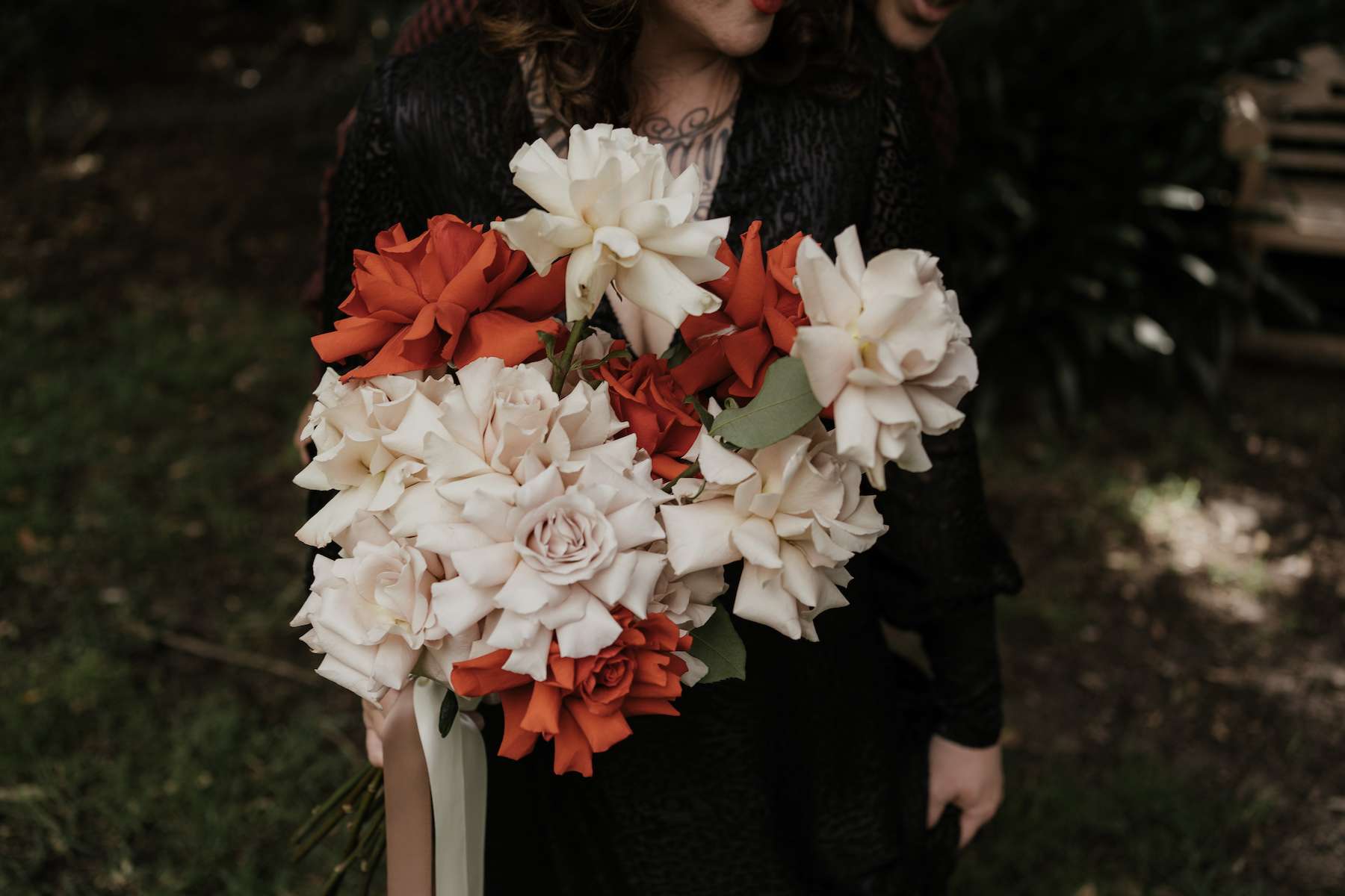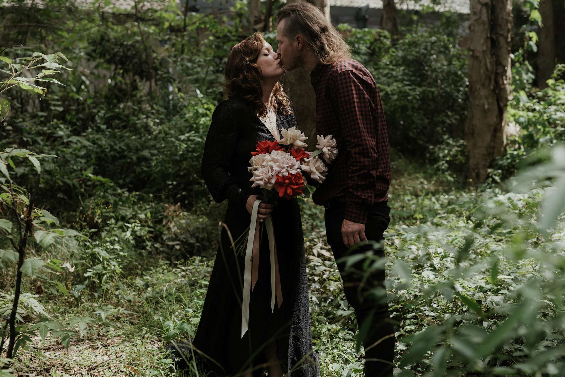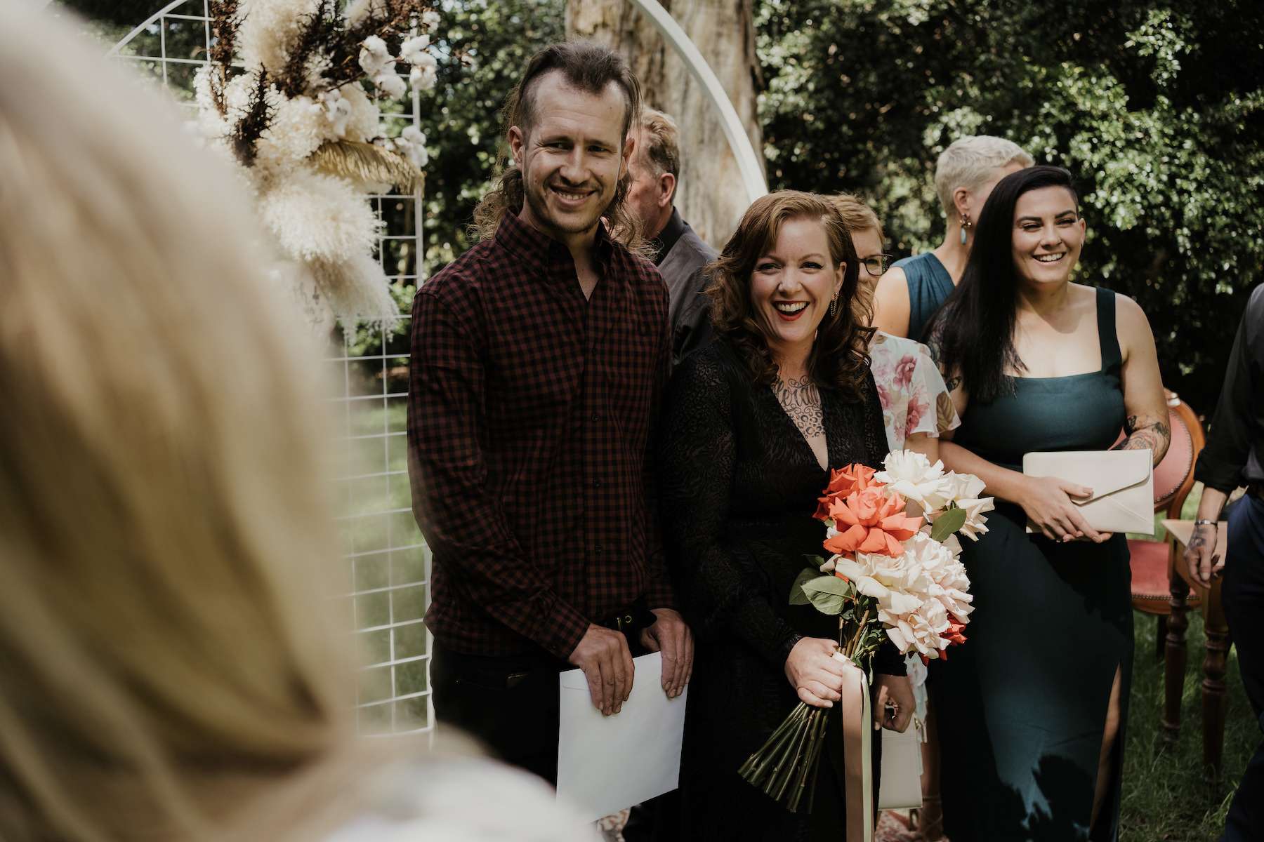 They created a short playlist of music they loved including Jenny Woo, Johnny Cash and Rancid. Following the ceremony there were lots of hugs, laughs, a few drinks and beautiful food with their 50 guests. Creating a relaxed, non-formal party was also important to them as it was their idea of a perfect celebration.