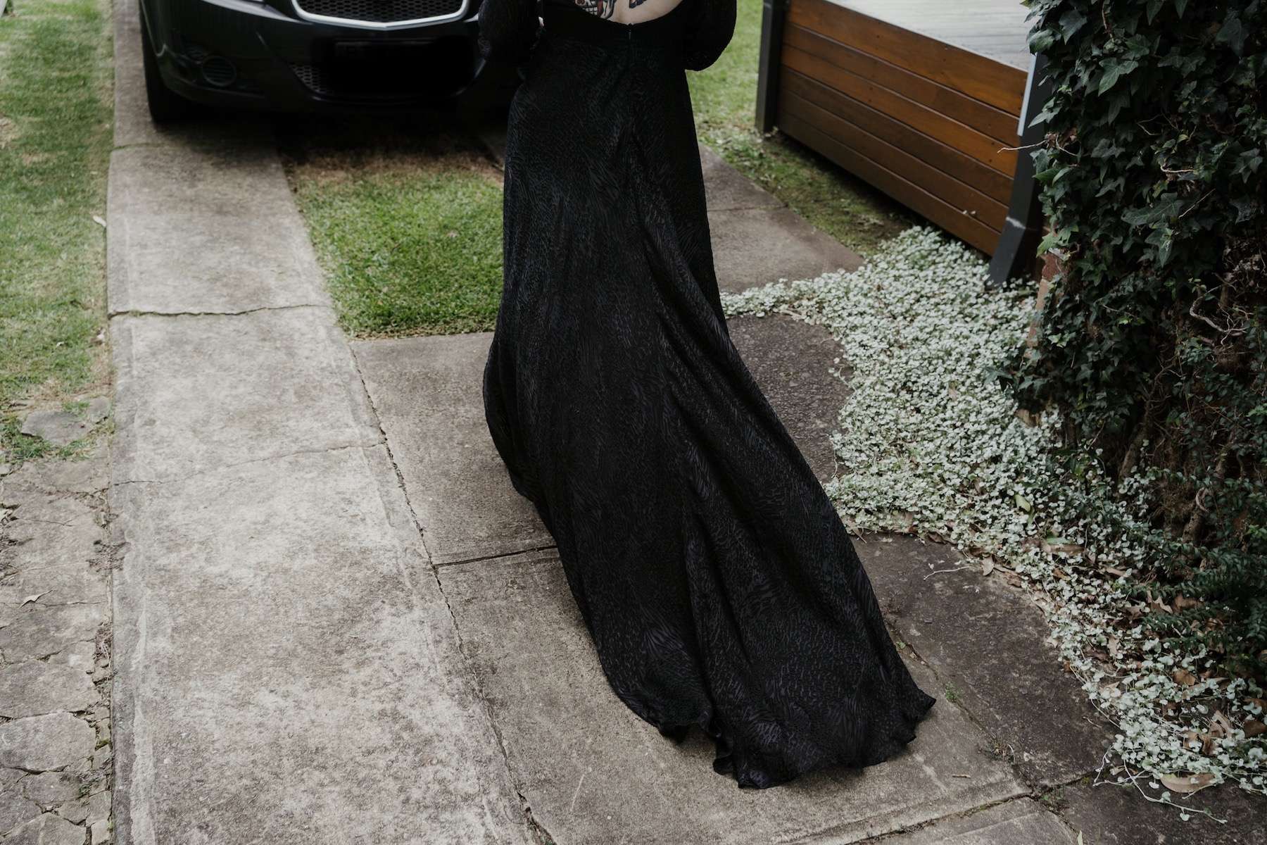 Fiona had never had a desire to wear a white wedding dress or walk down an aisle, so instead she chose a beautiful black gown and she arrived to the wedding with Paul, in her work van. When Paul mentioned he’d have to get a suit for the day, they both questioned why, as he’s not a suit-wearing guy, so he chose an outfit that he loved and felt comfortable in, too.