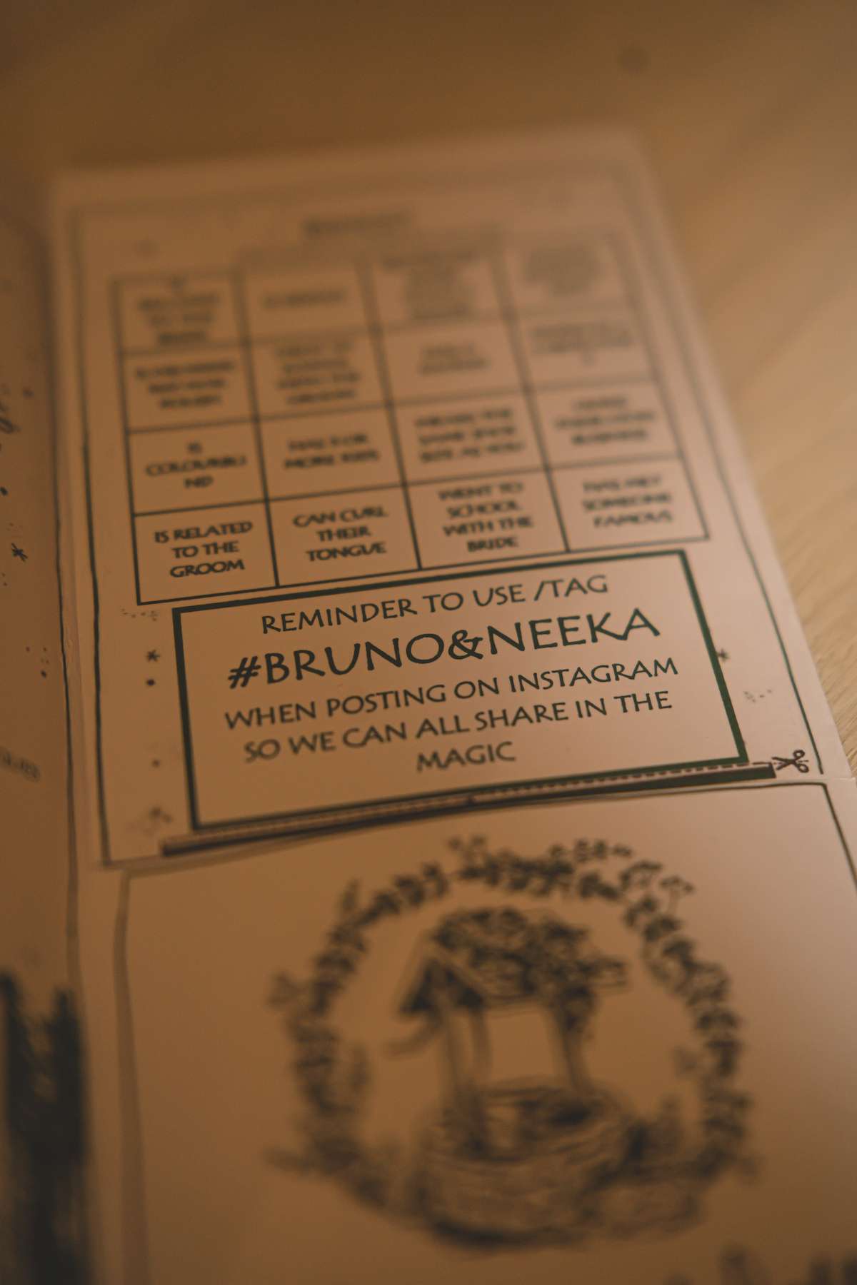 Bringing two groups of family and friends together, Neeka created a ‘Wedding Guest Guide Book’, including the itinerary, a ‘who’s who’ of the wedding party, activities that served as ice breakers and puzzles to keep people entertained. She also created all the wedding stationery, menus and seating chart, and her mum made the bouquets and boutonnieres. Neeka’s mum also found herself up at 3am the morning of the wedding, making a last minute veil!