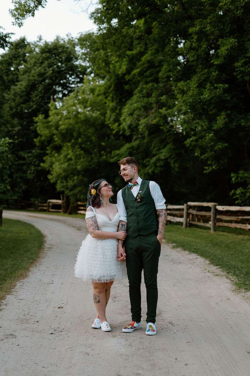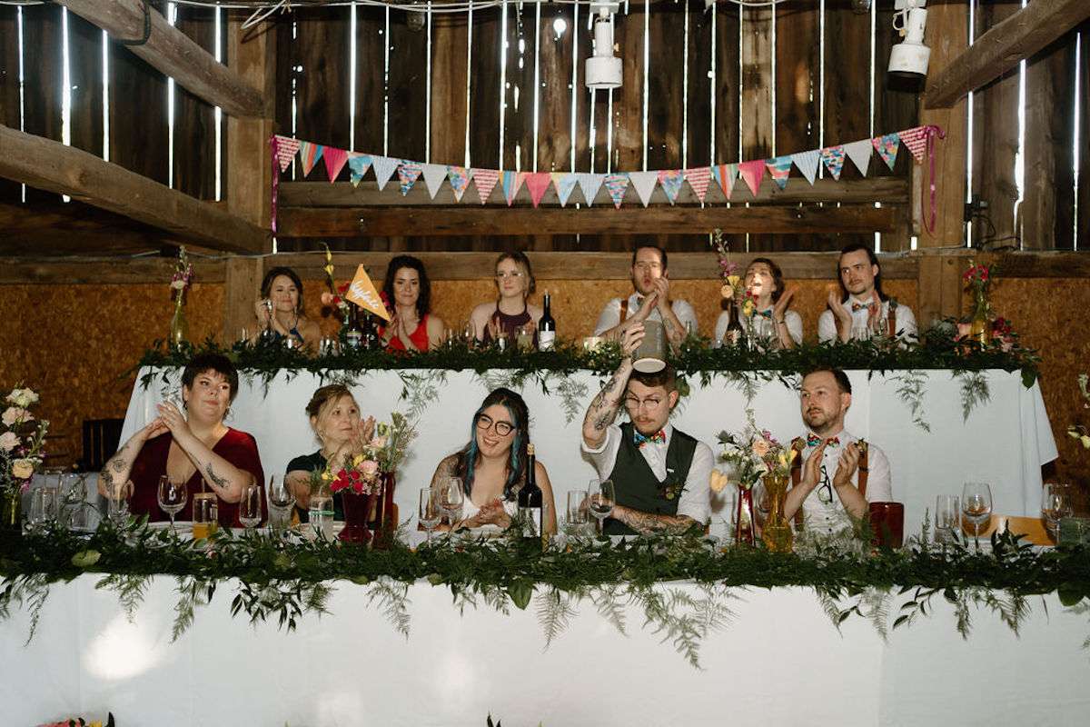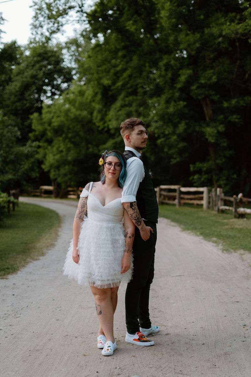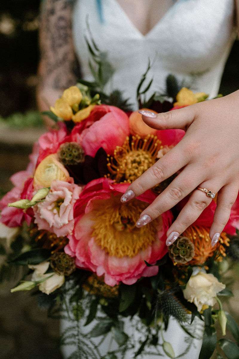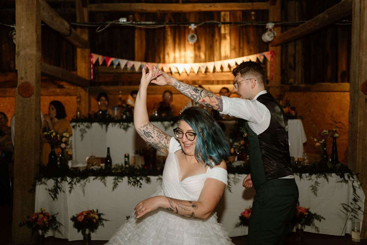 The dance party was Victoria’s favourite part of the day, with a first dance to Tokyo Summer by the Mounties, and Rowan attempting the Dirty Dancing lift. Offering advice on planning the right kind of day, they told us, “Trust your gut and do what feels right for you. Just because tradition or capitalism says you need to do something one way, doesn’t mean you do.”