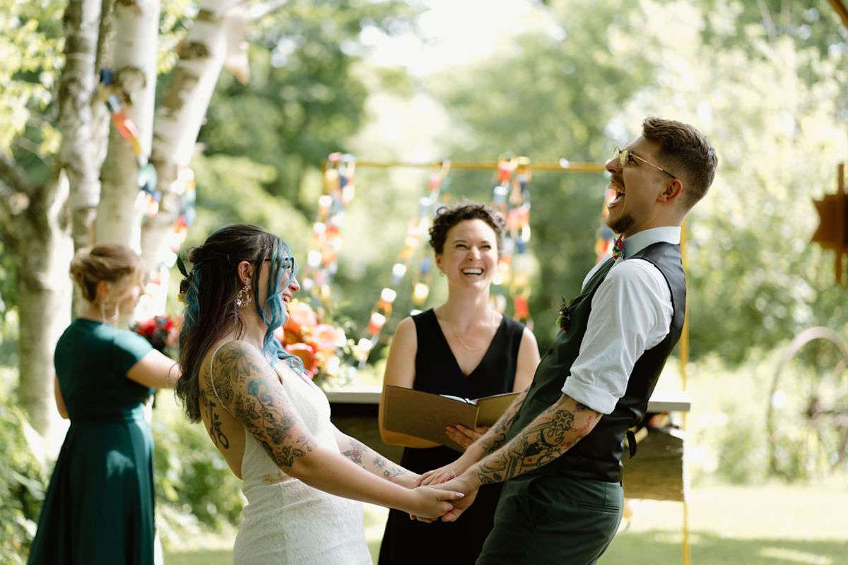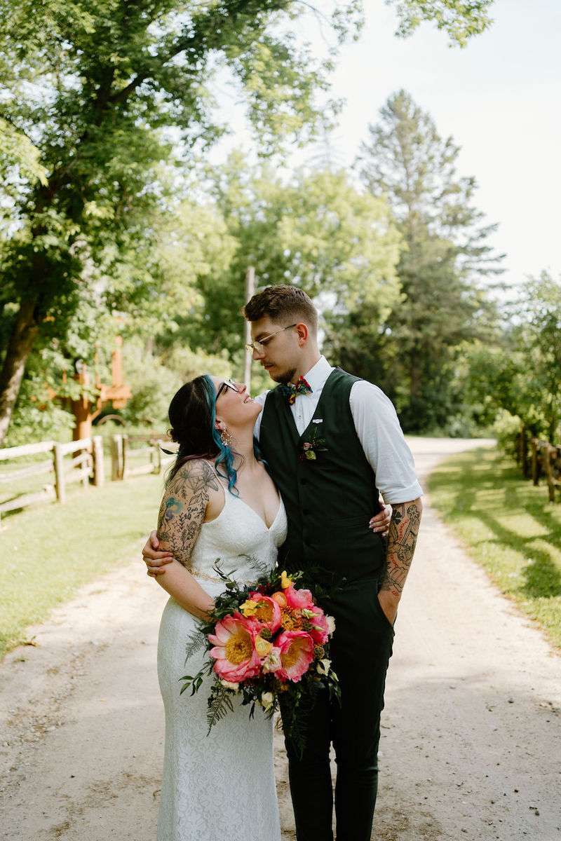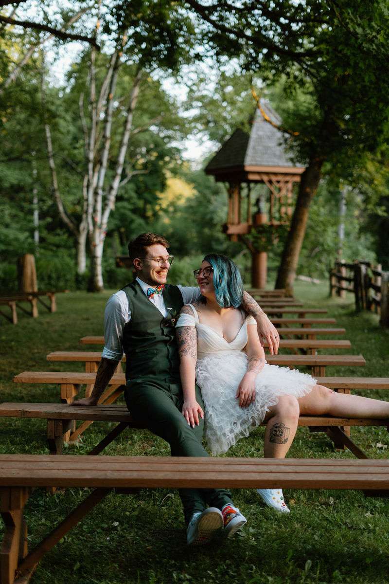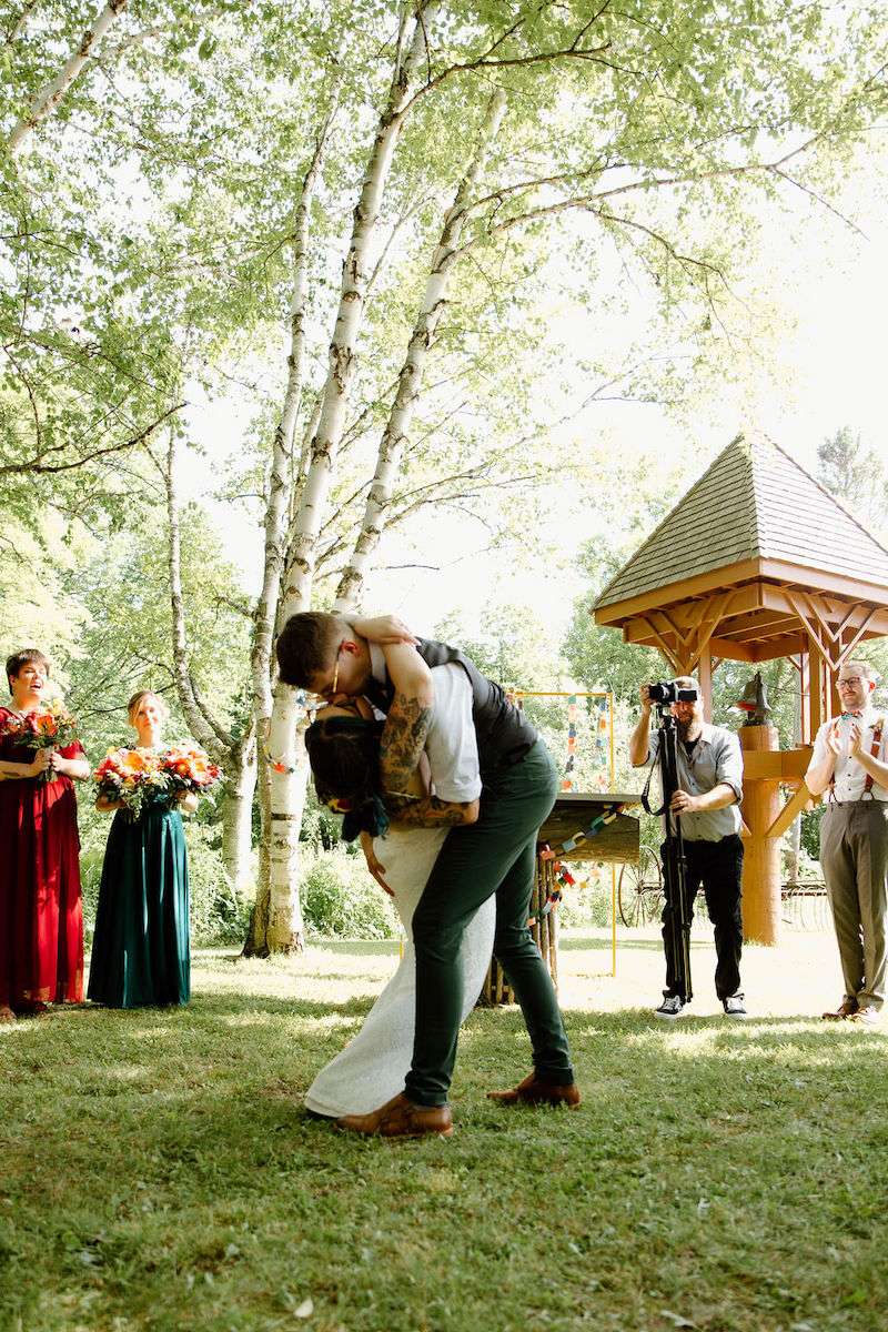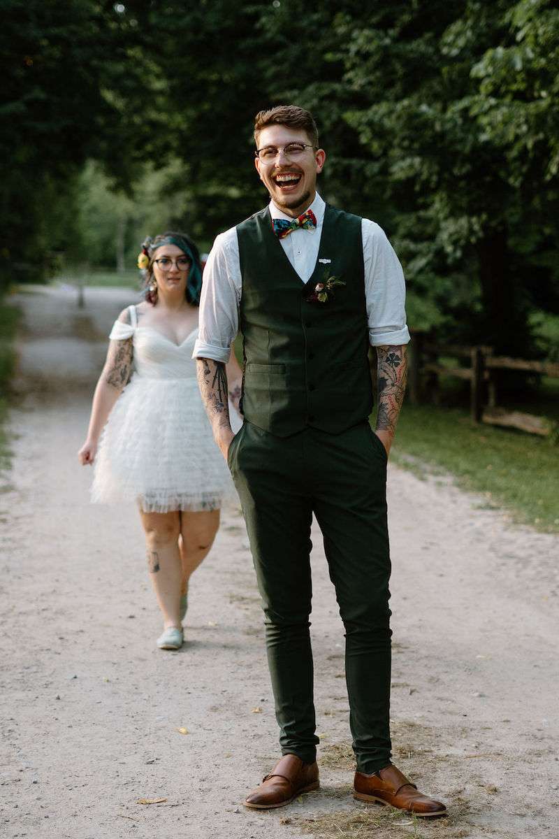 The dance party was Victoria’s favourite part of the day, with a first dance to Tokyo Summer by the Mounties, and Rowan attempting the Dirty Dancing lift. Offering advice on planning the right kind of day, they told us, “Trust your gut and do what feels right for you. Just because tradition or capitalism says you need to do something one way, doesn’t mean you do.”