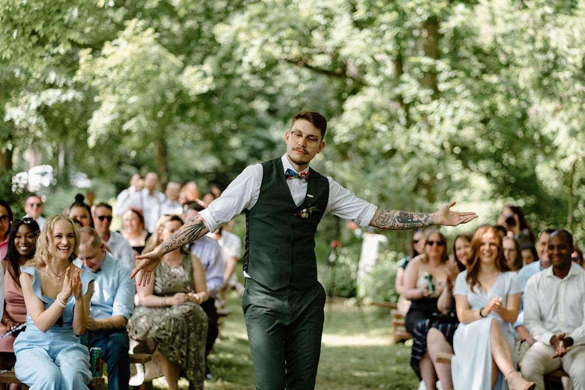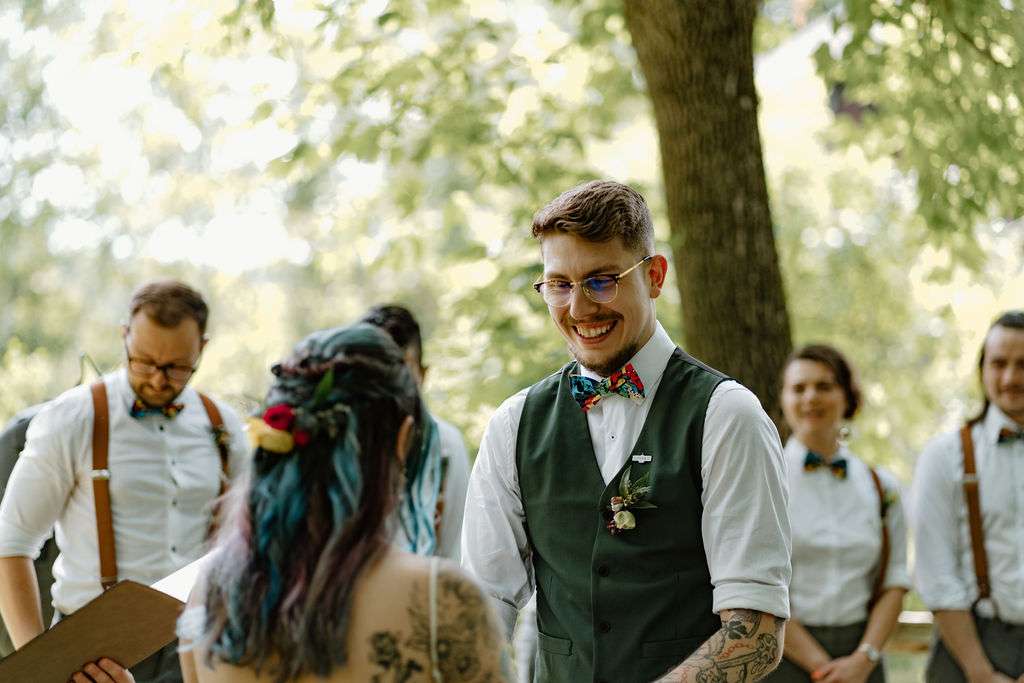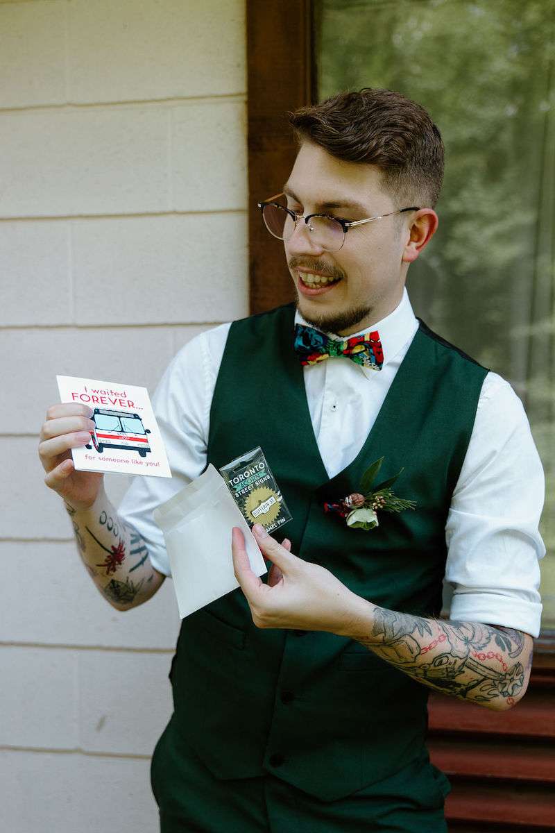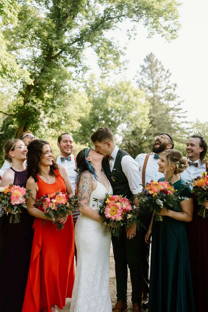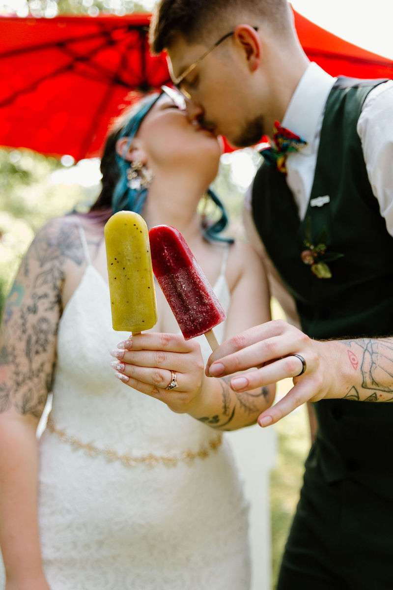 The dance party was Victoria’s favourite part of the day, with a first dance to Tokyo Summer by the Mounties, and Rowan attempting the Dirty Dancing lift. Offering advice on planning the right kind of day, they told us, “Trust your gut and do what feels right for you. Just because tradition or capitalism says you need to do something one way, doesn’t mean you do.”
