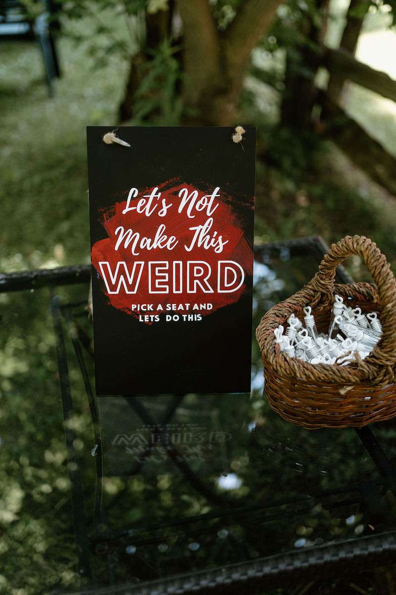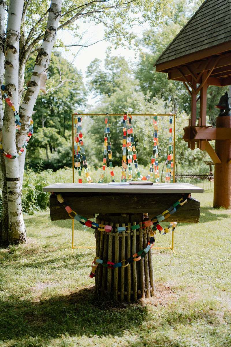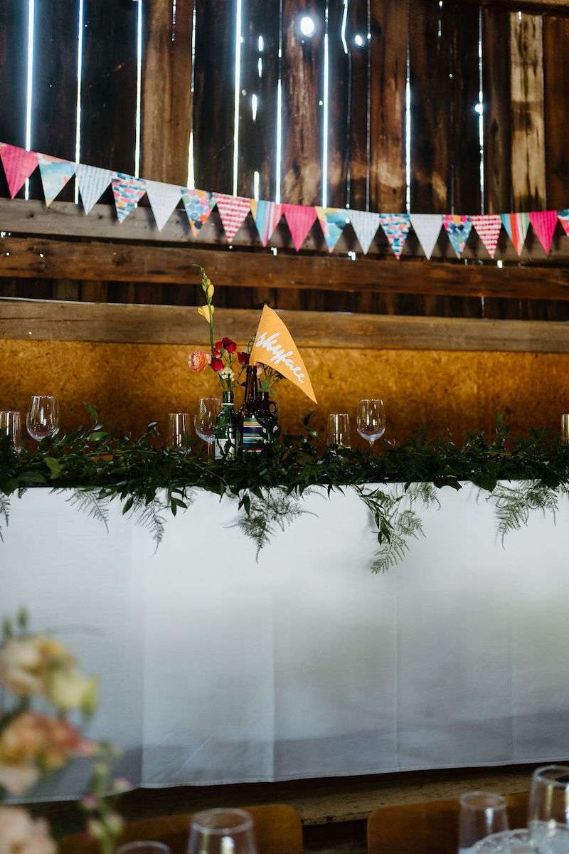 DIY was a common theme that ran throughout the day, with all signs made by Victoria, as well as the rainbow paperchains, colourful bunting, temporary tattoo station and place names. Victoria’s mum made the hot sauce favours and they had a camp bracelet making station that then doubled as drinks markers.