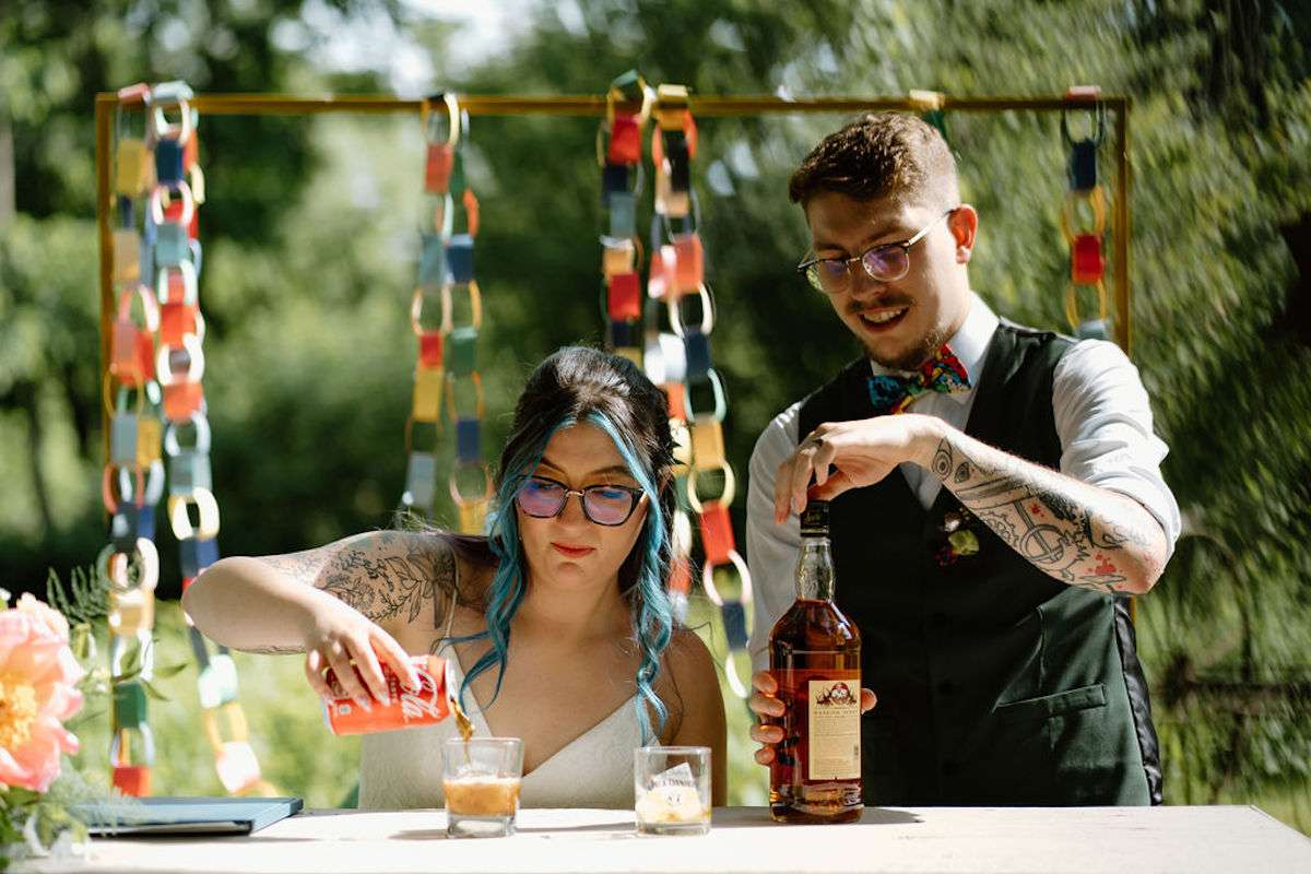 This couple wanted to throw a proper party, and so their biggest expense was food and drink. They did spend more on alcohol than they needed in the end but they didn’t want to run out! It was also really important to them that the food was delicious, and they chose to serve wings and cauliflower bites with sauces, a poutine bar, a salad bar and nachos and bubble tea for a late night snack.