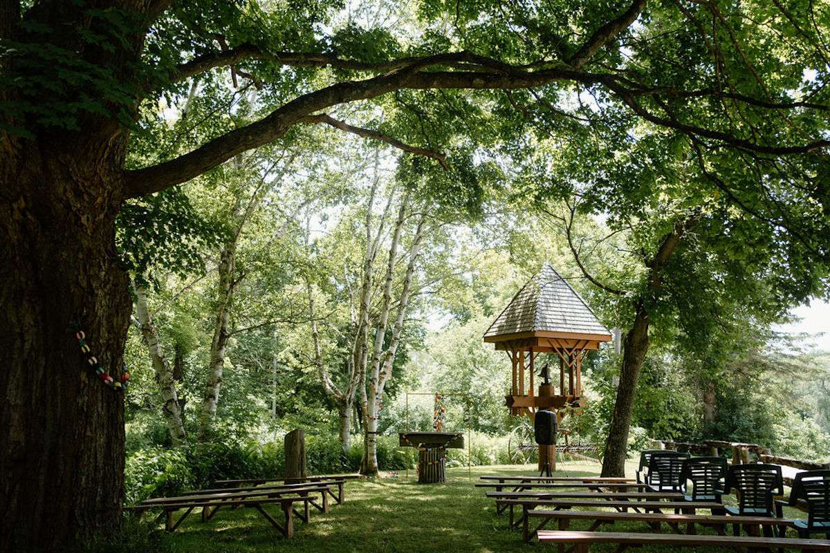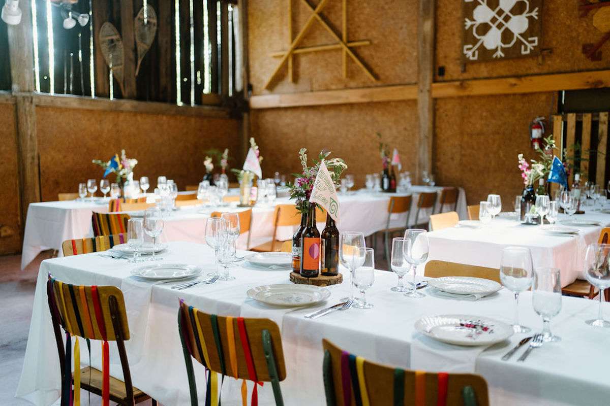 They managed to save money by having a DIY venue, using their tables and chairs, but dressing the place themselves and setting places, decorating and choosing their own layout. They also brought in their own caterer and because it was a camp, they were all able to stay on-site, saving hotel and transport costs.
