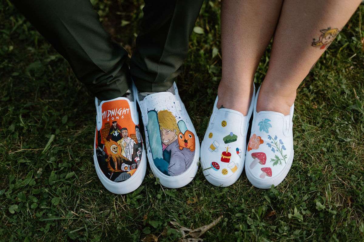 Instead of a first look, Victoria and Rowan had a second look after the ceremony, at sunset. Victoria surprised Rowan with a second dress and a dramatic hair cut, and they exchanged custom painted shoes that they had created for each other.
