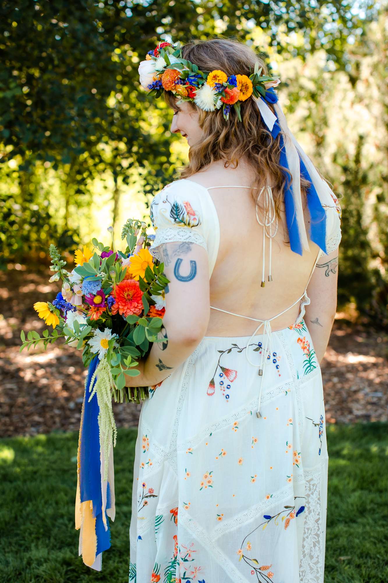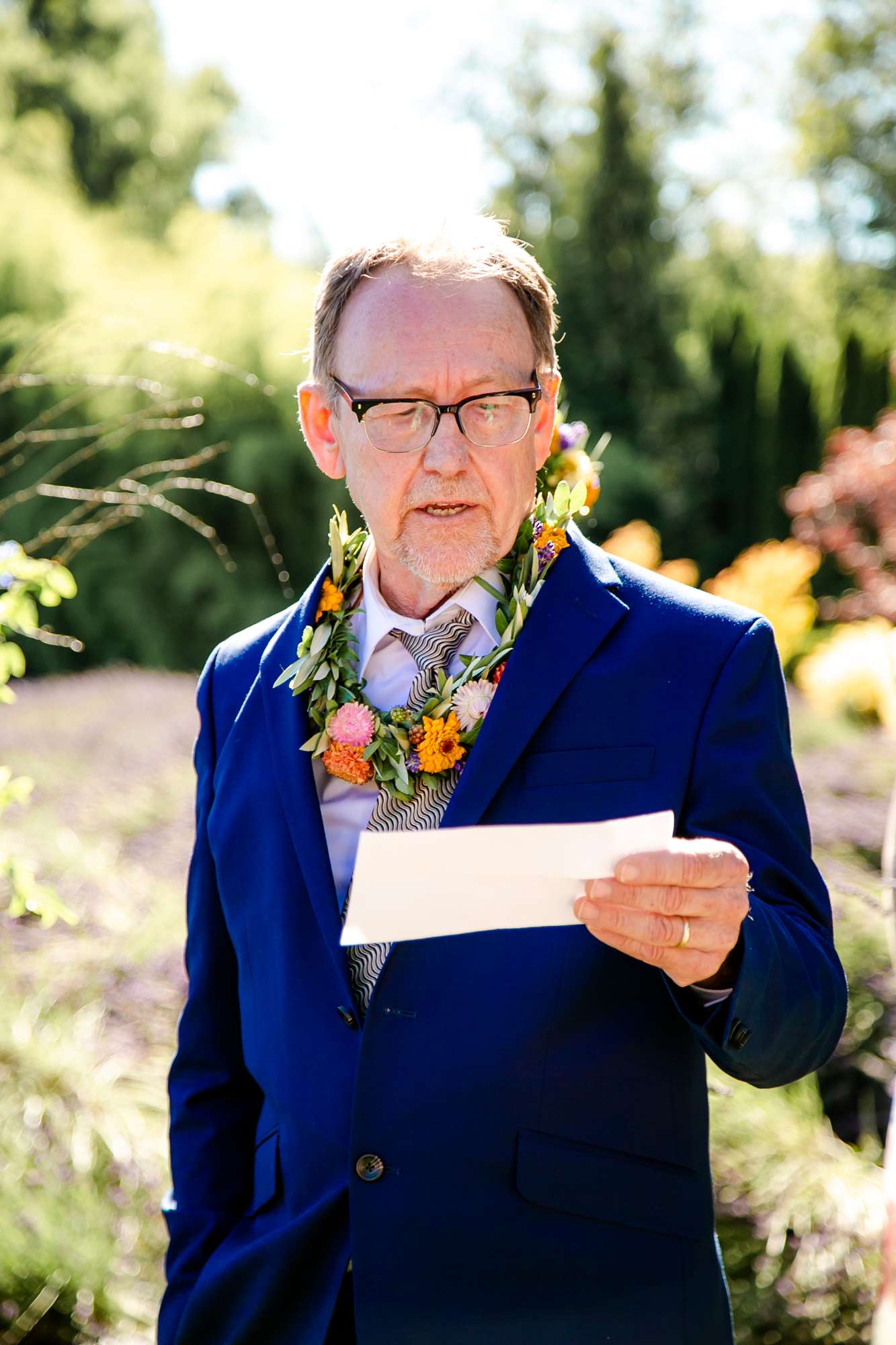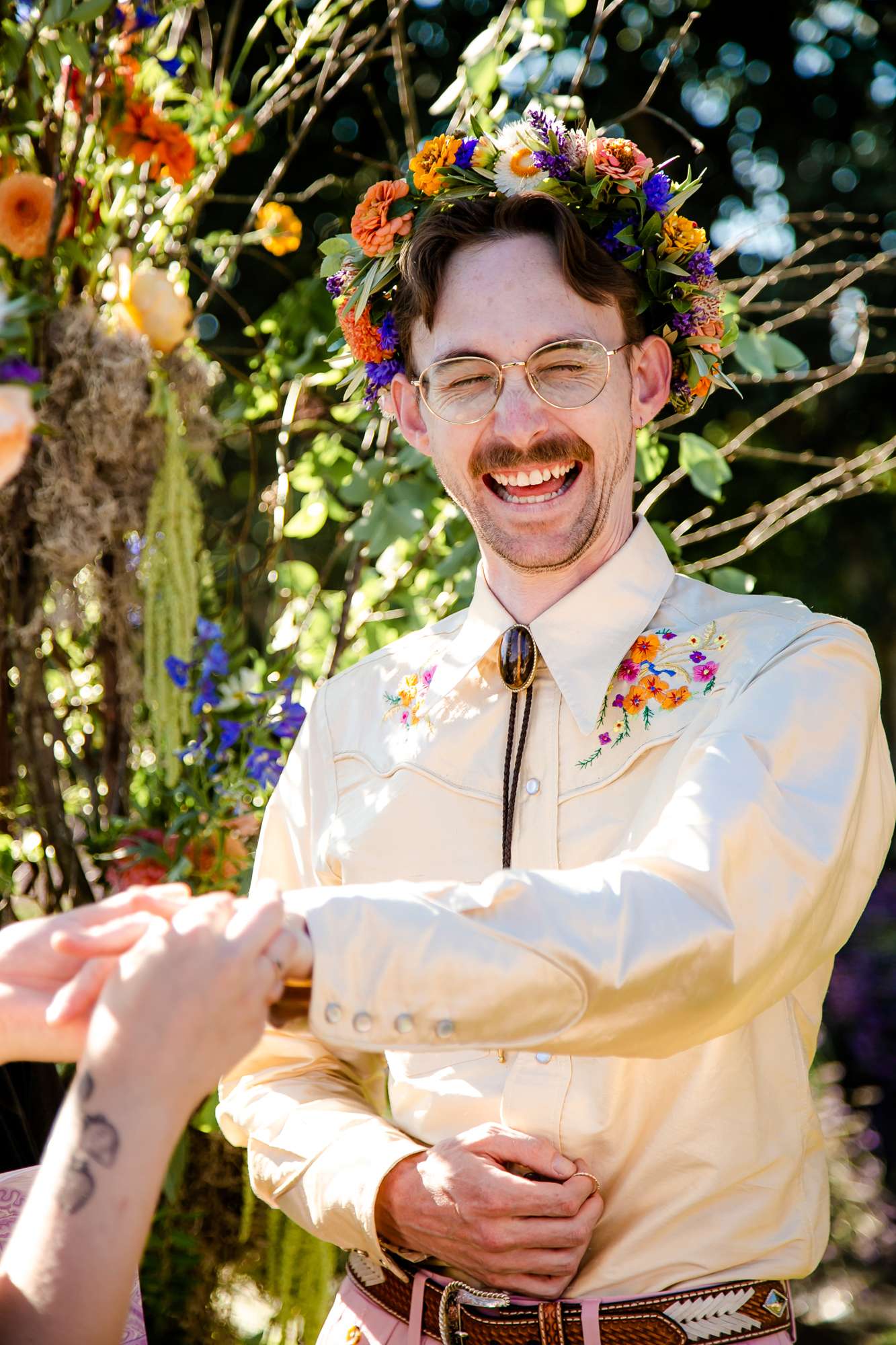 The ceremony was a collaborative event, with the officiant asking their friends and family to give them love and blessings. The bride and her bridal party walked down the aisle to Purple Bottle by Animal Collective. For Molly, walking away after the ceremony and realising they were finally married was a favourite part of the day.