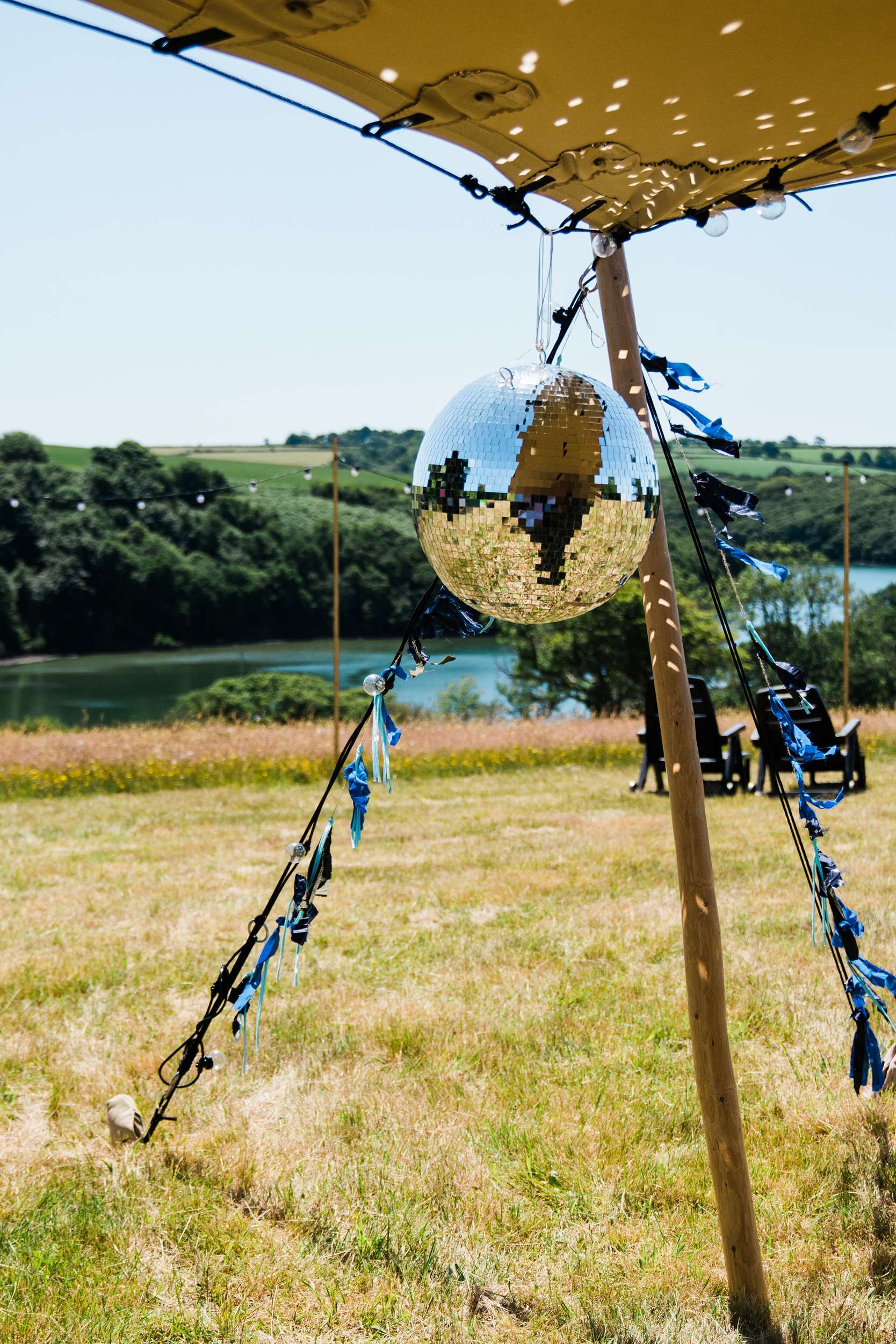 The reception was just as special. After the ceremony, people swam in the river and then they had Pimms up the hill by the tent. Food was cooked over a huge Asado, and speeches were made on the grass in the last bits of sunshine overlooking the river. They then moved over to one of the old pine trees which they had filled with mirror balls, where Tom’s friend AKA The State of Georgia sang as the sun set. As night fell, they set off fireworks which was also a lot of fun.