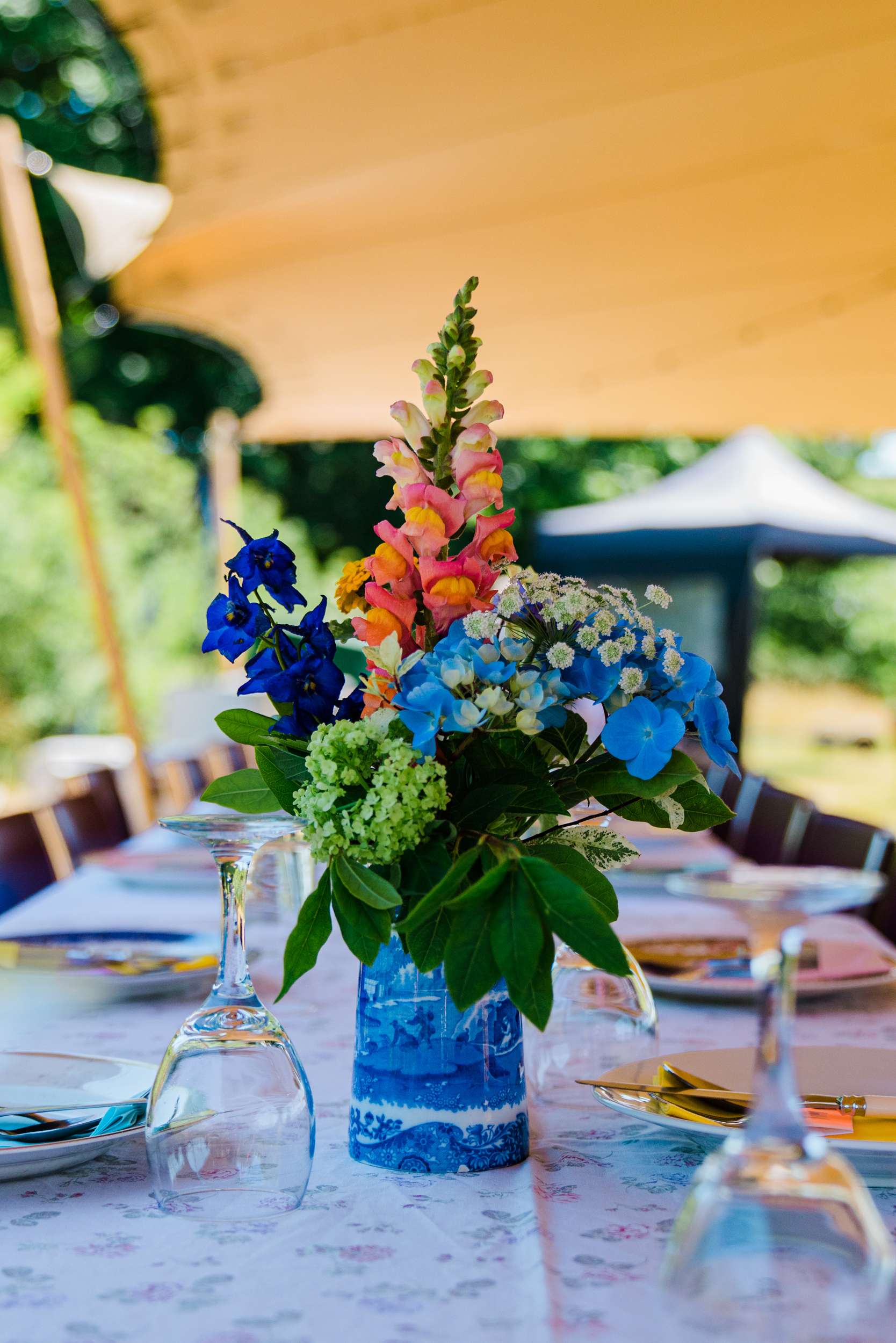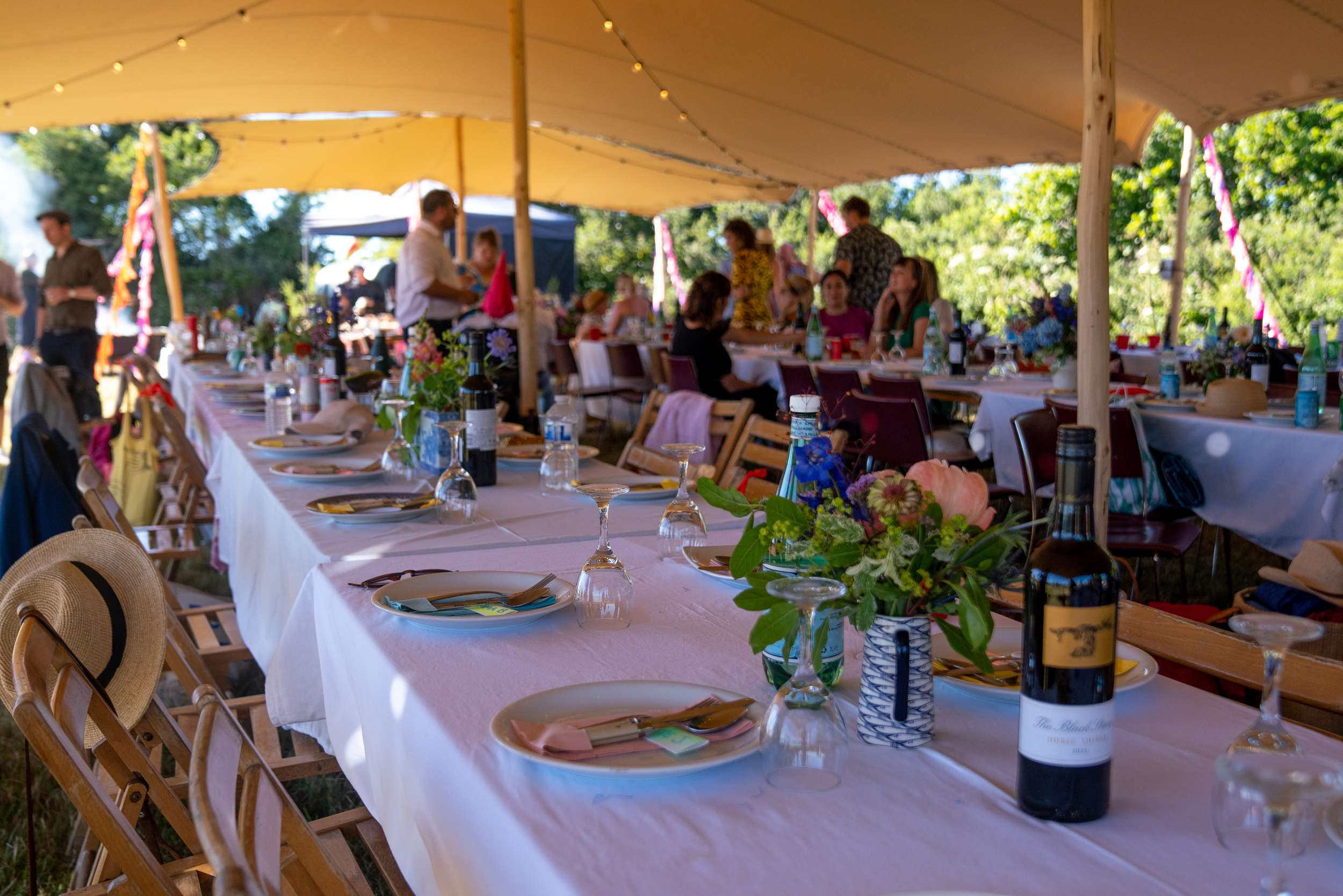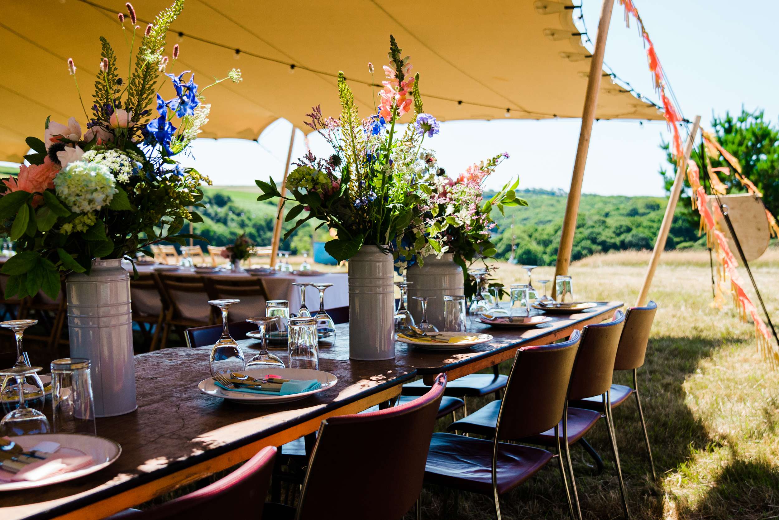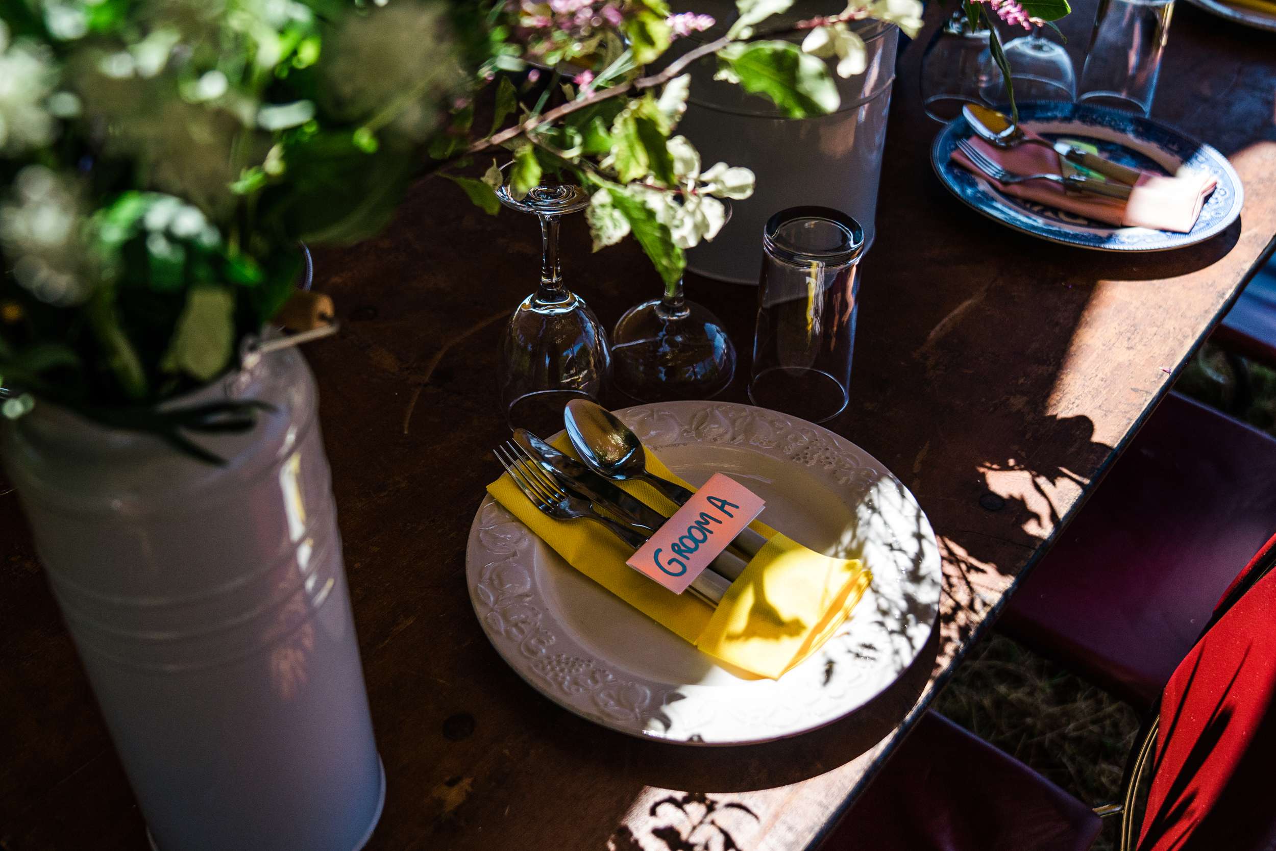 “We wanted to create a festival-style wedding ceremony and we tried to do it as cheaply as we could, borrowing chairs from the village hall and the cricket field, and cutlery and crockery from our parents’ various collections,” they told us.
