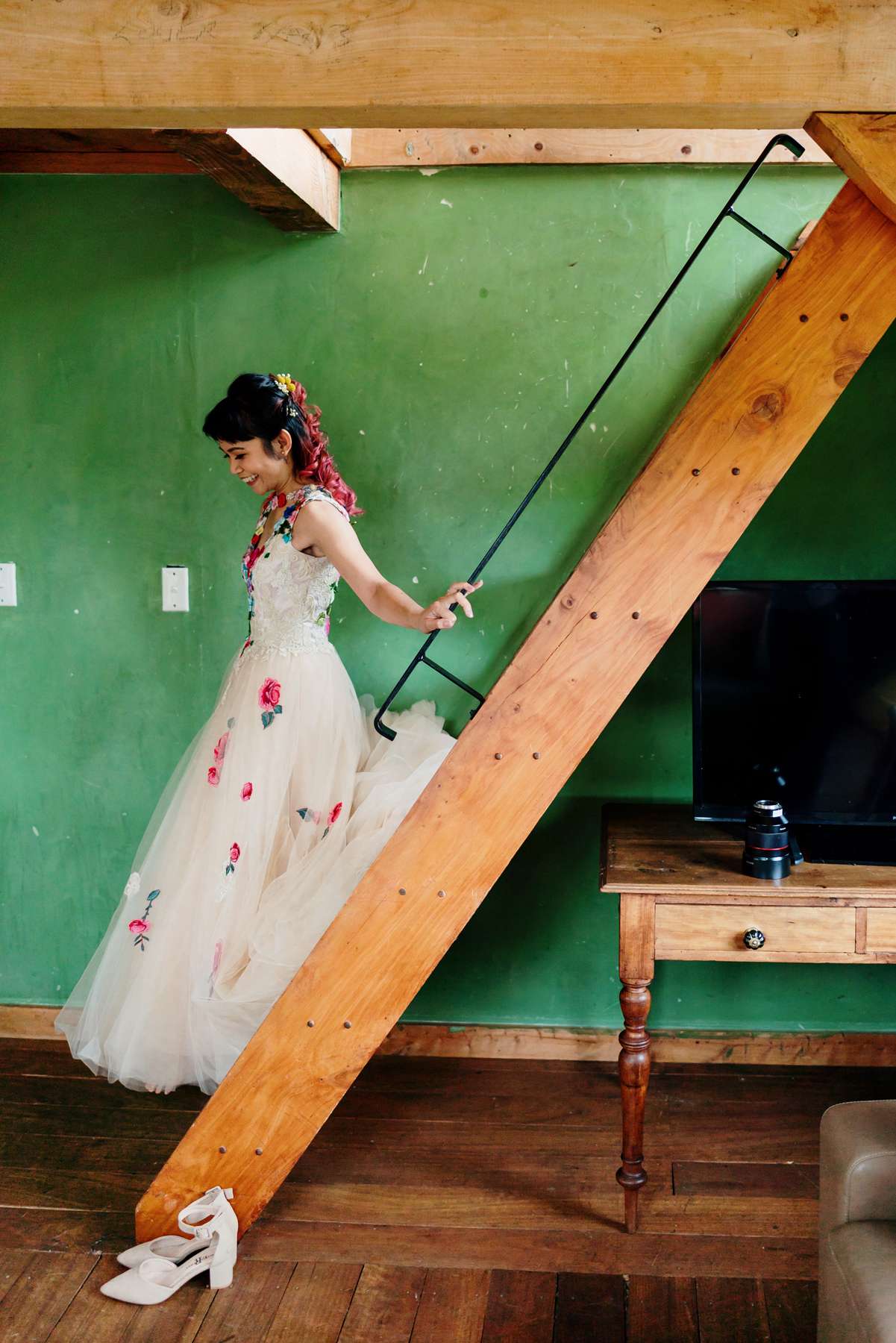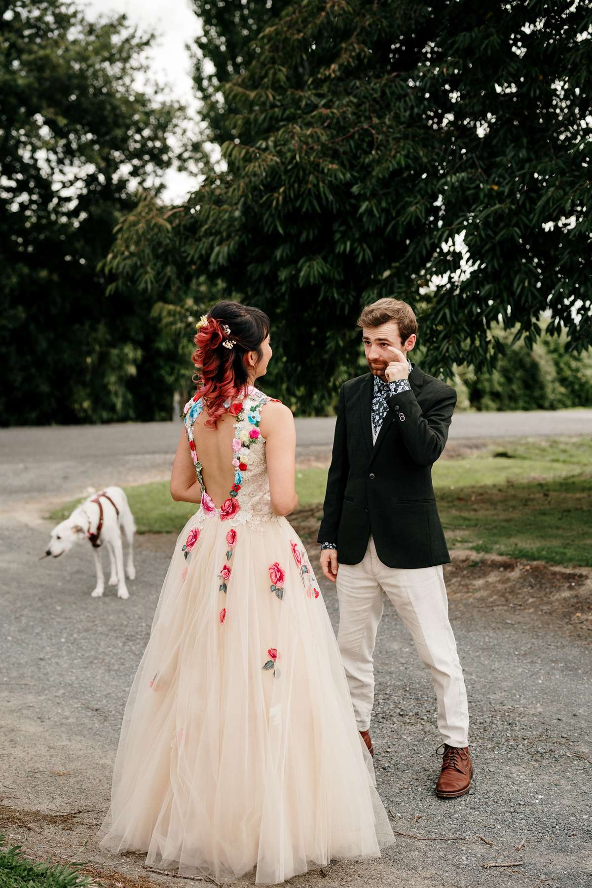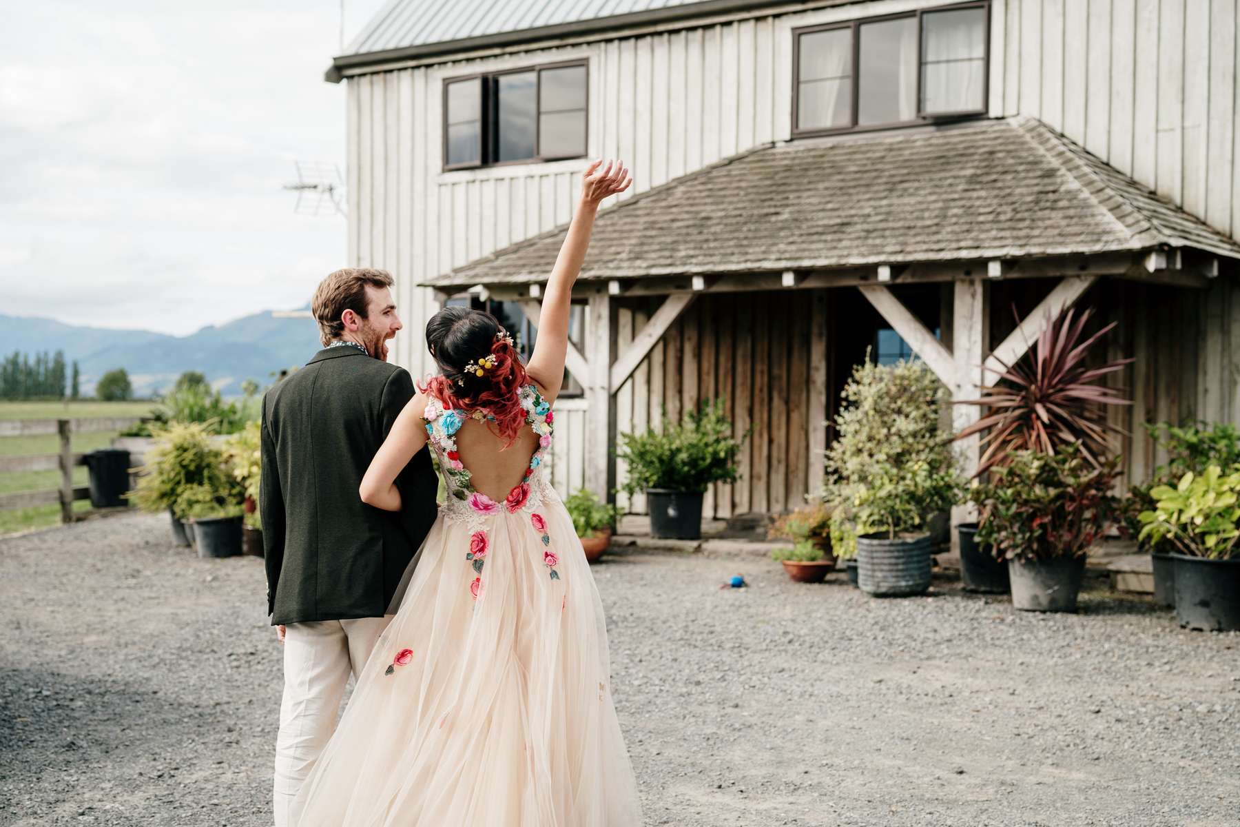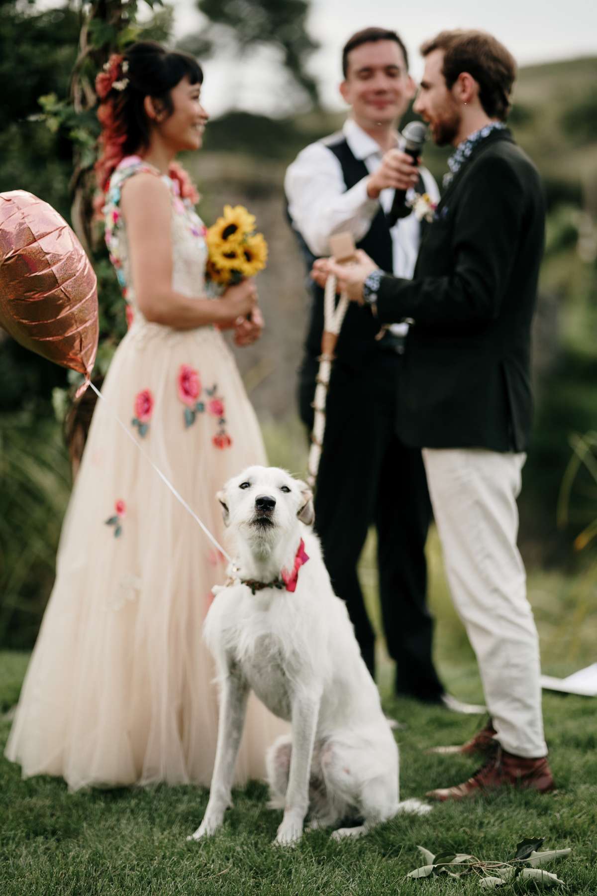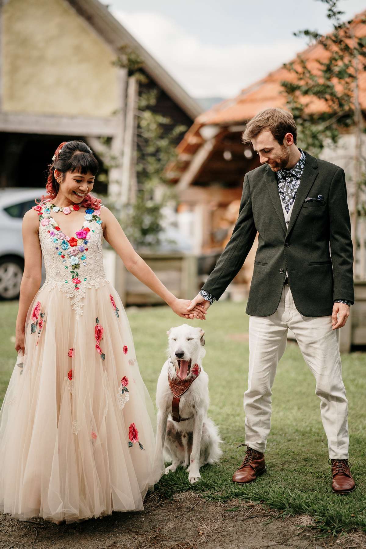 Describing the wedding as “rustic, quirky and colourful”, this was the couple’s second wedding, having officially said their vows at Papamoa Beach just a couple of months after getting engaged. To make the day even more special, the couple’s furry companion, Theo, served as ring bearer.