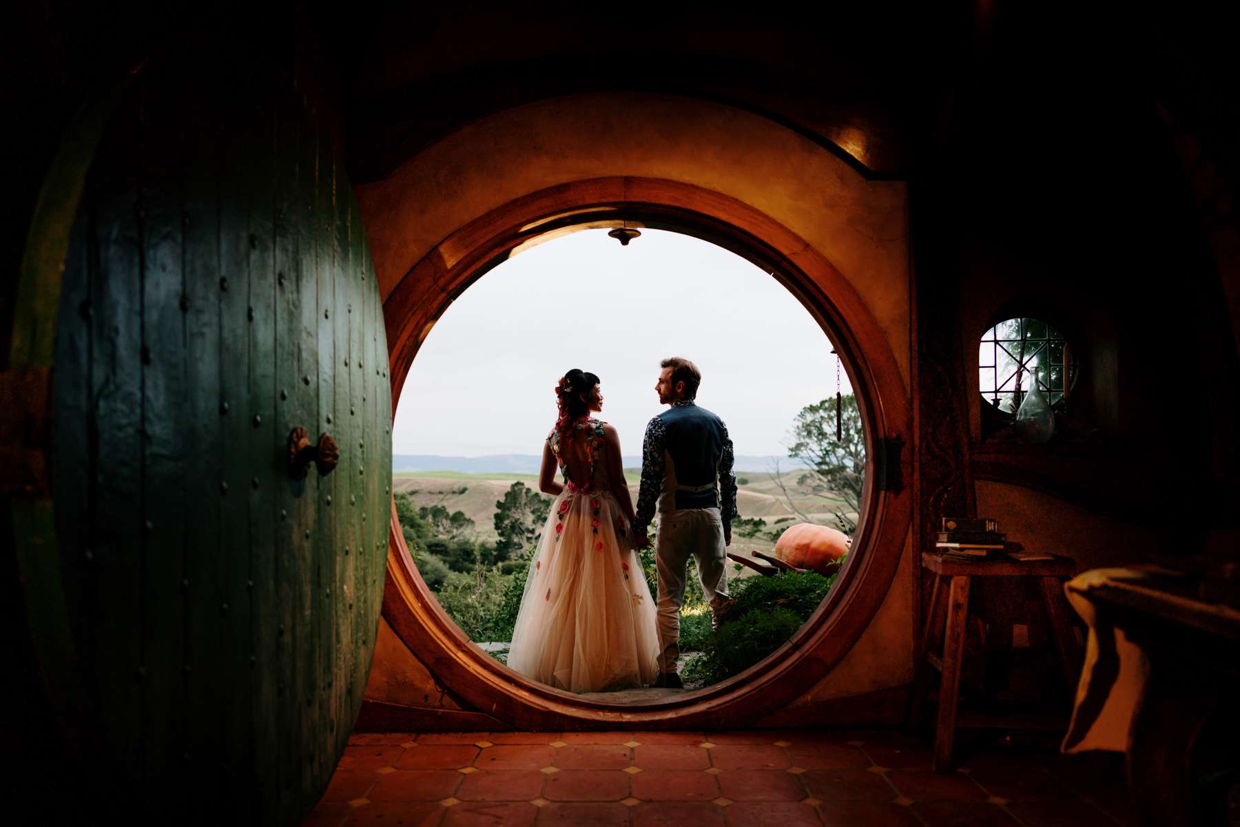 Jack and Eleanor had the wedding of their dreams in the heart of the Mighty Waikato region, at the iconic Green Dragon Inn in Hobbiton, New Zealand. The inspiration for the couple’s wedding was a combination of the Lord of the Rings (naturally) and Rock n Roll Bride, who introduced the bride to Chotronette, where she found her dream dress.